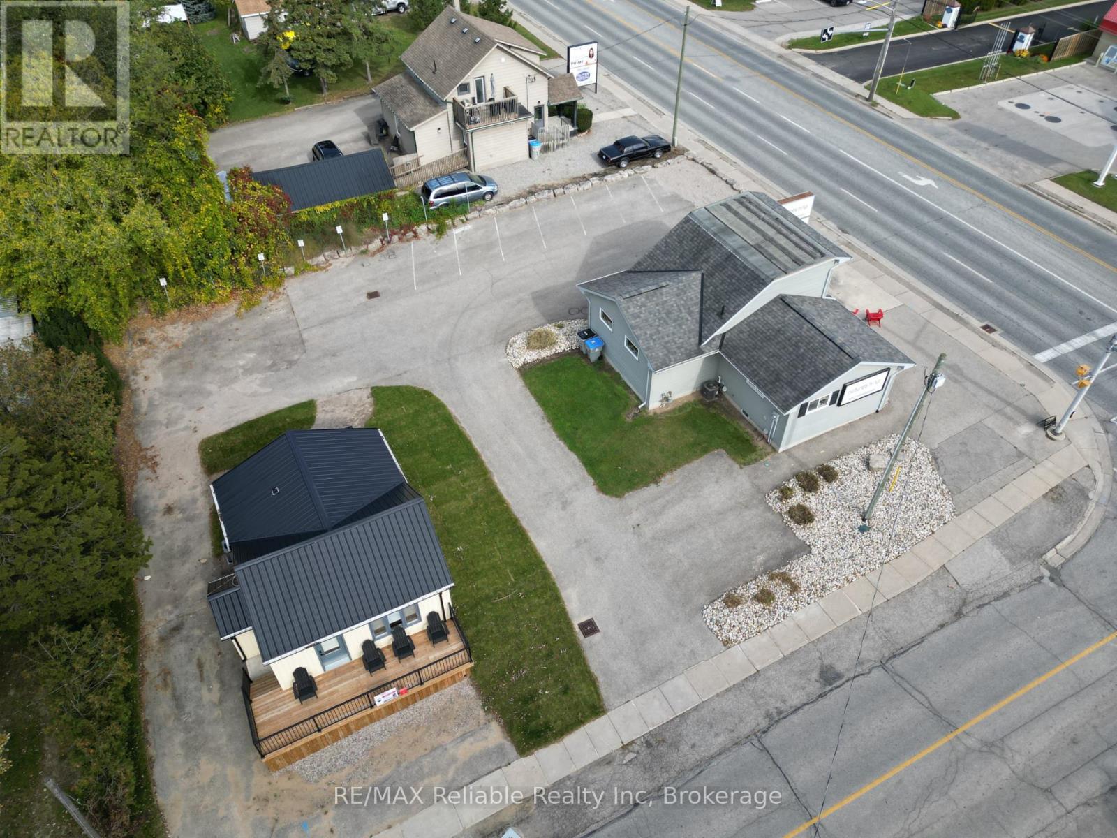 Two buildings offered in a high traffic location on Highway 21 with outstanding visibility and curb appeal. Exceptional exposure makes this an ideal opportunity for retail, office, or a service based business. The main commercial building features two separate spaces that can easily be converted or configured to suit a variety of uses. Equipped with central air, forced air gas heating and some updated plumbing, this property is ready for your vision. Also included is a renovated one bedroom cottage - perfect for rental income, owner occupancy or seasonal cottage use. Recent upgrades include vinyl siding (2023), newer windows and doors, updated decks and appliances. These buildings are situated on 94 ft of frontage x 136 ft deep lot in a sought after summer resort area, just steps from the shores of Lake Huron. A rare opportunity to invest in a high-visibility location with income potential. Some upgrades have been done to the interior to accommodate the Pilates studio that are not pictured in the photos. (id:51300)