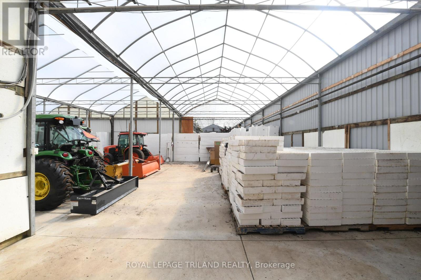 Immaculate Greenhouse Facility: Approx. 53,000 sq. ft. of growing space, 4,500 sq. ft. ofshipping/shop area, full irrigation system with auto sun shades, 2X 80' flooding tables,back-up generator, office, boardroom, indoor/outdoor storage, 3.5 acre fertile field (7.025acres total) and a 1400 sq. ft. 3 bedroom raised ranch with pool. Current rental income fromhouse plus $3,500/mth from shop area. All appointments through listing agent please. Rentaloption available. (id:51300)