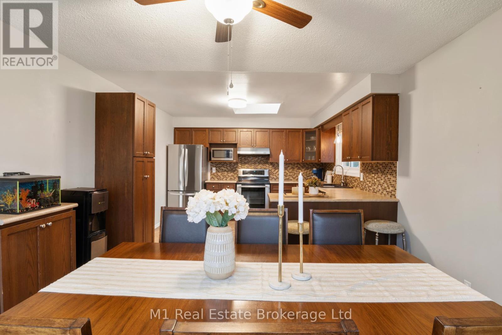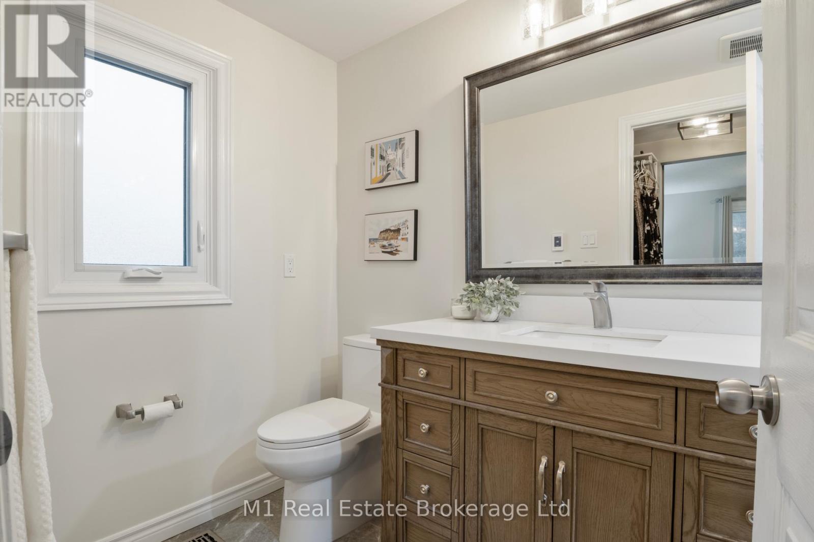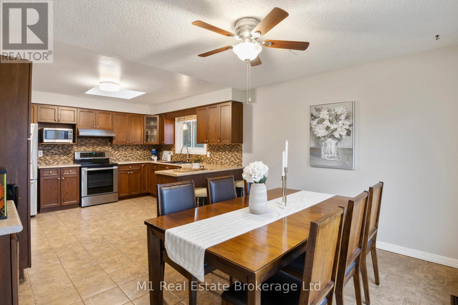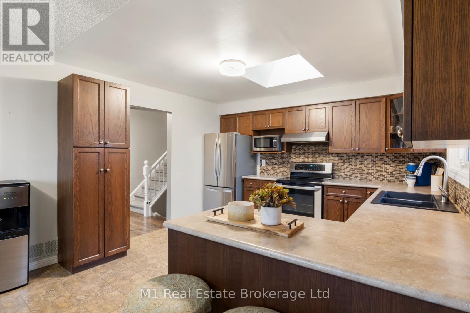 Spacious backsplit in a mature Fergus neighbourhood offering over 2,000 sq. ft. of finished living space and a great family-friendly layout across four levels. Three bedrooms upstairs plus a fourth on the lower level, along with three bathrooms including a 3-piece ensuite. Bright kitchen with 2020 appliances opens to the dining area with large windows and a skylight. The main living room walks out to the large backyard, while the lower-level family room features a gas fireplace and a separate entrance-ideal for extended family or in-law potential. Major updates include: furnace (2019), A/C (2020), carpet (2020), water softener (2020), roof (2022), ensuite (2021), main bath (2024), and water heater (2024 - rental). Convenient location close to downtown Fergus, the Grand River, trails, Sportsplex, schools, and an easy commute toward Guelph. (id:51300)