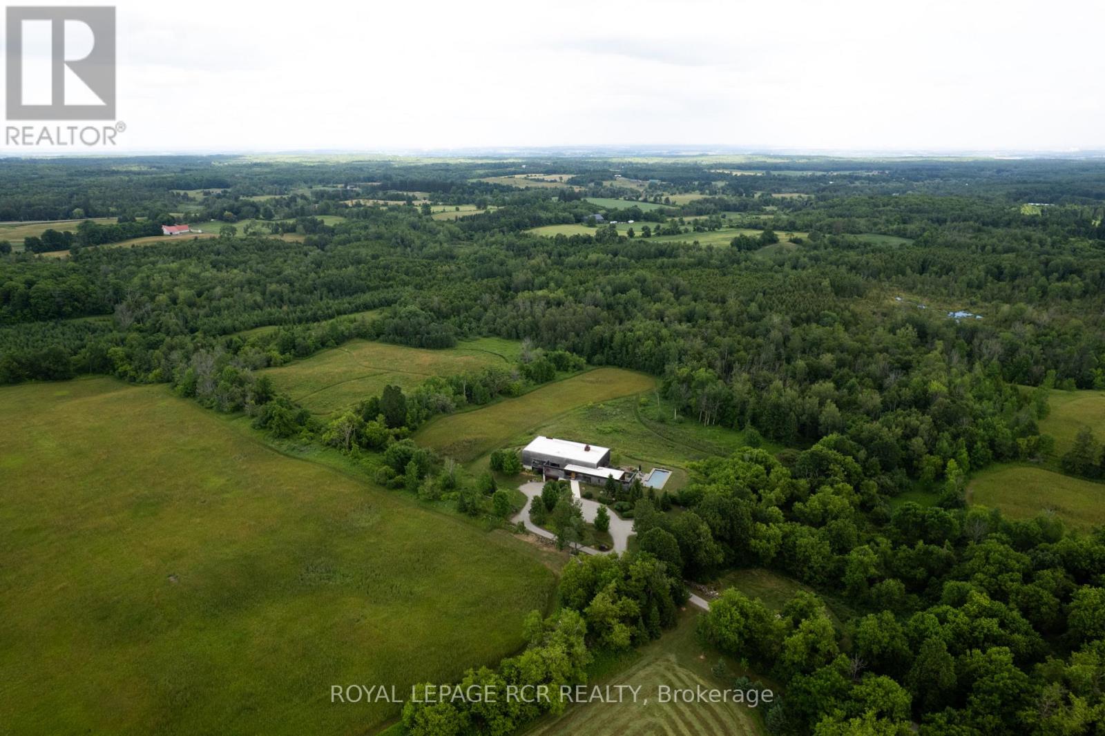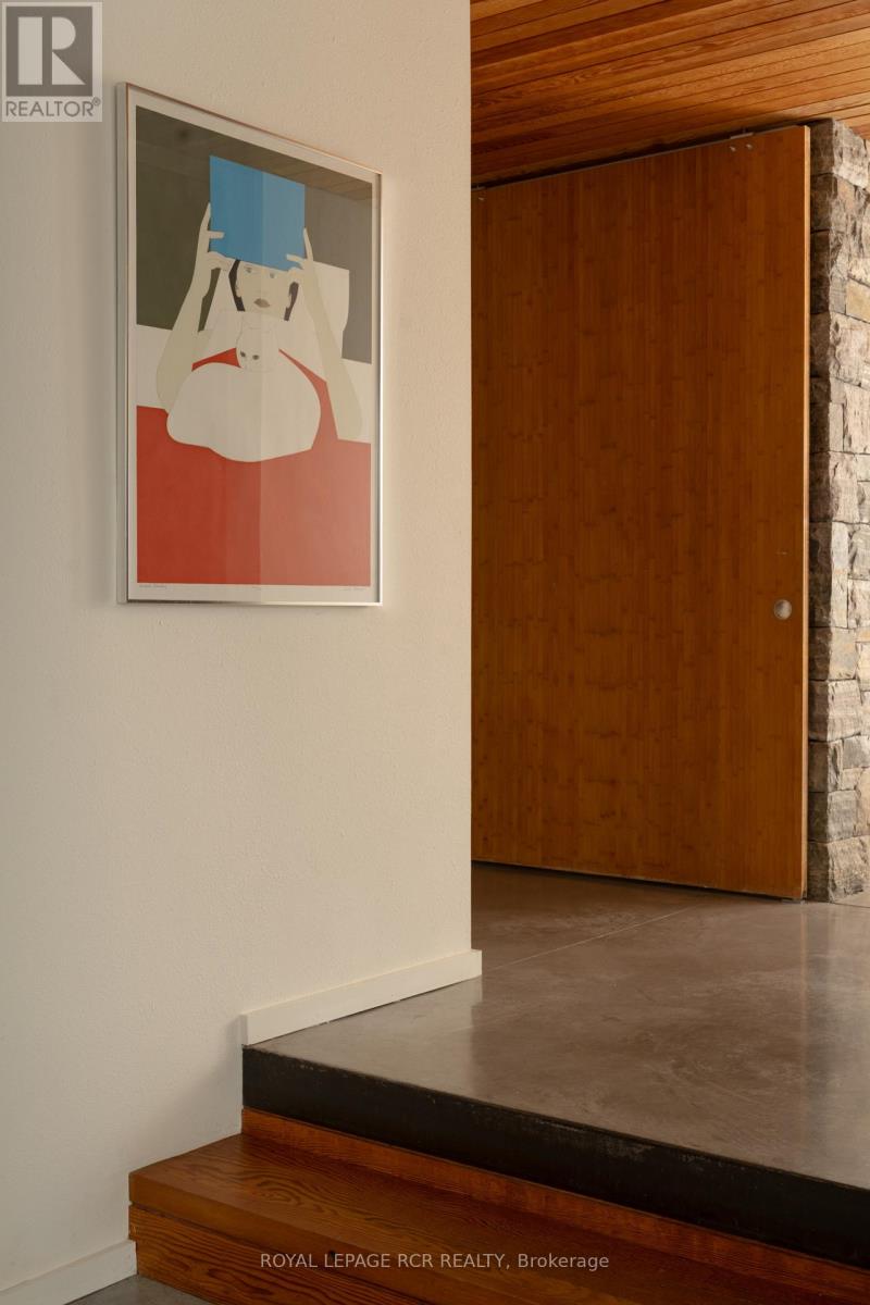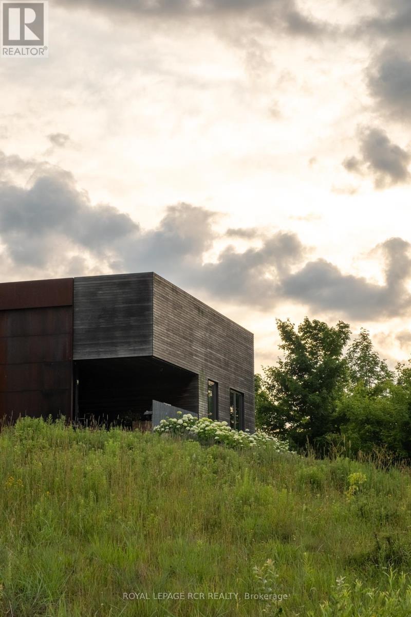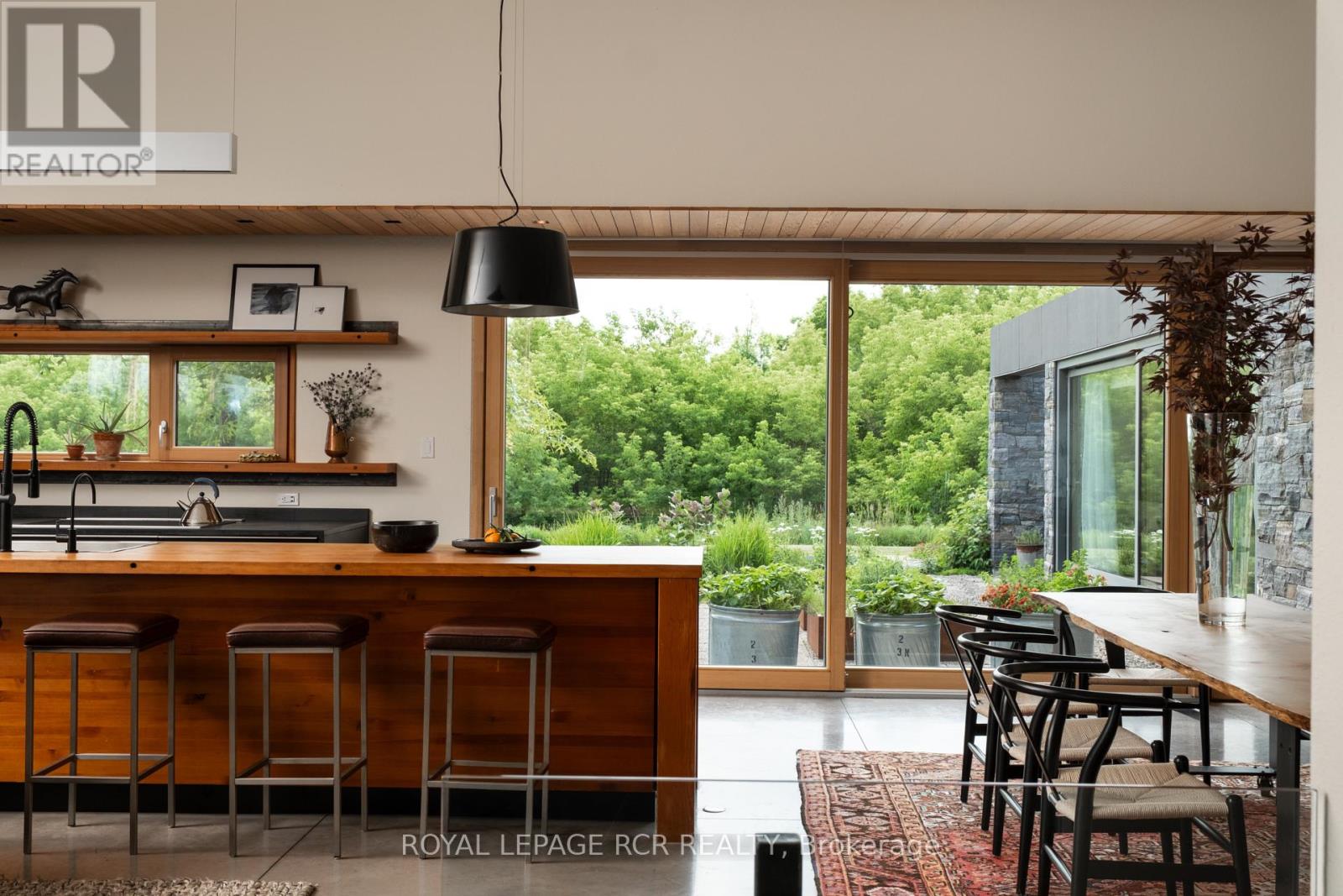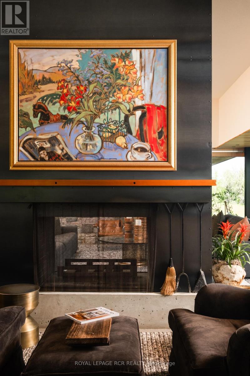 A soulful modern residence designed to sync with the rhythm of the sun, offering incredible vistas from all spaces & making an effortless connection between indoors & out. Nestled on approx. 98 acres in the bucolic countryside of Erin, bordering Caledon, a long heritage stone wall lined driveway leads to a striking modern masterpiece. Surrounded by organic farmland & woodlands w/ acres of groomed trails, it's a rare find w/ a spectacular 40' pool overlooking the lush landscape & gardens. This remarkable large-footprint family home unfolds w/ a series of dynamic living spaces. 5 bedrooms, 6 bathrooms & over 8500 sq ft including the basement, it is defined by natural materials like heated concrete floors, douglas fir cladded ceilings & stone masonry. A fabulous balance of raw materiality w/ beauty & comfort. The kitchen & dining room are surrounded by glass, connecting the home to the properties incredible sunrises & sunsets. A handsome two-way focal fireplace is in the open-plan living area. The primary wing is a retreat w/ a spa-like ensuite, walk-in closet & a walkout to a garden terrace & the pool. On the other side of the home, several gorgeous sized bedrooms each w/ expansive windows & their own special view. The lower level is a world of its own w/ a separate entrance, home gym, additional family room, & workshop. A thoughtfully designed mudroom w/ custom lockers provides a discreet & organized hub for all gear, from equestrian to ski equipment. Two full baths, including a second primary suite w/ ensuite, create a sanctuary for family or guests. Advanced details include retractable Doepfner windows w/ low emissivity glazing, 6 zone radiant floor heating and central air, geothermal pumps for heating & cooling, PU-foamed wall cavities, commercial grade reflective membrane roof, & a propane powered generator w/ automatic switch. Magnificent in every way, a sanctuary of impeccable design, a place where artistry & comfort come together that truly inspires. (id:51300)