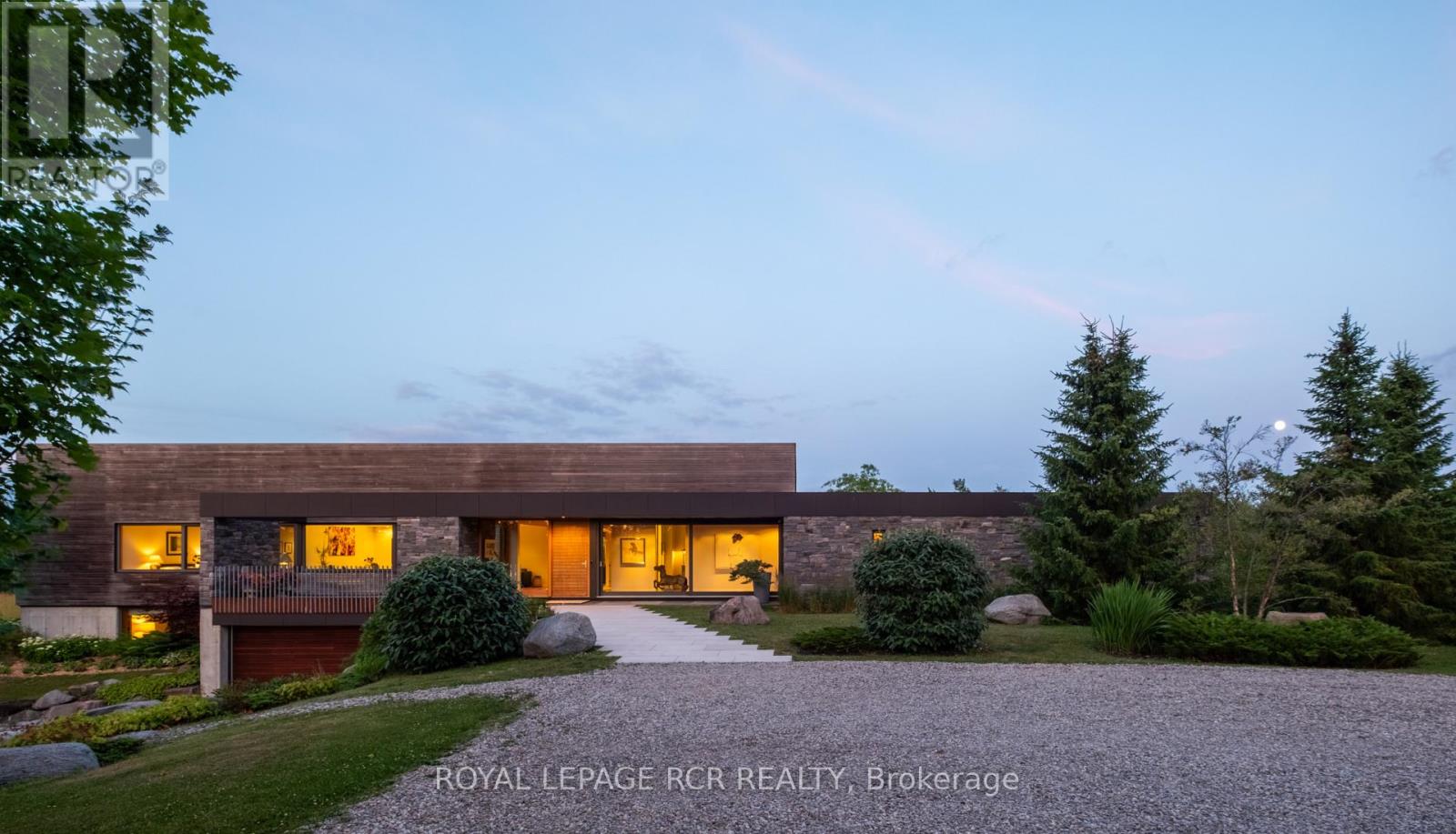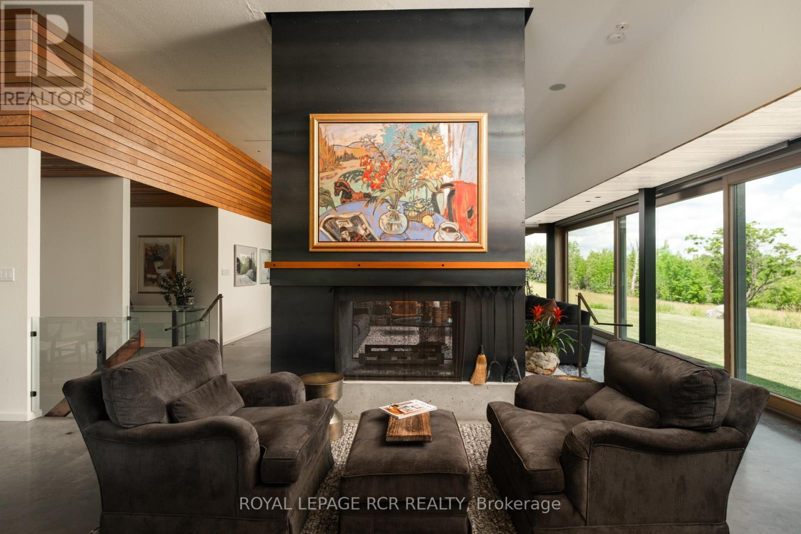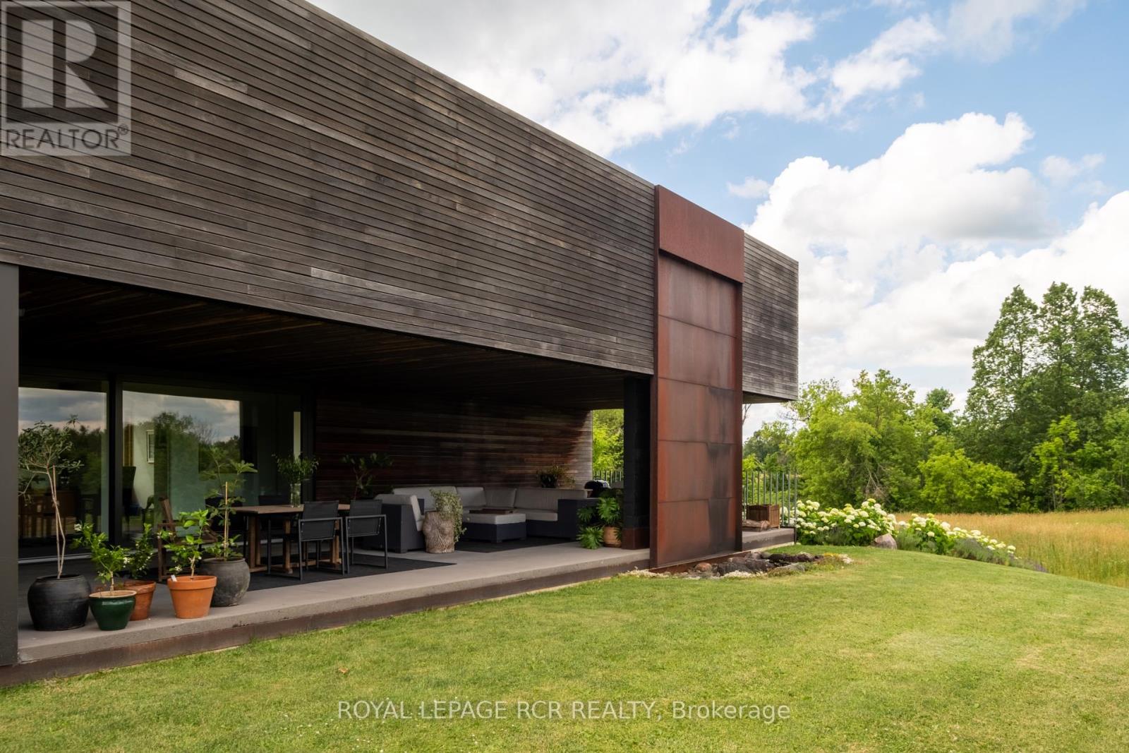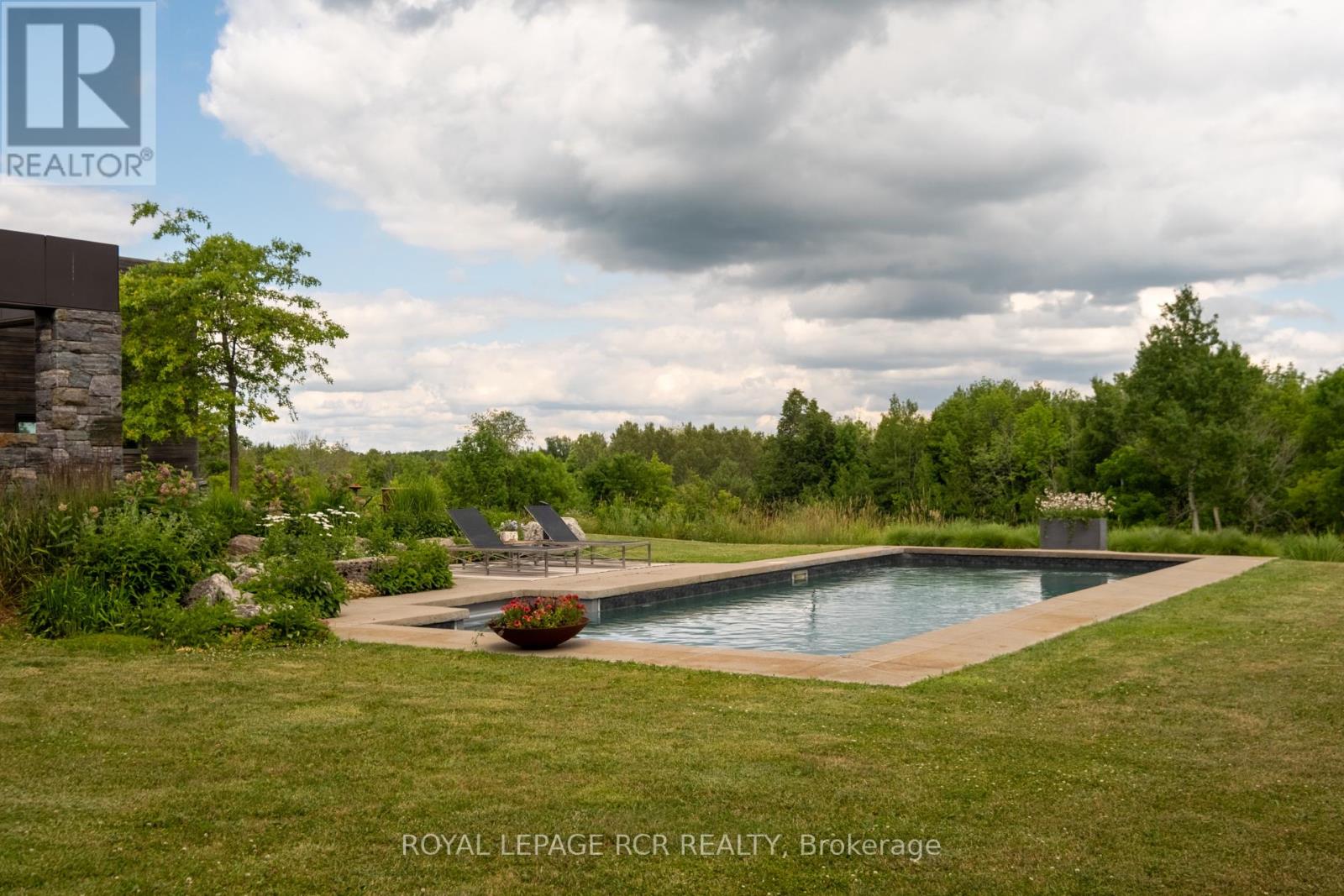 A soulful modern residence designed to sync with the rhythm of the sun, offering incredible vistas from all spaces & making an effortless connection between indoors & out. Nestled on approx. 98 acres in the bucolic countryside of Erin, bordering Caledon, a long heritage stone wall lined driveway leads to a striking modern masterpiece. Surrounded by organic farmland & woodlands w/ acres of groomed trails, it's a rare find w/ a spectacular 40' pool overlooking the lush landscape & gardens. This remarkable large-footprint family home unfolds w/ a series of dynamic living spaces. 5 bedrooms, 6 bathrooms & over 8500 sq ft including the basement, it is defined by natural materials like heated concrete floors, douglas fir cladded ceilings & stone masonry. A fabulous balance of raw materiality w/ beauty & comfort. The kitchen & dining room are surrounded by glass, connecting the home to the properties incredible sunrises & sunsets. A handsome two-way focal fireplace is in the open-plan living area. The primary wing is a retreat w/ a spa-like ensuite, walk-in closet & a walkout to a garden terrace & the pool. On the other side of the home, several gorgeous sized bedrooms each w/ expansive windows & their own special view. The lower level is a world of its own w/ a separate entrance, home gym, additional family room, & workshop. A thoughtfully designed mudroom w/ custom lockers provides a discreet & organized hub for all gear, from equestrian to ski equipment. Two full baths, including a second primary suite w/ ensuite, create a sanctuary for family or guests. Advanced details include retractable Doepfner windows w/ low emissivity glazing, 6 zone radiant floor heating and central air, geothermal pumps for heating & cooling, PU-foamed wall cavities, commercial grade reflective membrane roof, & a propane powered generator w/ automatic switch. Magnificent in every way, a sanctuary of impeccable design, a place where artistry & comfort come together that truly inspires. (id:51300)