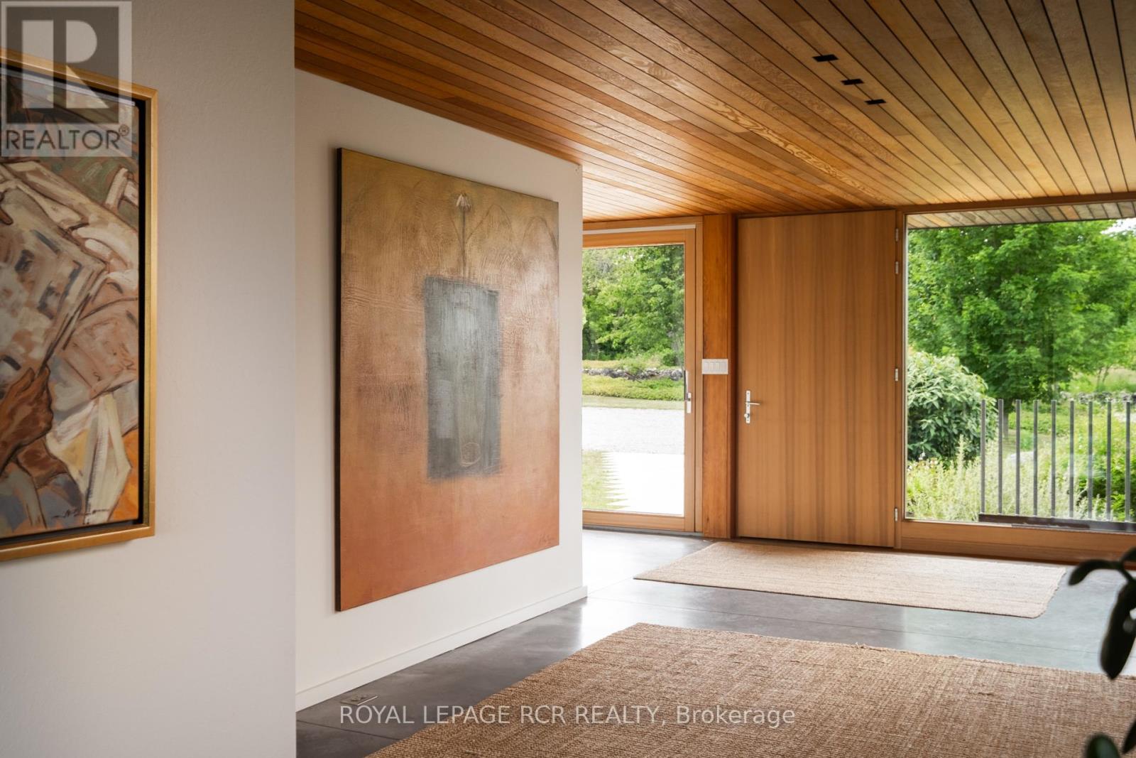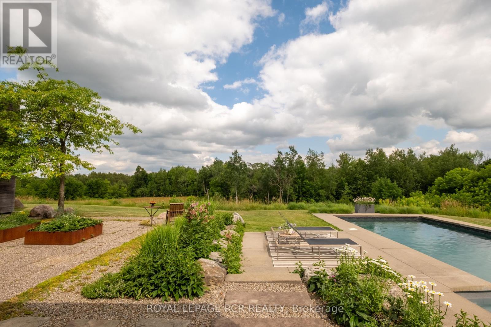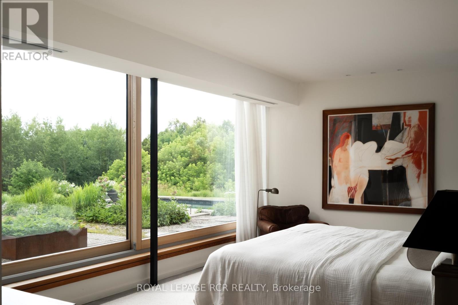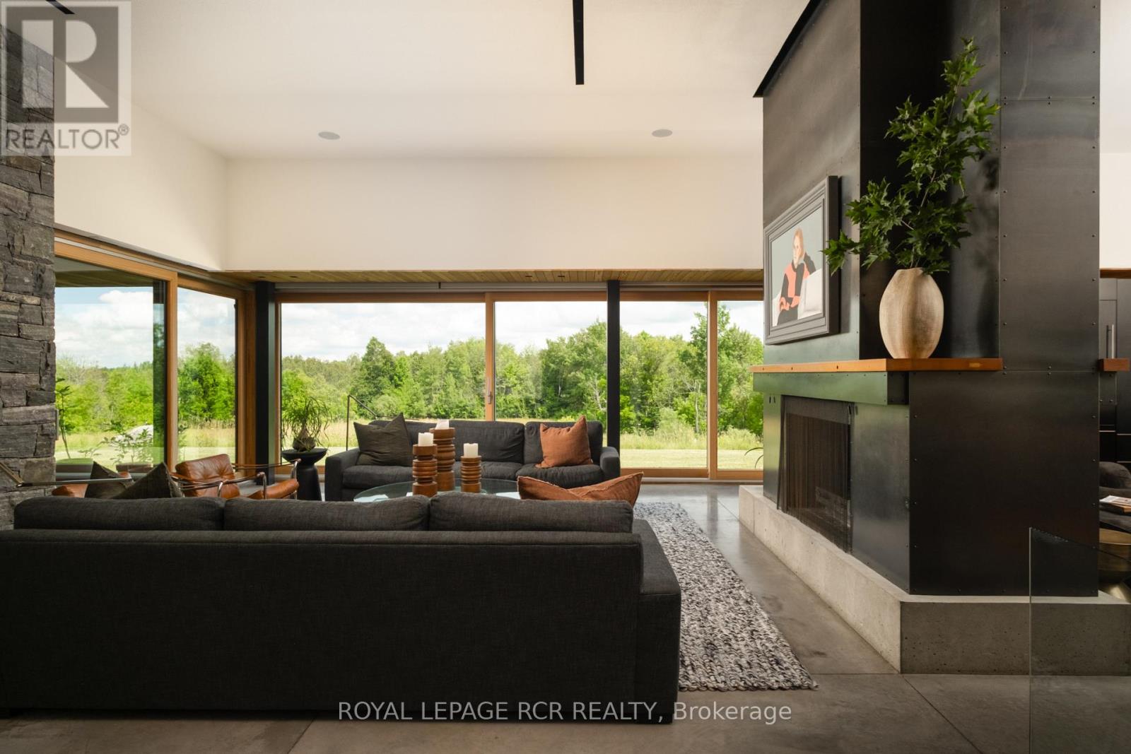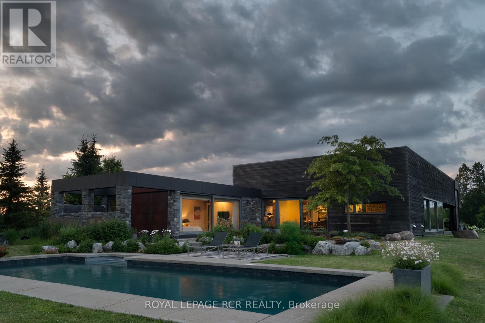 A soulful modern residence designed to sync with the rhythm of the sun, offering incredible vistas from all spaces & making an effortless connection between indoors & out. Nestled on approx. 98 acres in the bucolic countryside of Erin, bordering Caledon, a long heritage stone wall lined driveway leads to a striking modern masterpiece. Surrounded by organic farmland & woodlands w/ acres of groomed trails, it's a rare find w/ a spectacular 40' pool overlooking the lush landscape & gardens. This remarkable large-footprint family home unfolds w/ a series of dynamic living spaces. 5 bedrooms, 6 bathrooms & over 8500 sq ft including the basement, it is defined by natural materials like heated concrete floors, douglas fir cladded ceilings & stone masonry. A fabulous balance of raw materiality w/ beauty & comfort. The kitchen & dining room are surrounded by glass, connecting the home to the properties incredible sunrises & sunsets. A handsome two-way focal fireplace is in the open-plan living area. The primary wing is a retreat w/ a spa-like ensuite, walk-in closet & a walkout to a garden terrace & the pool. On the other side of the home, several gorgeous sized bedrooms each w/ expansive windows & their own special view. The lower level is a world of its own w/ a separate entrance, home gym, additional family room, & workshop. A thoughtfully designed mudroom w/ custom lockers provides a discreet & organized hub for all gear, from equestrian to ski equipment. Two full baths, including a second primary suite w/ ensuite, create a sanctuary for family or guests. Advanced details include retractable Doepfner windows w/ low emissivity glazing, 6 zone radiant floor heating and central air, geothermal pumps for heating & cooling, PU-foamed wall cavities, commercial grade reflective membrane roof, & a propane powered generator w/ automatic switch. Magnificent in every way, a sanctuary of impeccable design, a place where artistry & comfort come together that truly inspires. (id:51300)