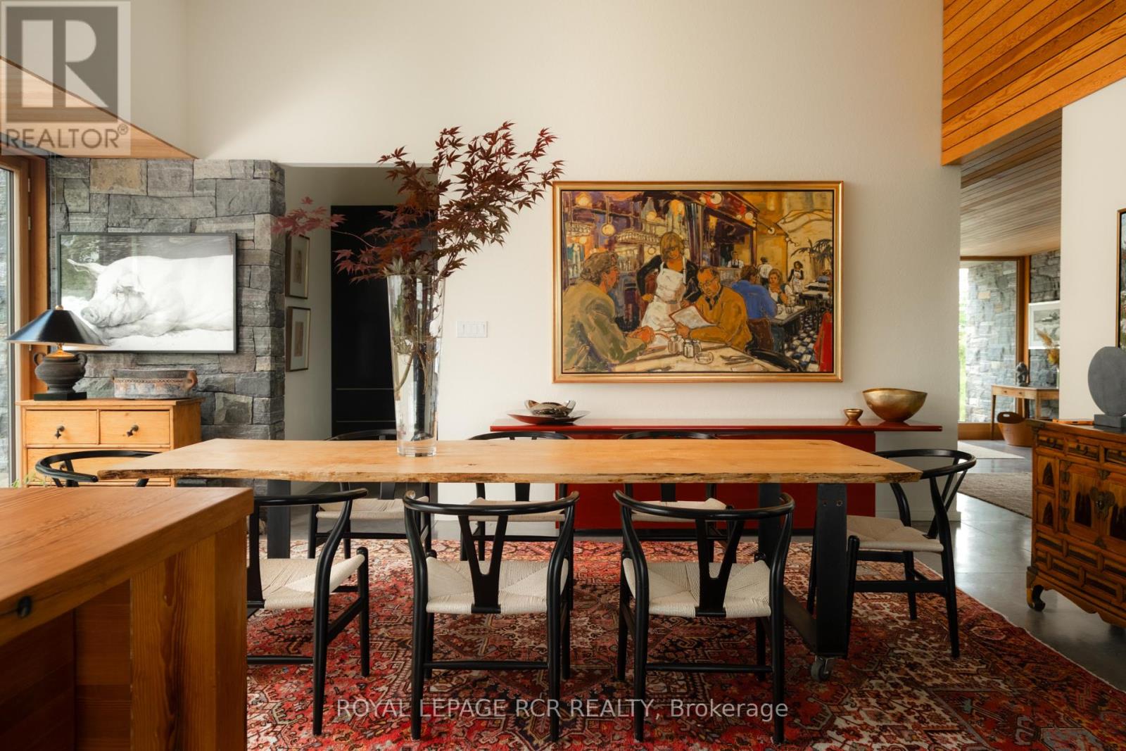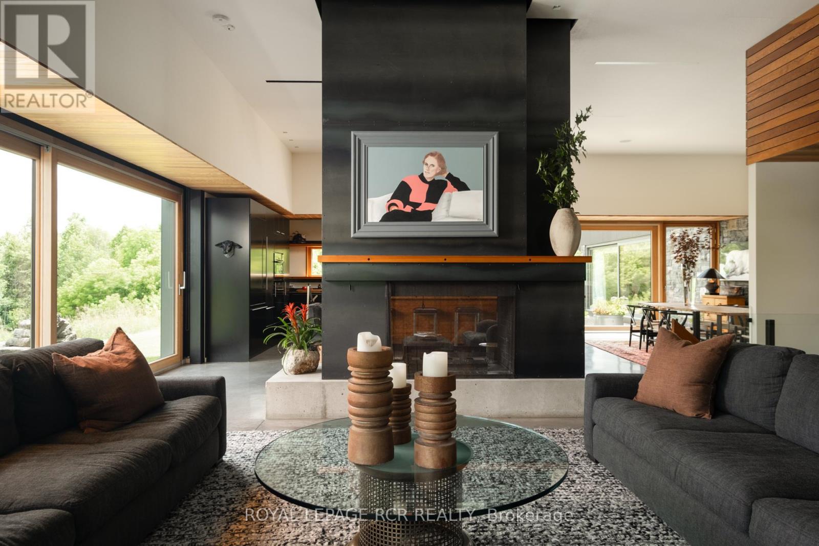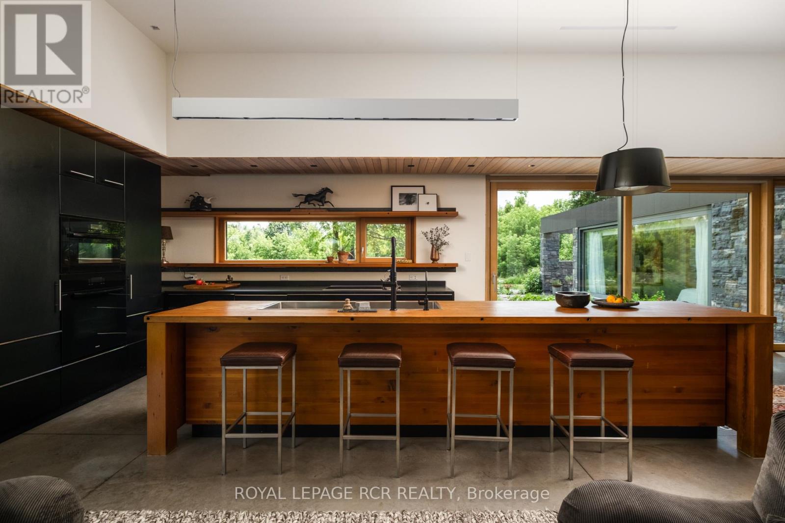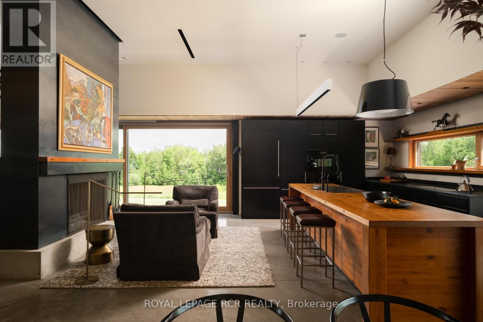 A soulful modern residence designed to sync with the rhythm of the sun, offering incredible vistas from all spaces & making an effortless connection between indoors & out. Nestled on approx. 98 acres in the bucolic countryside of Erin, bordering Caledon, a long heritage stone wall lined driveway leads to a striking modern masterpiece. Surrounded by organic farmland & woodlands w/ acres of groomed trails, it's a rare find w/ a spectacular 40' pool overlooking the lush landscape & gardens. This remarkable large-footprint family home unfolds w/ a series of dynamic living spaces. 5 bedrooms, 6 bathrooms & over 8500 sq ft including the basement, it is defined by natural materials like heated concrete floors, douglas fir cladded ceilings & stone masonry. A fabulous balance of raw materiality w/ beauty & comfort. The kitchen & dining room are surrounded by glass, connecting the home to the properties incredible sunrises & sunsets. A handsome two-way focal fireplace is in the open-plan living area. The primary wing is a retreat w/ a spa-like ensuite, walk-in closet & a walkout to a garden terrace & the pool. On the other side of the home, several gorgeous sized bedrooms each w/ expansive windows & their own special view. The lower level is a world of its own w/ a separate entrance, home gym, additional family room, & workshop. A thoughtfully designed mudroom w/ custom lockers provides a discreet & organized hub for all gear, from equestrian to ski equipment. Two full baths, including a second primary suite w/ ensuite, create a sanctuary for family or guests. Advanced details include retractable Doepfner windows w/ low emissivity glazing, 6 zone radiant floor heating and central air, geothermal pumps for heating & cooling, PU-foamed wall cavities, commercial grade reflective membrane roof, & a propane powered generator w/ automatic switch. Magnificent in every way, a sanctuary of impeccable design, a place where artistry & comfort come together that truly inspires. (id:51300)