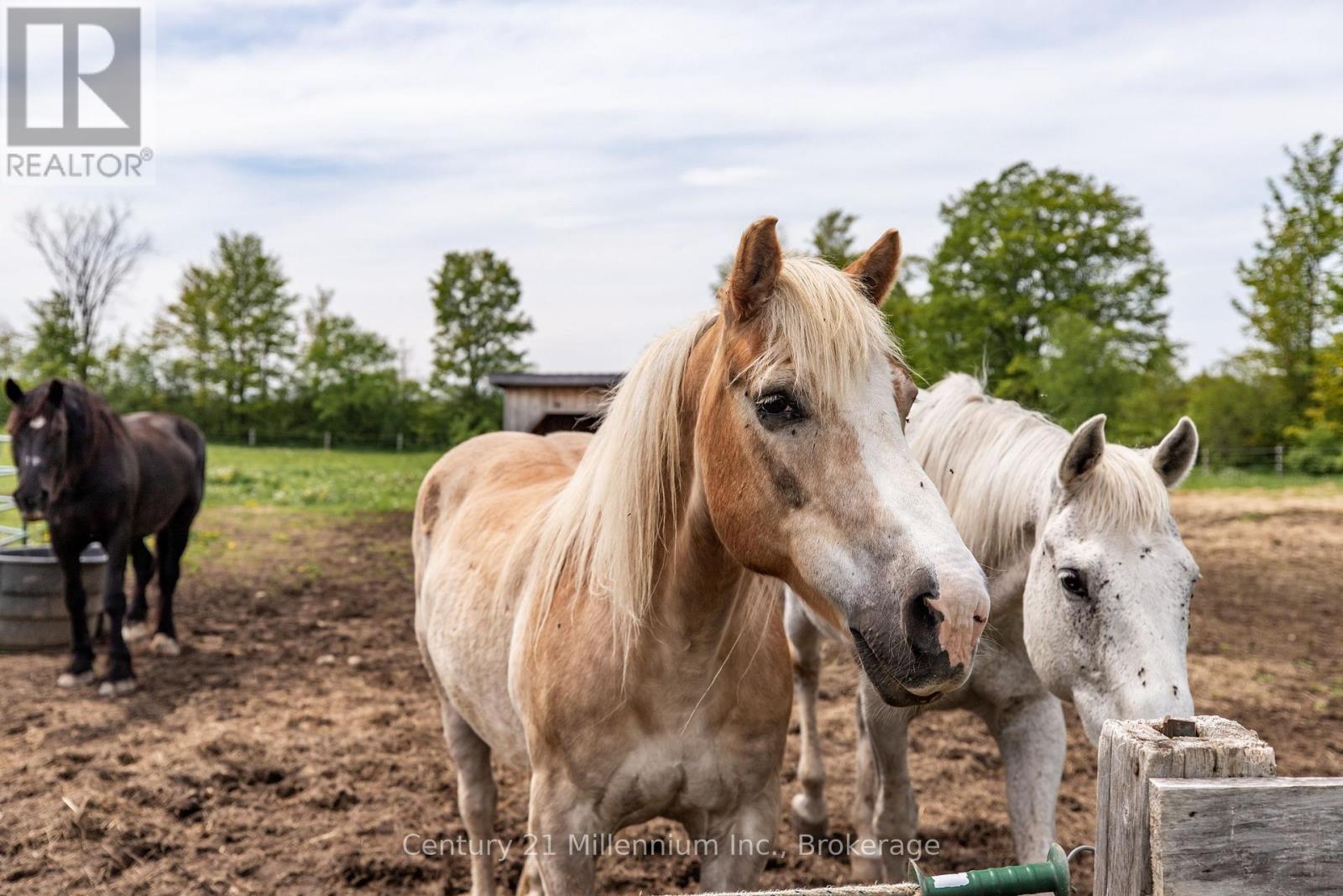 Set on 46 acres along the clean, cool waters of the Rocky Saugeen River, this log farmhouse is one of the last remaining century farms in Grey Highlands . Originally built in the 1880s and expanded in the 1970s, it combines historic features with modern upgrades. The main level of the home features an updated kitchen with a new garden door that brings in natural light. Upstairs, the primary bedroom offers wide plank floors, a walk-in closet, a 2-piece bathroom and could be converted back into 2 bedrooms. The home also includes a den that could be used as an office or guest room, and a modern laundry area with a new washer and dryer. Updates include a steel roof (2021), a 200-amp electrical panel, a generator plug, and a 2022heat/cooling pump with a backup electric furnace. A wood insert stove adds extra heat during the winter. The land includes approximately 25 workable acres currently seeded in regenerative hay crops. Approximately 15 acres are securely fenced and ready for hobby farming or equestrian pursuits. There are five paddocks with two electric outlets and one no-freeze hydrant for easy winter care. Original fence rows and walking trails lead to the Rocky Saugeen river. Outbuildings include a 60' x 88' board and batten barn built in 2020 with hydro and water, and a 30' x 50' detached garage/shop, also serviced with hydro and water. Additional structures include a chicken coop, woodshed, and a small animal shelter cat condo. Located just minutes from Markdale and a 35-minute drive to Owen Sound, this home places you in the heart of four-season recreation with skiing, hiking, fishing, paddling, snowmobiling, and more surrounded by the natural beauty of waterfalls, trails, and rivers. (id:51300)