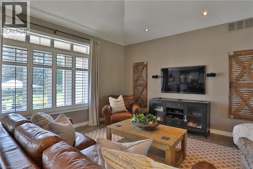 Welcome to this beautifully maintained Bungalow in the charming village of Glen Morris, offering the perfect blend of space, comfort, and versatility for modern living. Set on just over half an acre, this property is surrounded by mature trees and features a newly paved driveway with ample parking, along with both a 2-car attached garage and an impressive 24' x 40' drive-through detached garage with heated floors—ideal for hobbyists, contractors, or extra storage. The main floor offers a bright and spacious layout with 9’ ceilings and a stunning vaulted ceiling in the living room, enhanced by elegant transom windows that fill the space with natural light. You’ll find 3 generously sized bedrooms, including a large primary suite complete with a walk-in closet and private en-suite bathroom featuring heated floors for added comfort. Step outside to enjoy the private backyard retreat, featuring a deck and ground level interlocking patio—perfect for entertaining or relaxing while taking in the peaceful surroundings. The fully finished basement is exceptionally well-suited for extended family or multi-generational living, offering a direct walk up entrance, 3 additional bedrooms, bathroom, and a kitchenette. Located in a quiet, family-friendly community with a small-town feel, this property offers the space you want with the flexibility you need with over 3500 finished SqFt. A rare opportunity to enjoy country-style living with all the conveniences of a thoughtfully designed home. (id:51300)