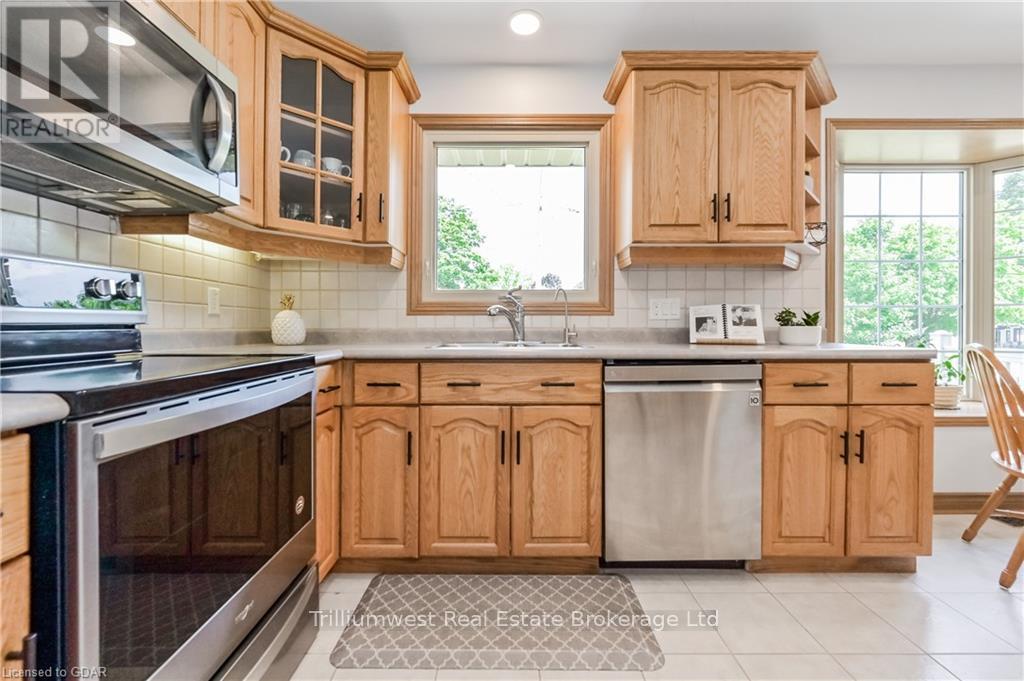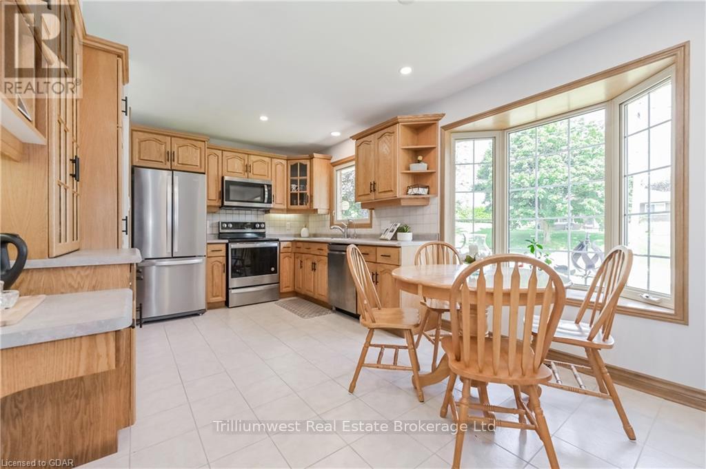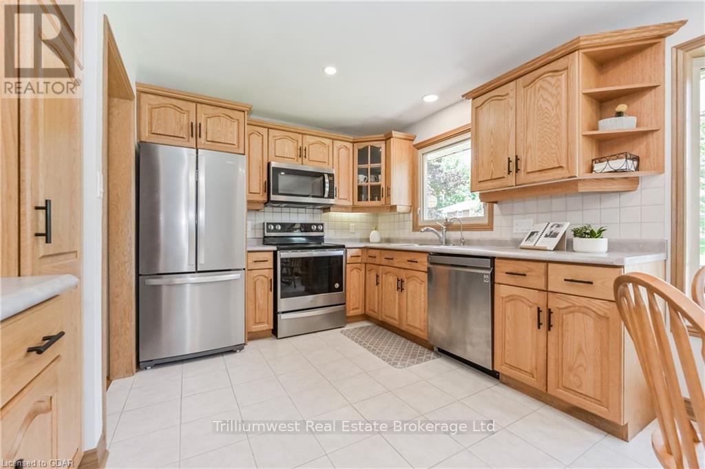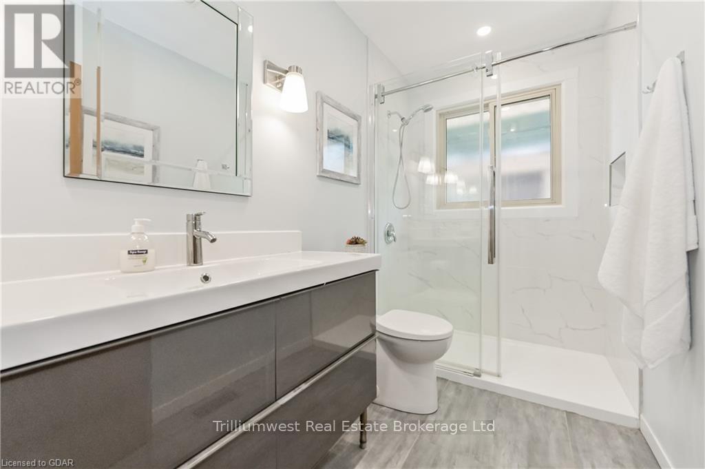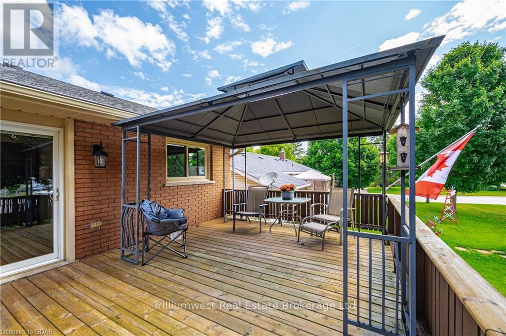 Welcome to this charming three + two bedroom detached bungalow in Mount Forest. With a spacious front porch, perfect for enjoying the quiet and serene neighbourhood. Step inside to an open-concept design connecting the kitchen seamlessly to the dining and living areas, creating an inviting space for family gatherings and entertaining friends. Down the hall, you'll find three cozy bedrooms and a beautifully renovated 3-piece bathroom (2018). The newly renovated basement (2024) provides excellent in-law suite potential, featuring two additional bedrooms, a modern 3-piece bathroom, and a large recreation room. The laundry room and extra storage space add practicality to this well-designed home. Relax on the sizeable back deck with a built-in gazebo ideal for a hot tub or transforming into an outdoor bar for summer fun. The backyard also includes a handy shed, offering ample storage for gardening tools and outdoor essentials. The garage was thoughtfully converted from a carport (2019), providing added convenience and functionality. With a long driveway, theres ample parking for multiple vehicles. Conveniently located close to the hospital, parks, schools, and downtown Mount Forest, this home is tucked in a quiet zone, free from the sound of emergency vehicles. This charming home has been lovingly maintained, making it ready for you to start your next exciting chapter. Schedule your viewing today! (id:51300)