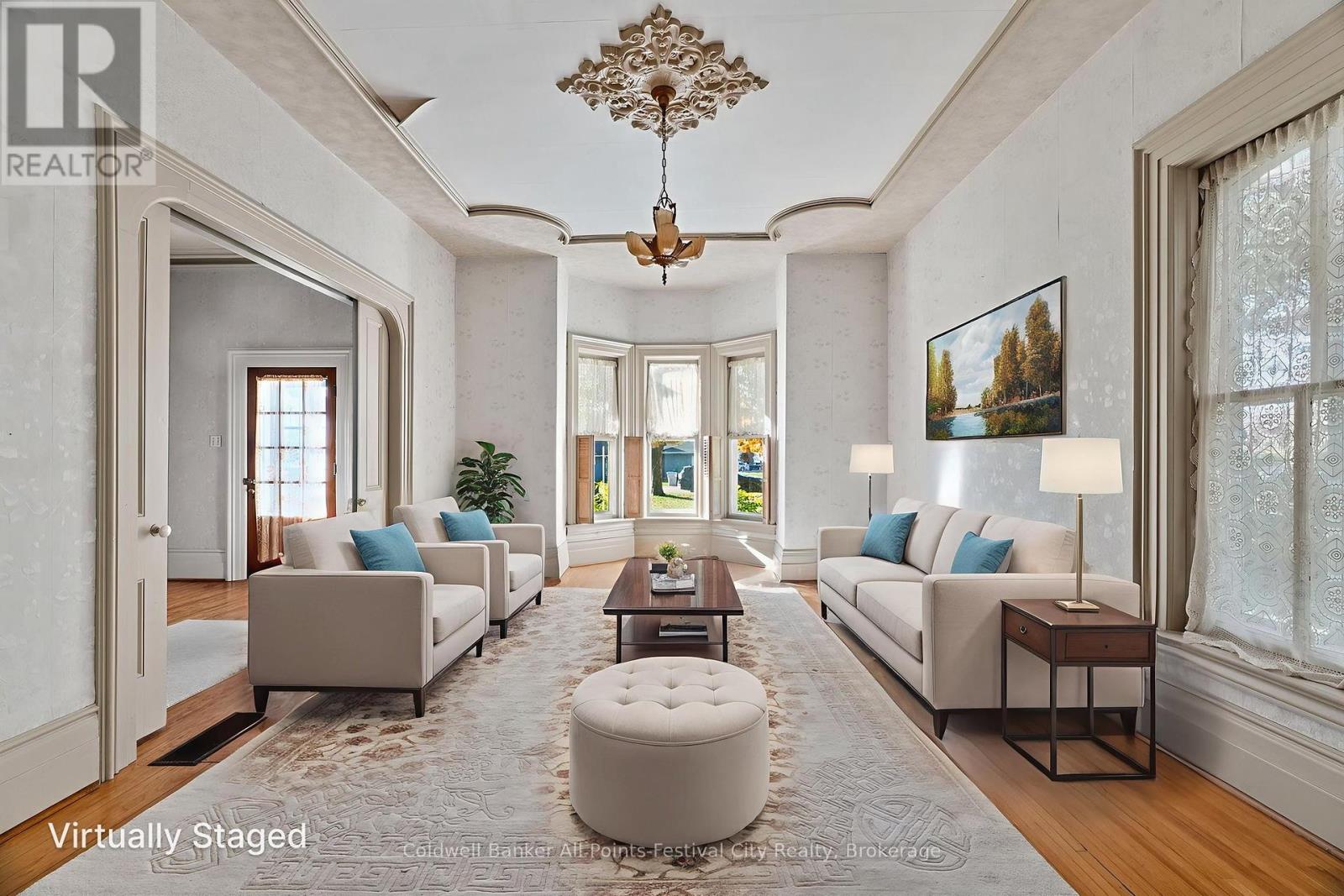 Welcome to historic 55 Nelson Street East. This heritage-designated 5 bedroom, 2 bathroom home is a beautiful example of classic craftsmanship and historic charm. With original details like stunning moulding, high ceilings and hardwood floors, this property offers a rare opportunity to own a piece of Goderich history. Close to The Square and family favourite, Victoria Park, the home is not one to miss. The spacious living and dining rooms are full of character, with large windows that bring in natural light and highlight the home's unique features. Intricate moulding and high ceilings throughout add to the elegant, timeless appeal. The main floor also offers an adaptable parlour or main floor bedroom. Upstairs, you'll find four bedrooms, each with its own charm and potential, along with a two piece bath. The basement has high ceilings, with potential to finish and create even more living space. Though the home is in need of some updates and improvements, there is a fantastic foundation and the chance to add your personal touch while preserving its historic character. The exterior features a spacious front yard and private backyard, perfect for enjoying the outdoors. This home is ideal for those who appreciate history and are looking for a property with potential to make their own. Don't miss the chance to own a piece of heritage and create a home full of charm and character. Schedule a tour today and imagine the possibilities! (id:51300)