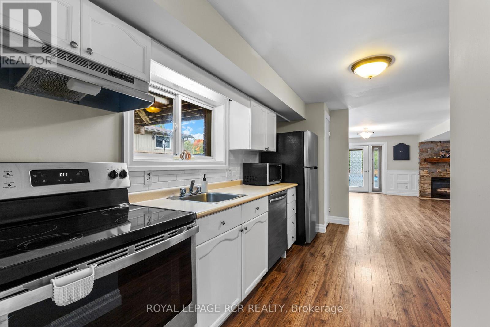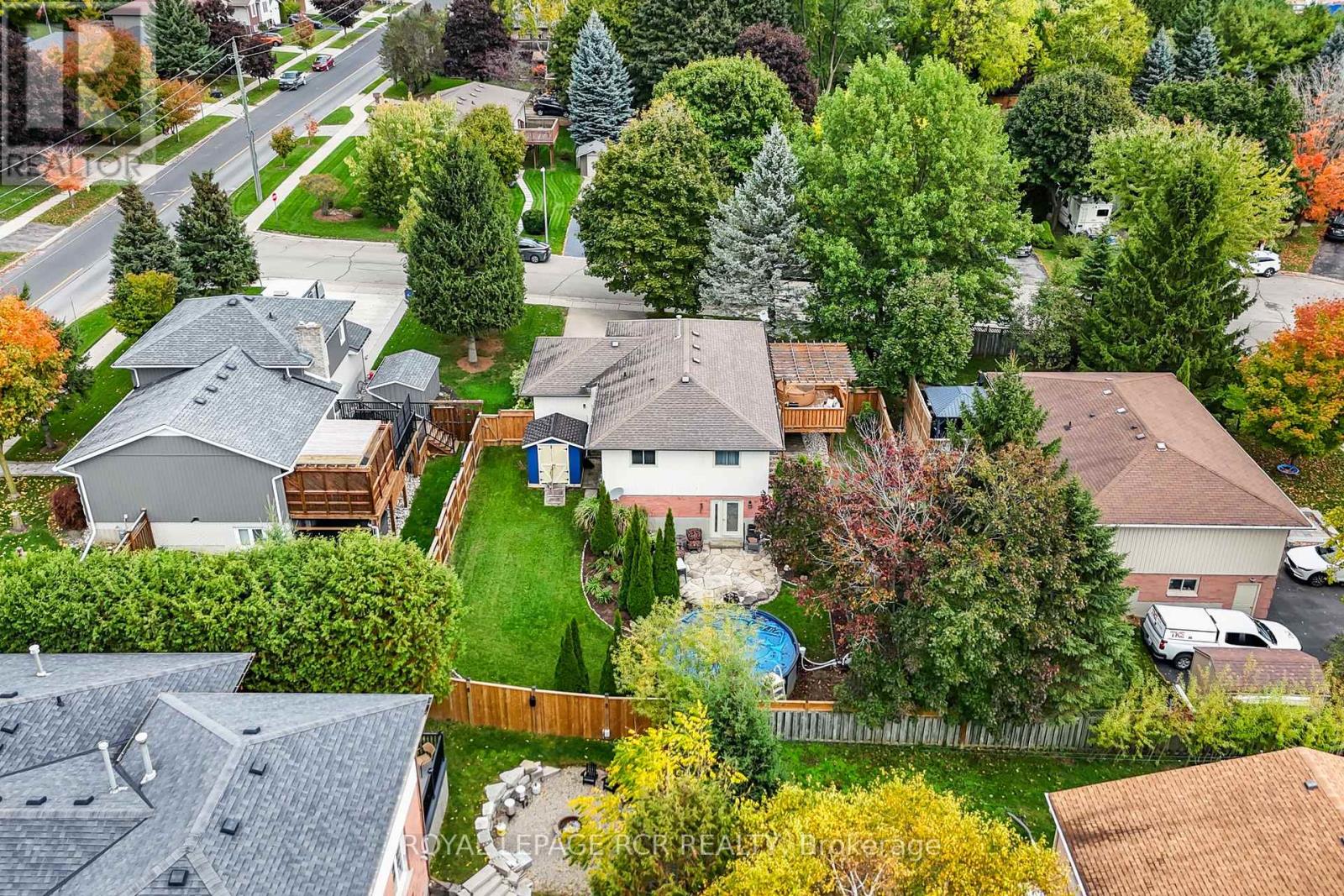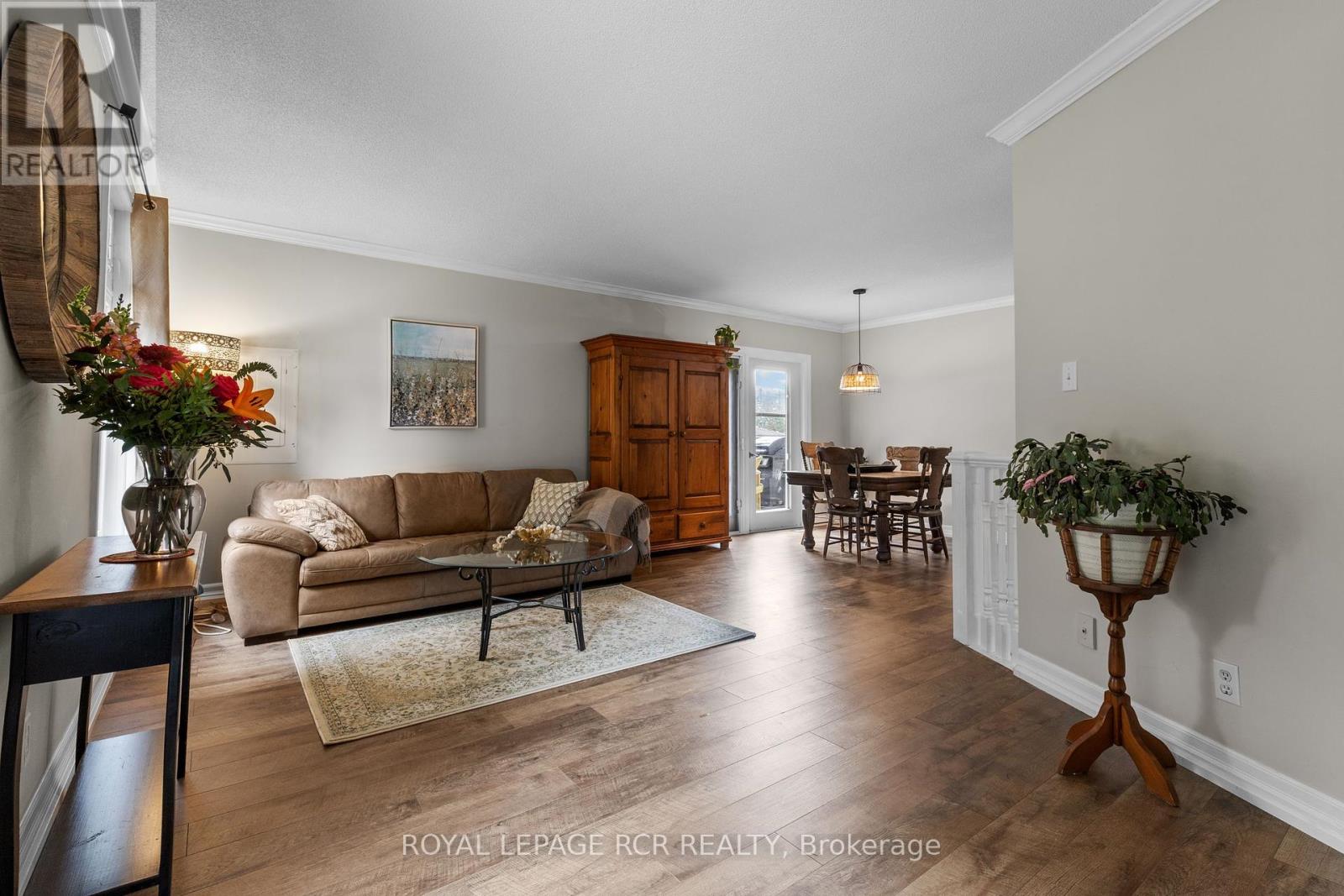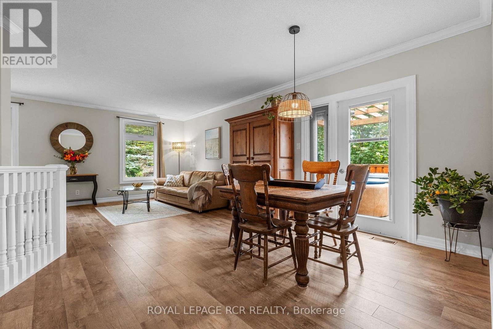 Welcome to this beautifully maintained raised bungalow nestled on a quiet crescent, just steps from local amenities in charming Elora. Situated on a large fenced lot, this property is steps from the Elora cataract trail and bike path. This home exudes warmth and pride of ownership throughout, with elegant crown molding accenting the main living spaces and a bright, functional layout designed for family living.The main level offers three bedrooms (one bedroom conveniently features the second laundry) and a tastefully updated 4-piece semi-ensuite featuring porcelain tile flooring, a tiled bath surround, and a granite-topped vanity. Enjoy vinyl plank flooring in the principal rooms and a walkout from the dining area to a large deck with an open pergola perfect for outdoor dining and relaxation.The lower level presents an excellent opportunity for an in-law or multigenerational living. Complete with a kitchenette, spacious recreation room, gas fireplace, separate laundry area and a ground-level walkout to the beautifully landscaped backyard with flagstone patio and fire pit. Outdoors, the fenced yard provides plenty of space for family enjoyment and features an above-ground saltwater pool with a sand filtration system, ideal for summer fun and entertaining. Additional highlights include an attached insulated single-car garage, double-wide concrete driveway for ample parking. Numerous thoughtful updates including a new upper level electrical panel & separate meter (2024), new heat pump (2024) and owned tankless water heater (2024) .This exceptional home offers the perfect blend of comfort, functionality, and style in a family-friendly neighbourhood a true gem you wont want to miss! ** PUBLIC OPEN HOUSE SATURDAY OCTOBER 18 FROM 11AM-1PM** (id:51300)