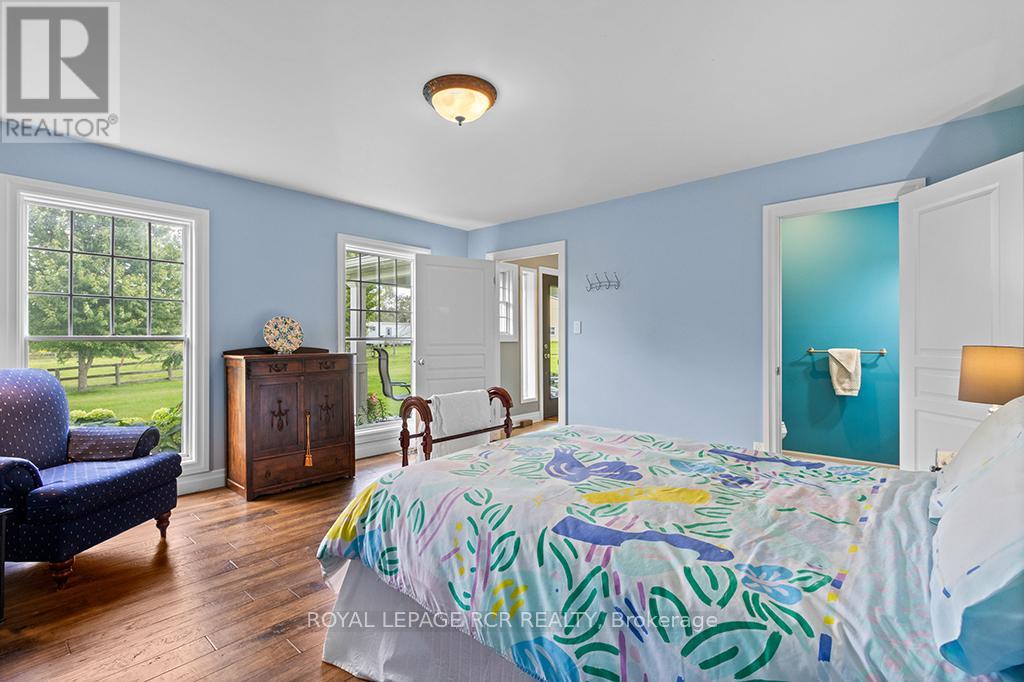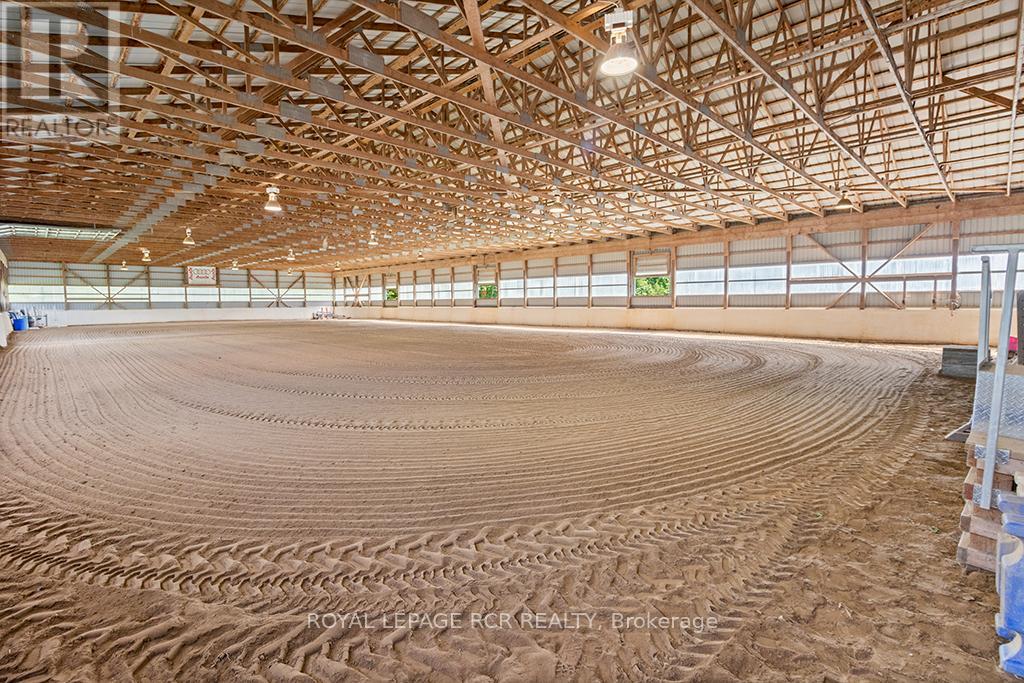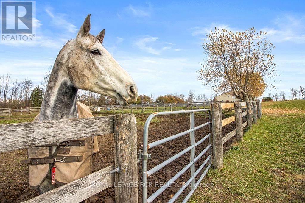 Where Horse, Home, and Heart Align. Set among premier horse farms in elite equestrian country, this exceptional 49-acre estate is designed for those whose days begin in the barn aisle and end planning the next ride. Ten lush paddocks with frost-free hydrants and hydro support seamless, year-round horsekeeping, while the insulated, ventilated 20-stall steel barn features a heated tack room, wash and grooming stalls, feed room, 3-piece bath, & hay storage above with convenient drops - efficient and rider-friendly. The attached 76' x 160' indoor arena with operable windows allows consistent training through every season, perfect for winter miles and polishing flatwork. Outdoors, a large jumping field, 150' x 200' sand ring, and grass dressage field support relaxed hacks to show-ready schooling, while two productive hayfields enhance self-sufficiency. The 1997-built residence offers comfort after long days in boots and breeches, with hand-scraped wide-plank hickory floors, 9' and cathedral ceilings, and abundant natural light. The updated chef's kitchen with Wolf cooktop, leathered granite counters, and generous island opens to the dining area and Great Room with beamed cathedral ceiling. A main-floor bedroom with ensuite adds flexibility; upstairs are three additional bedrooms and updated baths with heated floors and towel warmers. The primary suite includes a dressing room, custom walk-in closet, and spa-inspired ensuite. Walk-out lower level awaits future plans. Upgrades include a 2024 cold-climate heat pump with propane furnace backup, Generac generator supporting essential farm systems, and newer Goodfellow siding. Minutes from Angelstone, Meadowlarke North, and Palgrave-where life with horses feels perfectly in stride. A thoughtful layout keeps routines efficient, from first feed to final night check, with easy flow between barn, arena, & home-ideal for competitors or passionate riders seeking a turnkey property ready to enjoy from day one. Ready to tack up now. (id:51300)