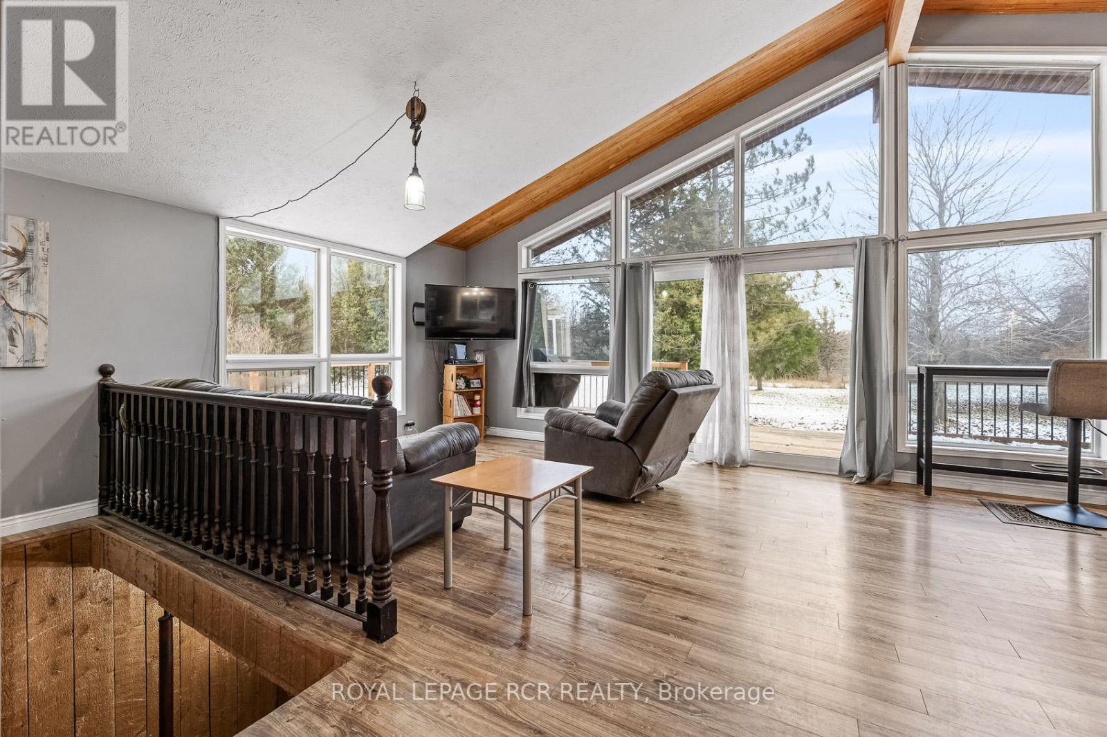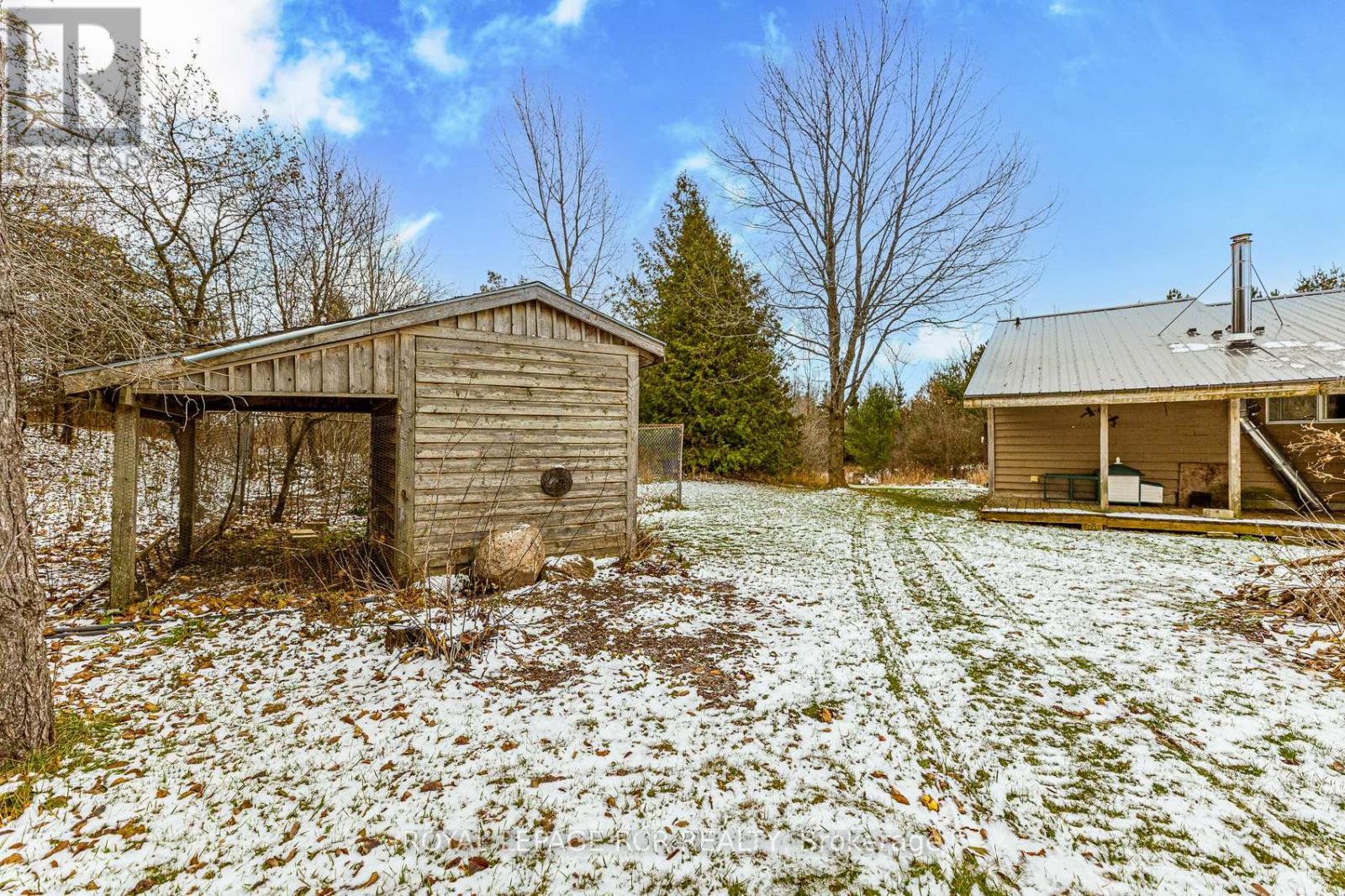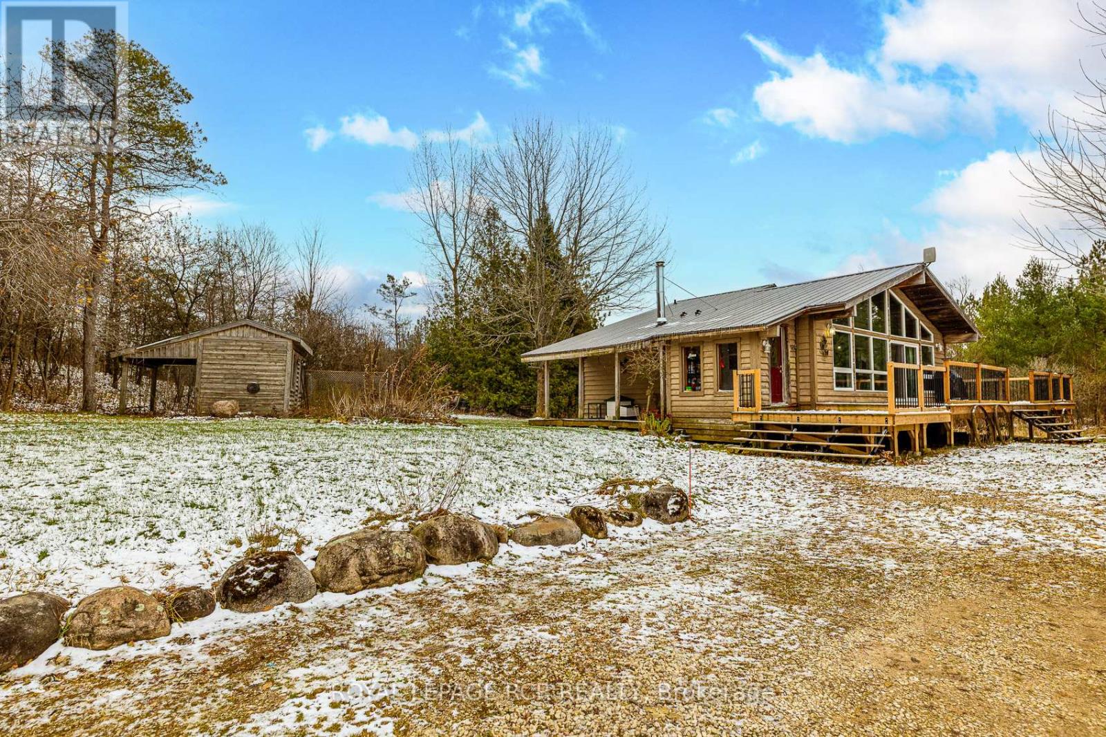 It doesn't get anymore perfect than this. Beautiful country retreat featuring 7.75 private acres, a bright 2 bedroom bungalow with wrap around porch, 20 x 30 detached workshop with hydro and heat and 20 x 30 cold storage at the back of the shop for all your toys. Step inside the mudroom entrance and into the updated open concept main level living space that features a vaulted ceiling and grand floor to ceiling windows for spectacular country views. The kitchen features stainless steel appliances and centre island, the family room with tons of light has a walkout to the wrap around deck. The primary bedroom also has a walkout to the deck and his and her closets. The lower level is partially finished with framing for 3 rooms and a wood stove that is the perfect way to supplement your heat in the winter months. Outside is perfect for all nature lovers and hobby farmers. There is a chicken coop and old paddock in need of a little TLC. Roof on the home was completed in 2022 and new roof on the shop in 2018. (id:51300)