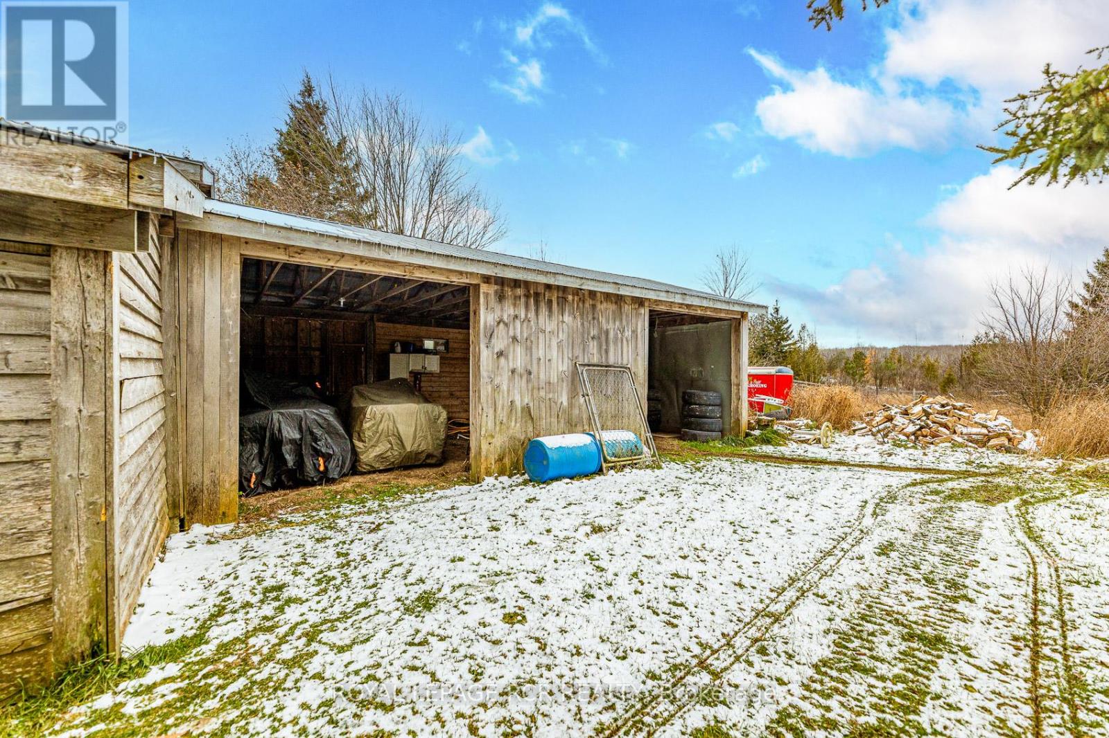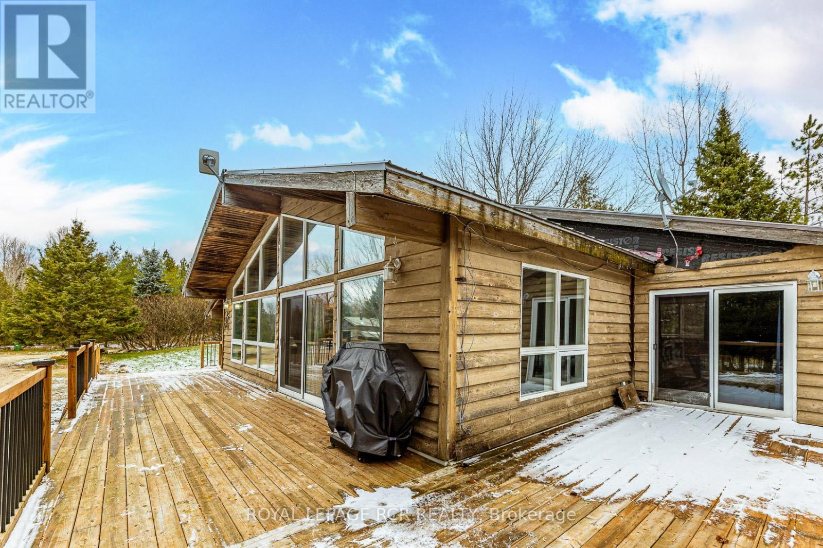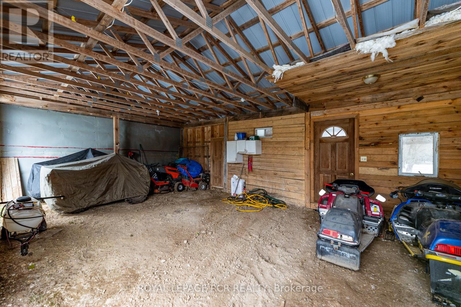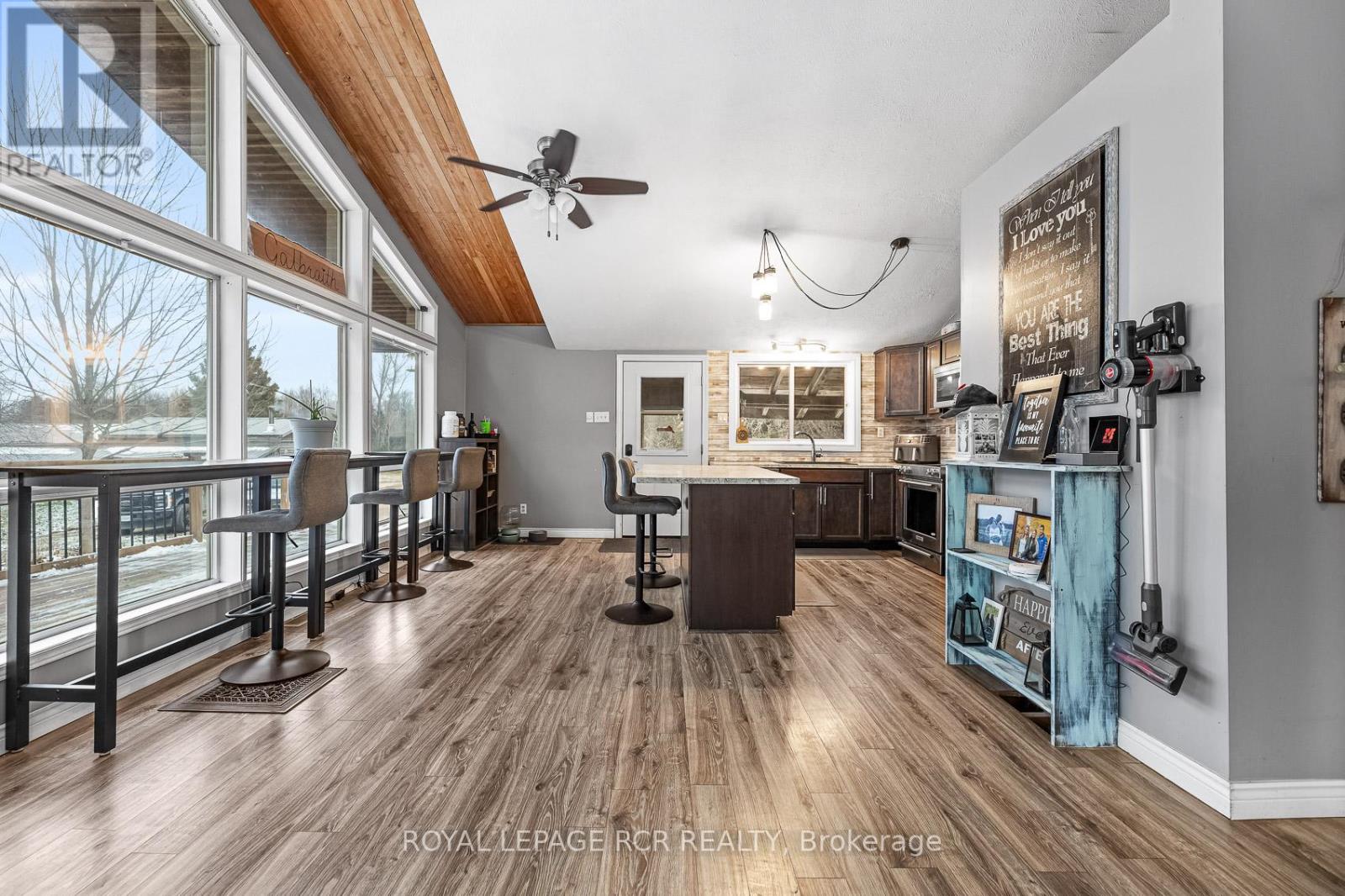 It doesn't get anymore perfect than this. Beautiful country retreat featuring 7.75 private acres, a bright 2 bedroom bungalow with wrap around porch, 20 x 30 detached workshop with hydro and heat and 20 x 30 cold storage at the back of the shop for all your toys. Step inside the mudroom entrance and into the updated open concept main level living space that features a vaulted ceiling and grand floor to ceiling windows for spectacular country views. The kitchen features stainless steel appliances and centre island, the family room with tons of light has a walkout to the wrap around deck. The primary bedroom also has a walkout to the deck and his and her closets. The lower level is partially finished with framing for 3 rooms and a wood stove that is the perfect way to supplement your heat in the winter months. Outside is perfect for all nature lovers and hobby farmers. There is a chicken coop and old paddock in need of a little TLC. Roof on the home was completed in 2022 and new roof on the shop in 2018. (id:51300)