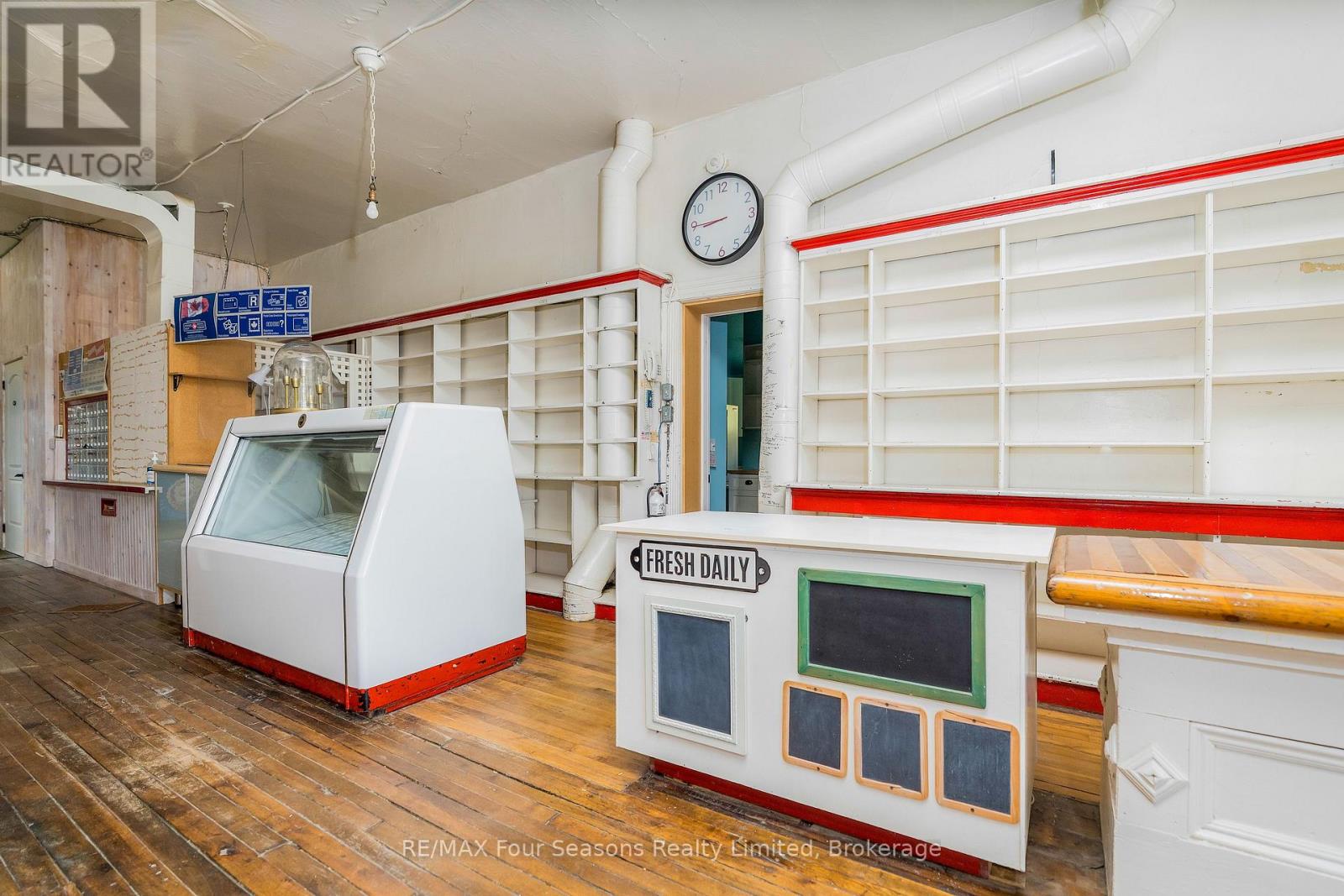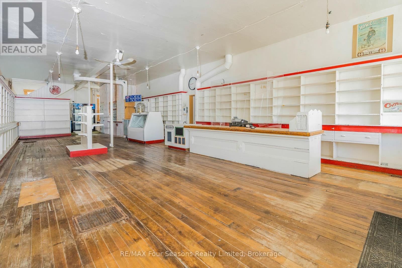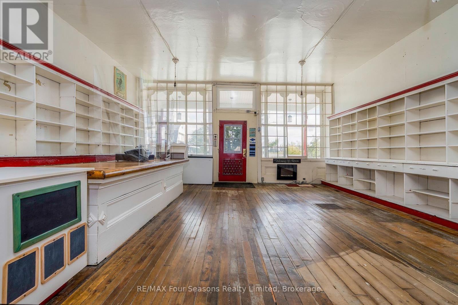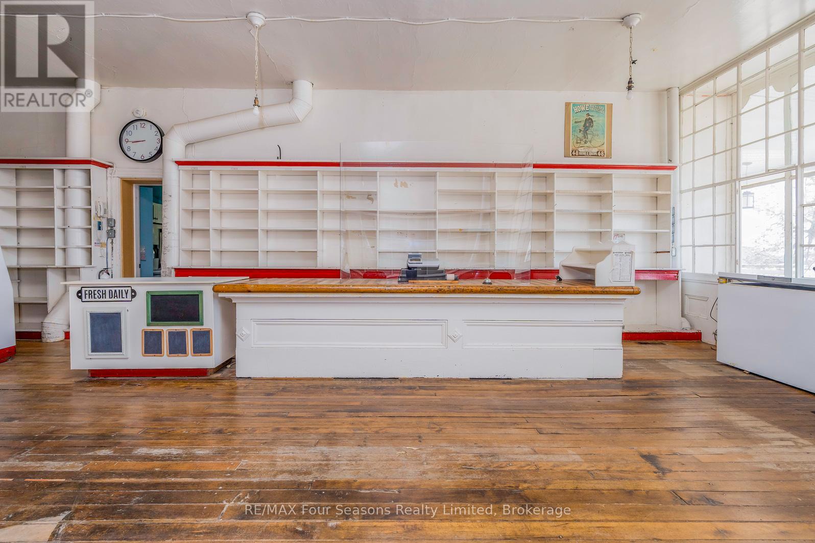 A rare opportunity to own a piece of Badjeros history! This 3,632 sq ft former general store, restaurant, and post office sits on a high-visibility corner lot, full of character and possibilities. The main floor offers flexible commercial space, featuring a fully equipped commercial kitchen and a private office, both with heated floors perfect for a café, bakery, market, catering business, retail shop, or professional services. Upstairs, a bright and spacious 2-bedroom, 1-bath apartment offers comfortable living or rental income potential. Additional highlights include a detached 2-car garage with a horse & buggy tie-up, beautiful gardens, and inviting outdoor space. Located along a busy throughfare and popular cycling route, its a prime location to attract steady traffic. Zoned C2 - live, work, and bring this historic community hub back to life. You have to see it to believe it - don't wait, call today! (id:51300)
