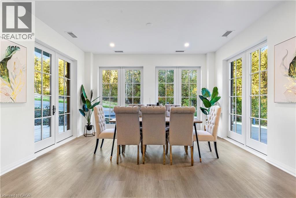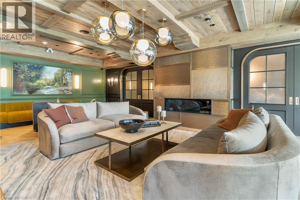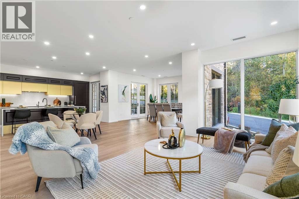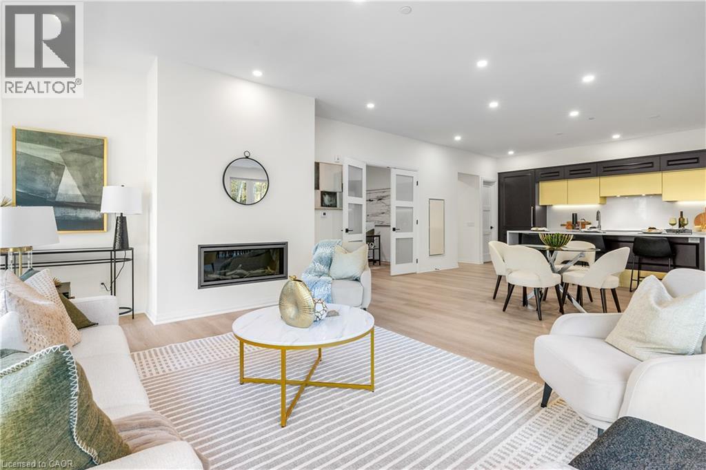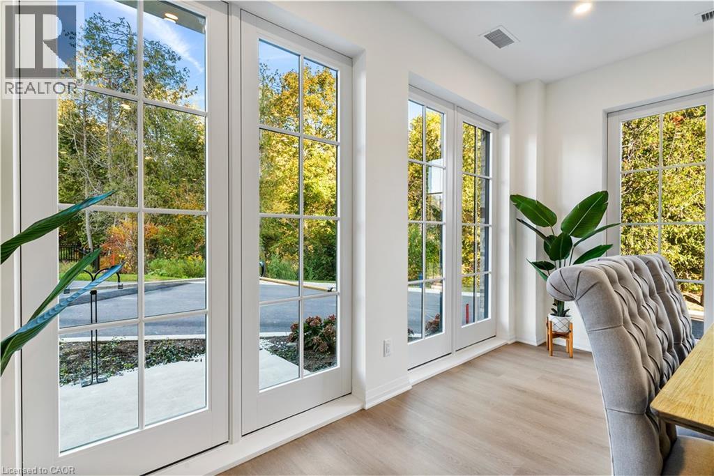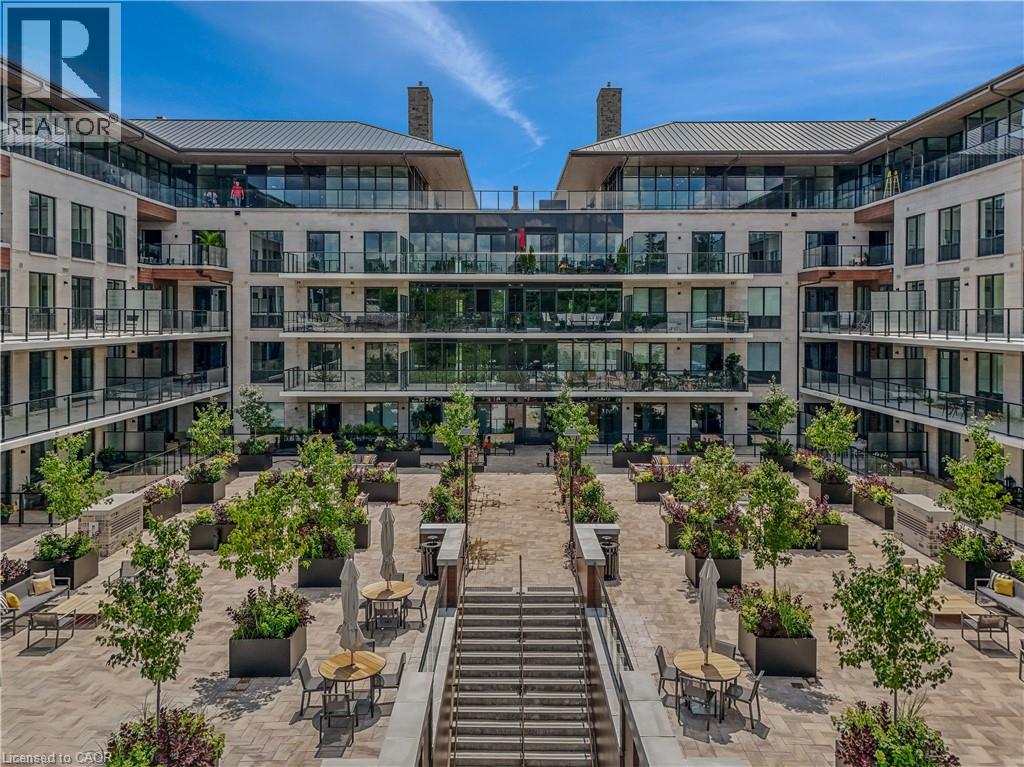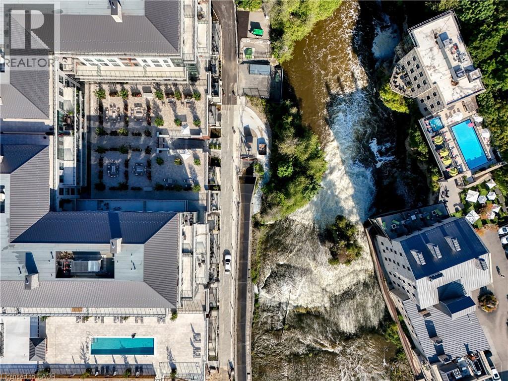 This one of a kind 2 bedroom plus den, 3 bath suite is an expansive 2,330 sq ft Custom Residence. Perfectly designed with a traditional home layout, its ideal for downsizers transitioning to condo living offering plenty of space and the ability to keep your large furniture. The open concept layout includes 10' ceilings and features a spacious kitchen with a large island with seating for four, and a rare walk-in pantry. A walkout leads to a private patio, perfect for outdoor dining and relaxation. The generous dining room accommodates a large table and is surrounded by windows with views of lush greenery. The open living room, with a cozy gas fireplace, offers space for multiple seating areas. Wall-to-wall windows frame stunning views of the Elora Gorge, the Elora Mills stonework, and Tranquil River views. Retreat to one of two expansive primary suites, each with walk-in closets, ensuite bathrooms, and walkouts to a private balcony overlooking the river. Fall asleep to the soothing sounds of flowing water. A versatile den is ideal for an office, TV room, or guest room. Additional highlights include being the only residence in the building with large laundry room complete with cabinetry and sink, gas fireplace, indoor parking with EV charger, and a storage locker just steps from the front door. Located on the highly desirable riverside trail level, this unit is especially appealing to pet owners and those who value the option of having direct access without reliance on an elevator. Just steps from Elora's top restaurants, shops and cafes, residents also enjoy resort style amenities including a Concierge, Lobby Coffee Bar with daily fresh pastries, Furnished Outdoor terrace, Elegant Lounge and Party Room, Fitness Center, Yoga Studio and Outdoor Pool with Spectacular River Views!! (id:51300)