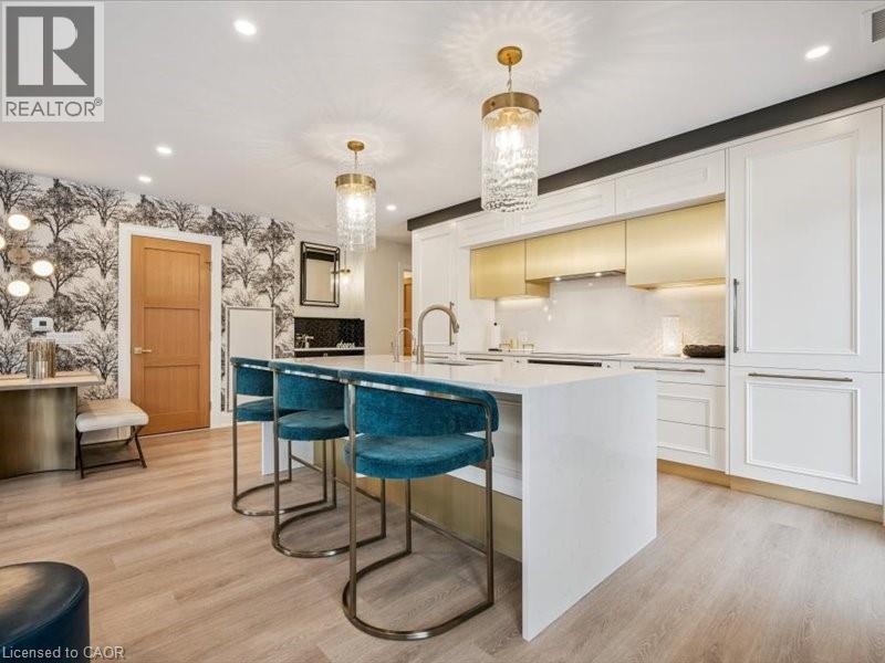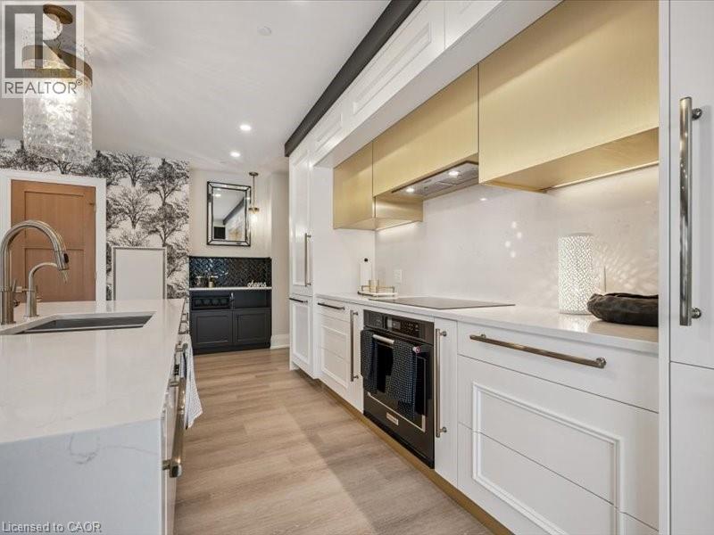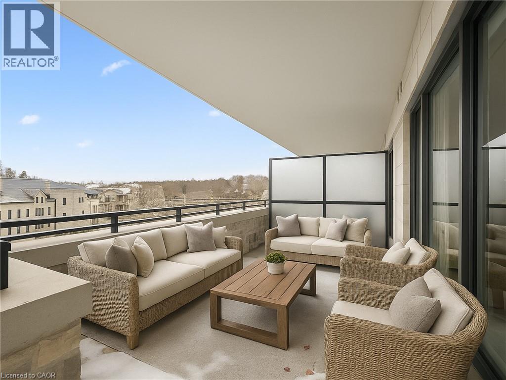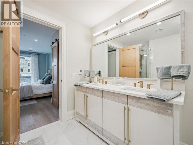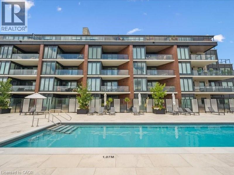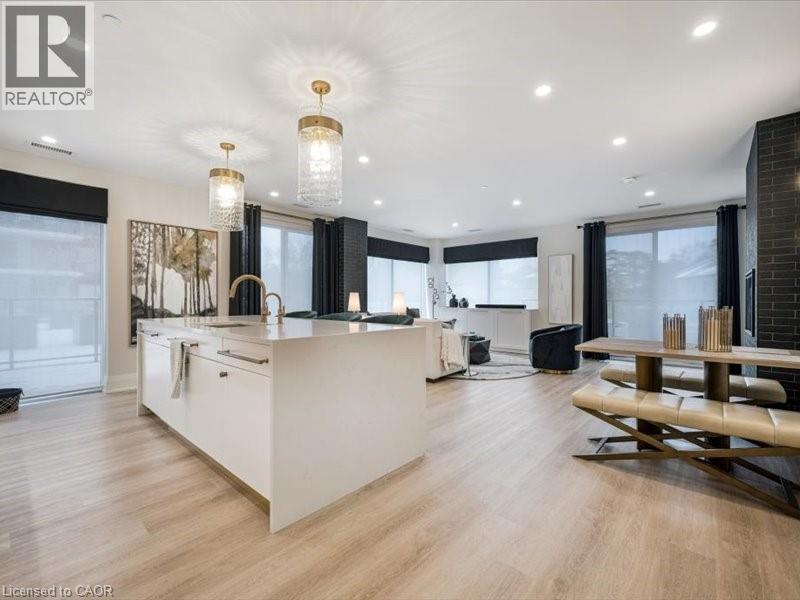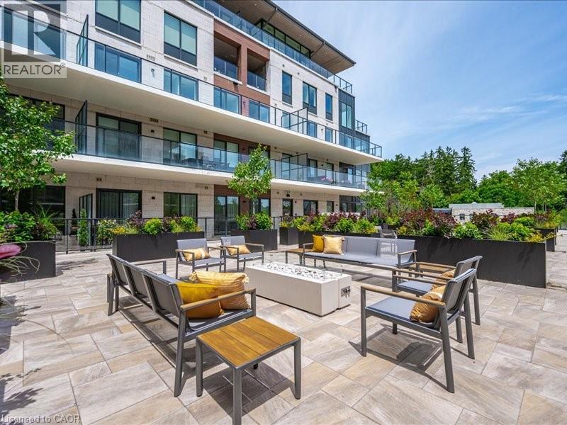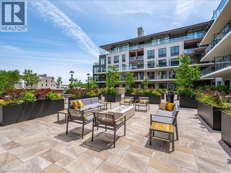 Luxury Living at The Elora Mill Residences! Introducing a turn-key luxury, corner suite in one of the most prestigious locations in the region. Professionally designed and furnished (all included), this fantastic residence offers a bright, airy open-concept layout with wraparound floor-to-ceiling windows, with custom privacy screening, stunning views of the Grand River and the Elora Mill, with three walkouts to an extraordinary 734 sq ft private wraparound terrace! The expansive modern kitchen features custom cabinetry, a huge waterfall-edge island with seating, and top-tier appliances including KitchenAid and a Fisher & Paykel built-in fridge/freezer. A stylish dining area flows seamlessly into the living room, complete with an elegant fireplace feature. The luxurious primary suite offers a large walk-in closet + second closet, and a spa-inspired ensuite with heated floors, double vanity, walk-in shower, and soaker tub. A second bedroom and full bathroom (also with heated floors) make the perfect retreat for guests. Additional features include in-suite laundry (Whirlpool), electric custom blinds, EV parking, and a storage locker. Enjoy resort-style amenities: concierge, lobby coffee bar, residents’ lounge, private dining room, gym, yoga studio, fire-pit patios, and a spectacular outdoor pool and sun deck. Steps to Elora’s shops, cafés, restaurants, trails, and parks, this rare ground-level suite with walkout terrace delivers unmatched luxury, convenience, and views - a truly exceptional offering in the heart of Elora. (id:51300)
