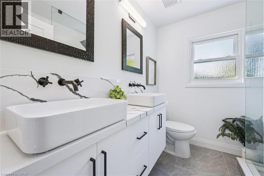 **Open House Sunday 2-4pm**Step into this beautifully renovated 3-bedroom, 2-bathroom home offering over 1300 sqft of thoughtfully designed living space. Boasting luxurious finishes throughout, this turn-key home features durable vinyl flooring, sleek quartz countertops, and brand new appliances that blend style and functionality. The bright and airy main floor includes a spacious living room accented by a stylish barn door, and a versatile flex room just off the kitchen—perfect for a home office, playroom, or mudroom—with direct access to a new deck and a deep, fully fenced backyard, ideal for entertaining or relaxing outdoors. Upstairs, the main bath is a true retreat with a double vanity, elegant fixtures, and a large walk-in glass shower. The modern glass railing adds an open, contemporary feel to the staircase and upper level. Downstairs, the partially finished basement provides additional living space—great for a rec room, gym, or guest area. Located in one of Stratford’s most desirable neighbourhoods, this home blends timeless charm with modern updates—move in and enjoy! Renovations (2024-2025) (id:51300)