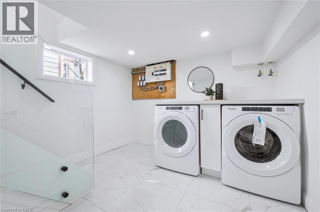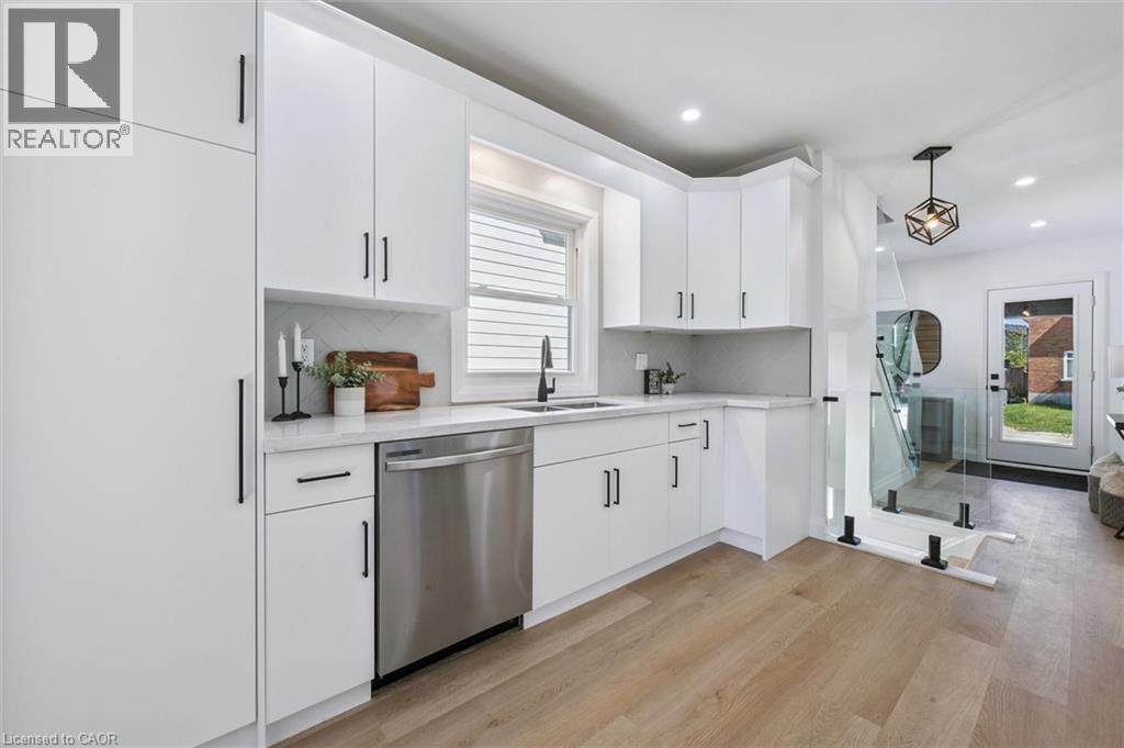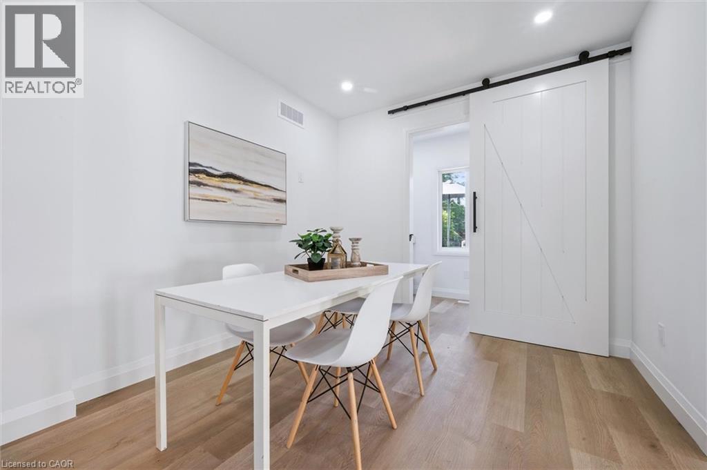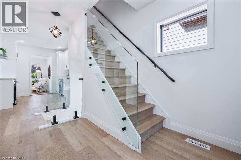 Step into this beautifully renovated 3-bedroom, 2-bathroom home offering over 1300 sqft of thoughtfully designed living space. Boasting luxurious finishes throughout, this turn-key home features durable vinyl flooring, sleek quartz countertops, and brand new appliances that blend style and functionality. The bright and airy main floor includes a spacious living room accented by a stylish barn door, and a versatile flex room just off the kitchen—perfect for a home office, playroom, or mudroom—with direct access to a new deck and a deep, fully fenced backyard, ideal for entertaining or relaxing outdoors. Upstairs, the main bath is a true retreat with a double vanity, elegant fixtures, and a large walk-in glass shower. The modern glass railing adds an open, contemporary feel to the staircase and upper level. Downstairs, the partially finished basement provides additional living space—great for a rec room, gym, or guest area. Located in one of Stratford’s most desirable neighbourhoods, this home blends timeless charm with modern updates—move in and enjoy! Renovations (2024-2025) (id:51300)