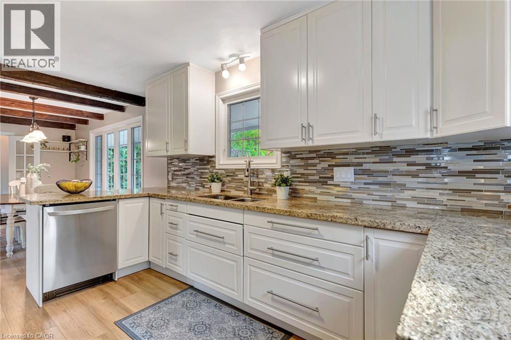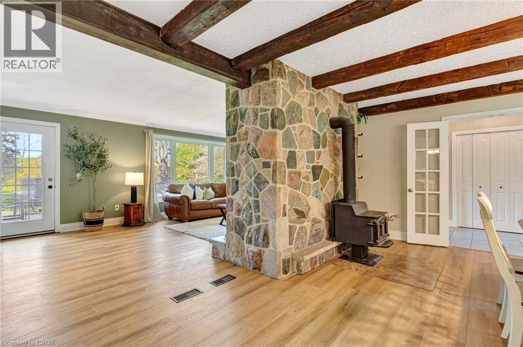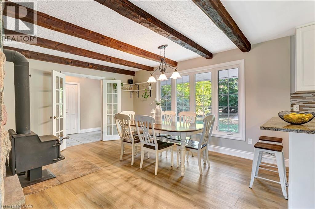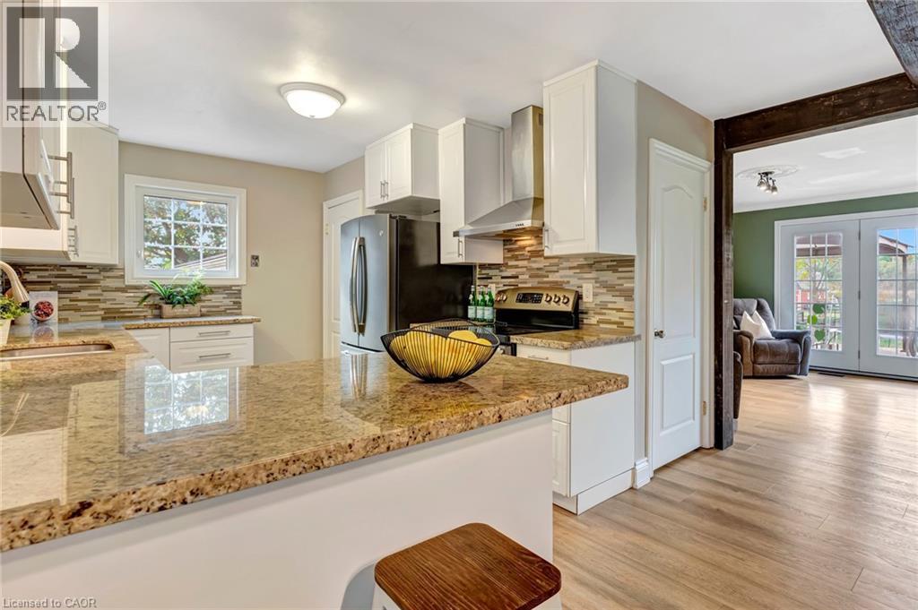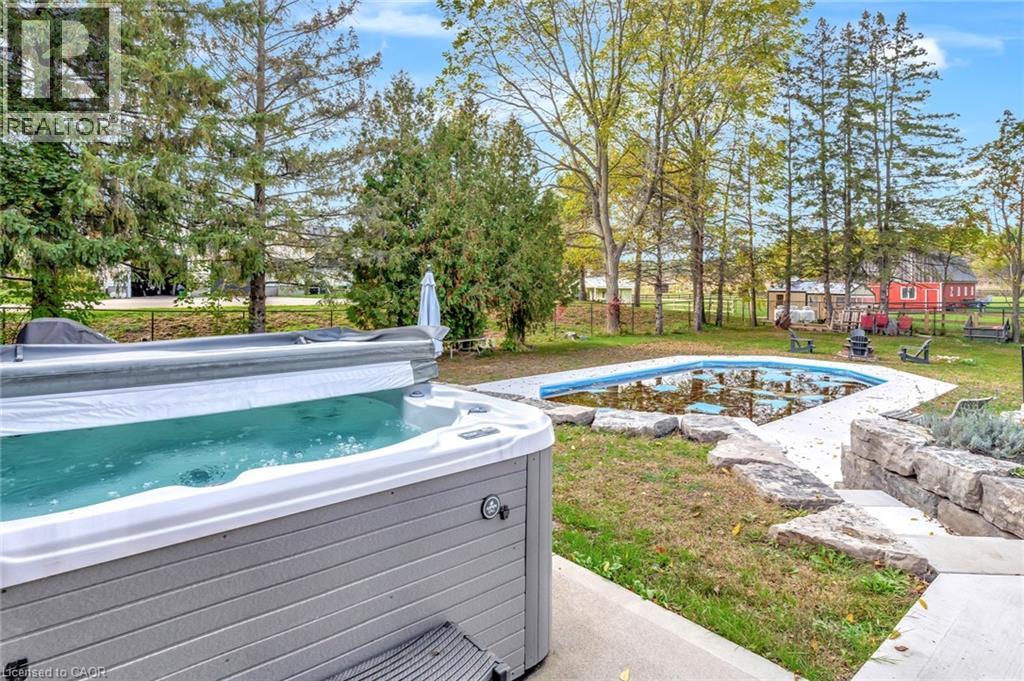 A rare opportunity to own a beautifully updated bungalow on a full acre of land in the desirable community of Puslinch. Just minutes from Cambridge, Guelph, and the 401, this property offers the peace of country living with easy access to city conveniences. This home features 1,763 sq. ft. of living space on the main floor and an additional 888 sq. ft. of finished space in the basement. A welcoming foyer off the large covered porch leads into the updated dining room, kitchen, and living room. These spaces are thoughtfully laid out and distinguished by a stone fireplace that provides additional heat during the cooler months. The dining room sits beside the kitchen, overlooking the mature trees out front. With plenty of prep and storage space, the kitchen layout is ideal for cooking enthusiasts and busy families alike. Just off the dining room, the living room features French doors that open to a private backyard with an inground pool, hot tub, and greenspace perfect for campfires, veggie gardens, or flower beds. The finished lower level includes a large recreation area and a fourth room ideal for an office or hobby space. With main-floor laundry, a powder room, and an attached two-car garage, this home combines functionality and charm in an ideal rural setting, perfect for those seeking more land, less noise, and a life surrounded by natural beauty. (id:51300)