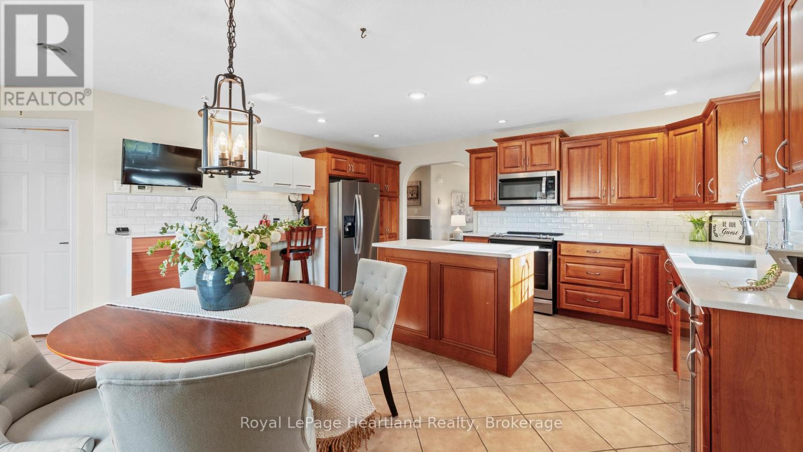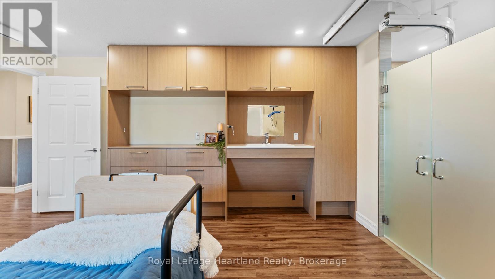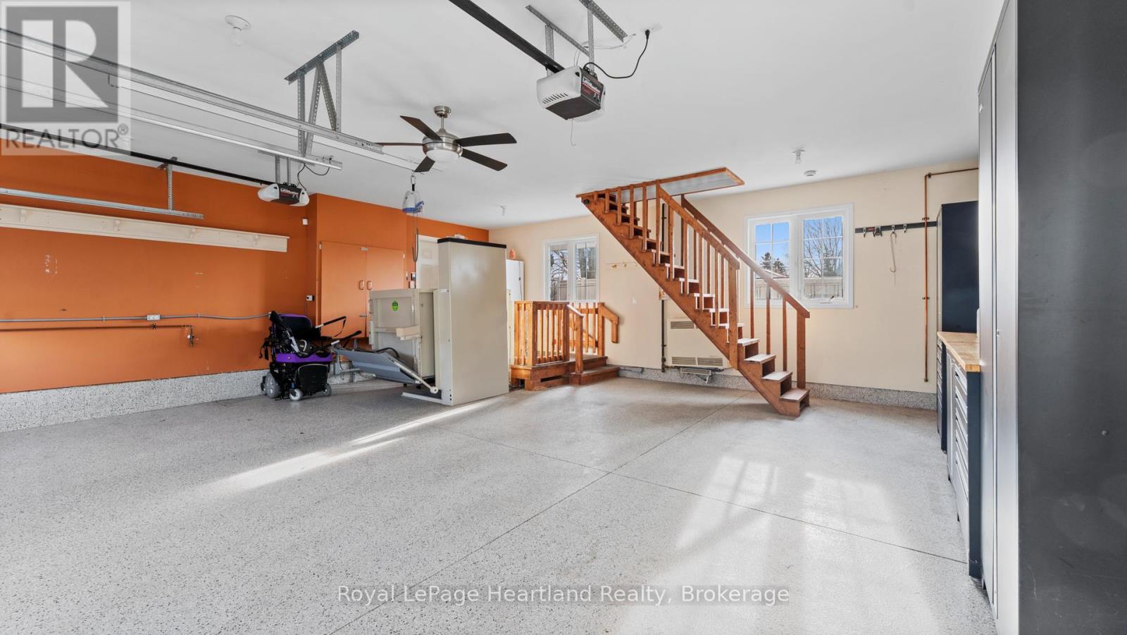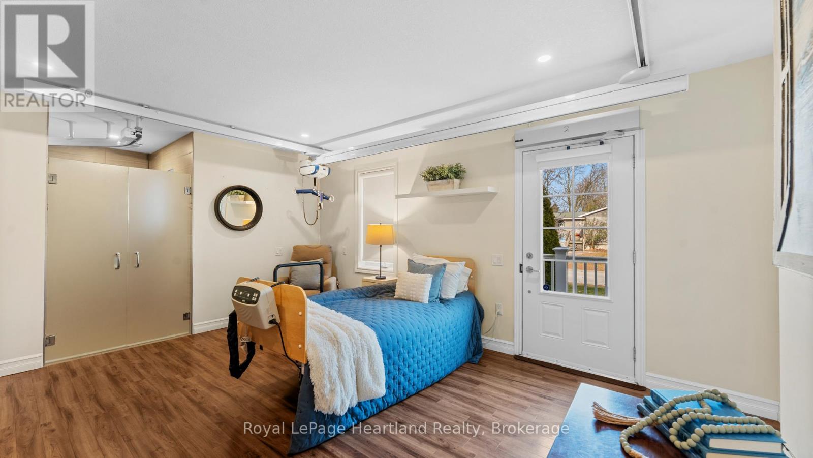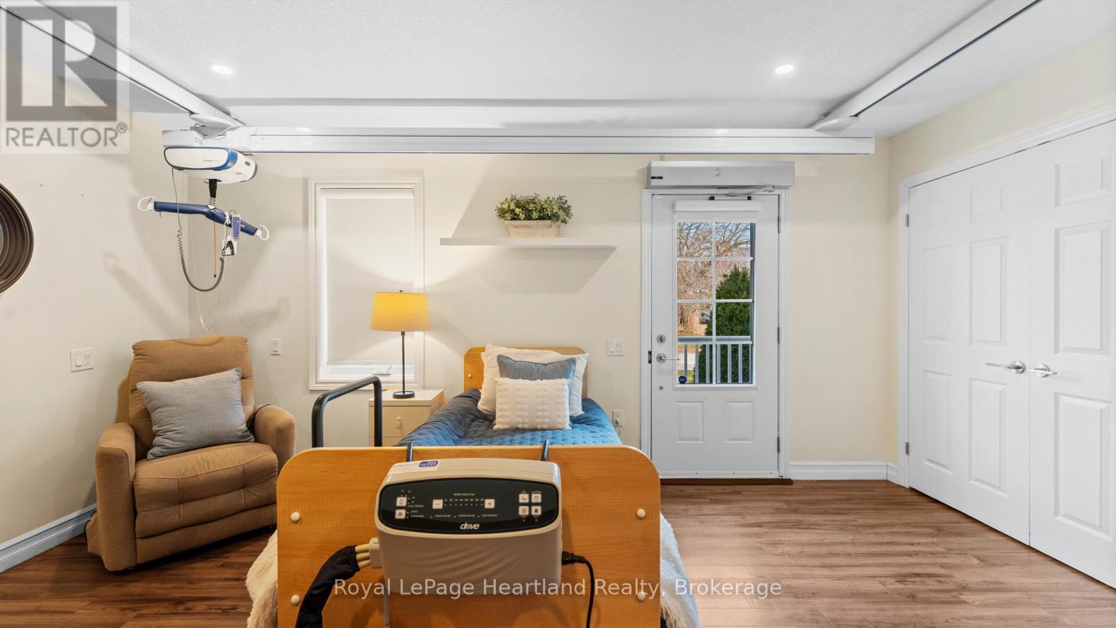 Welcome to an exceptional custom brick bungalow, built in 2016 and located in the heart of Seaforth, offering complete barrier-free living with every detail thoughtfully designed for full accessibility. This rare home features extensive exterior concrete walkways and ramps for effortless entrance, automatic interior doors, in-floor heating, and tile and laminate flooring throughout. The beautifully finished cherry kitchen offers excellent functionality with customized cabinetry designed for wheelchair access and opens to a cozy living room with a gas fireplace. With three bedrooms including a primary suite fully equipped with ceiling tracking, lift systems, an automatic adjustable bed setup, and a completely barrier-free shower, this home is built for independence, comfort, and dignity. Additional highlights include an automatic generator, gutter guards, an invisible pet fence, a water softener, reverse osmosis drinking system, an alarm/security system, a heated two-car garage with lift and elevator access, a bonus room above the garage perfect for an office or guest space, two sheds, a fully fenced yard, an inground sprinkler system, a steel roof, and newer windows throughout. An extraordinary amount has been invested into concrete around the exterior for seamless mobility, making this truly a one-of-a-kind offering. If you were to build this home today with similar adaptive technology and features, the cost would be significant-proving that at this price, it is an exceptional value for anyone seeking a fully accessible home. Move-in ready and built to exceed expectations, this is barrier-free living at its finest. (id:51300)