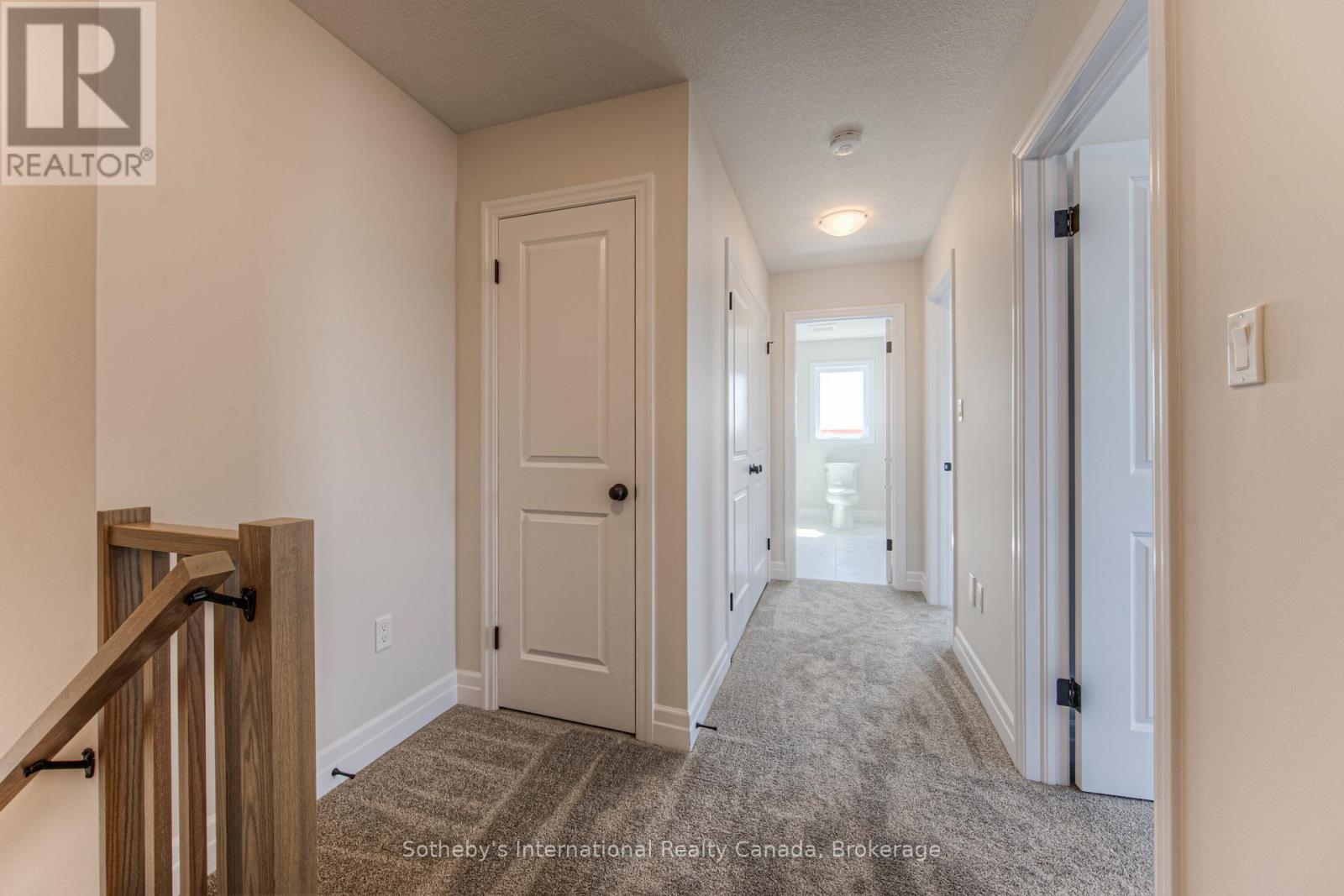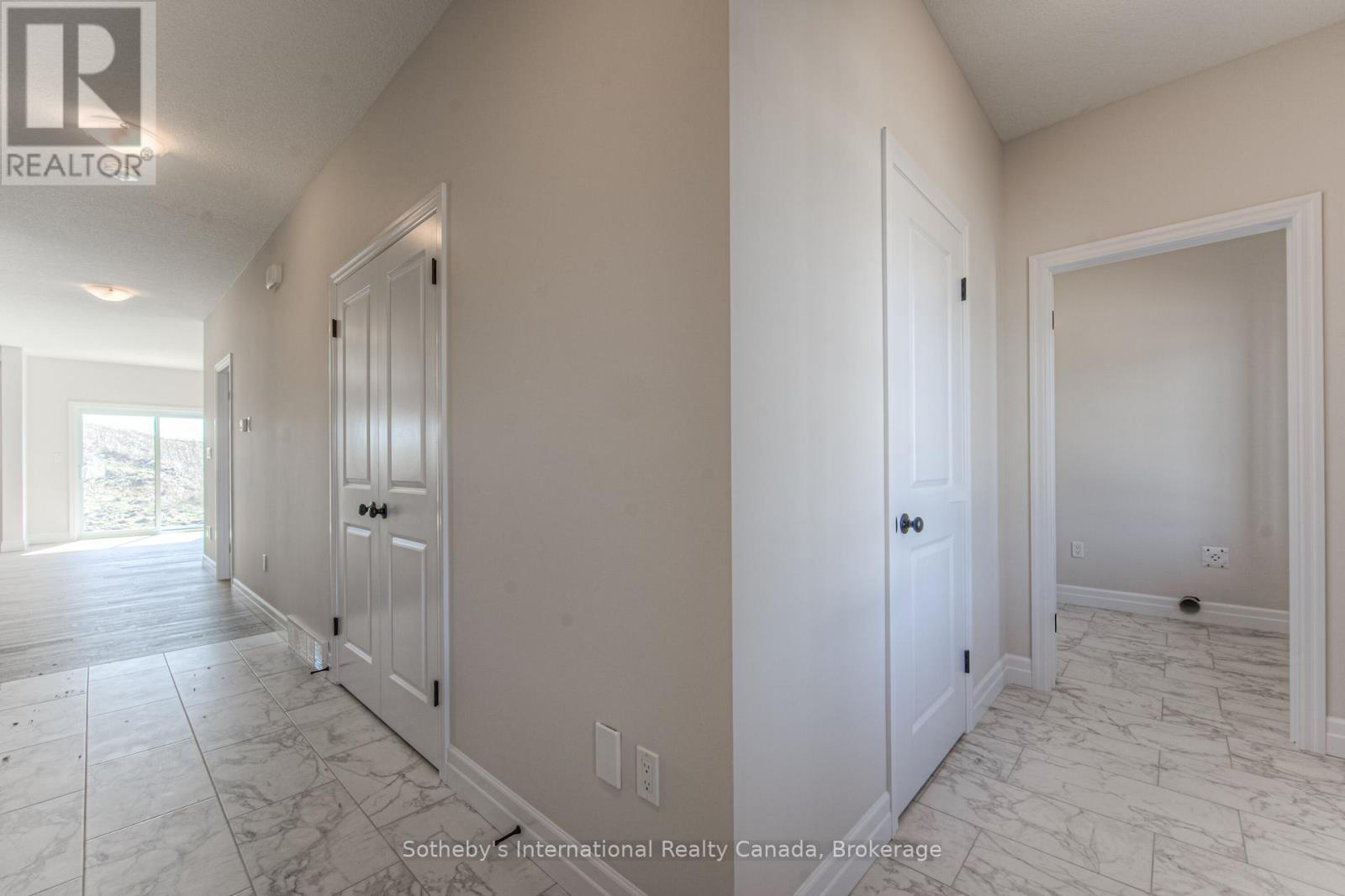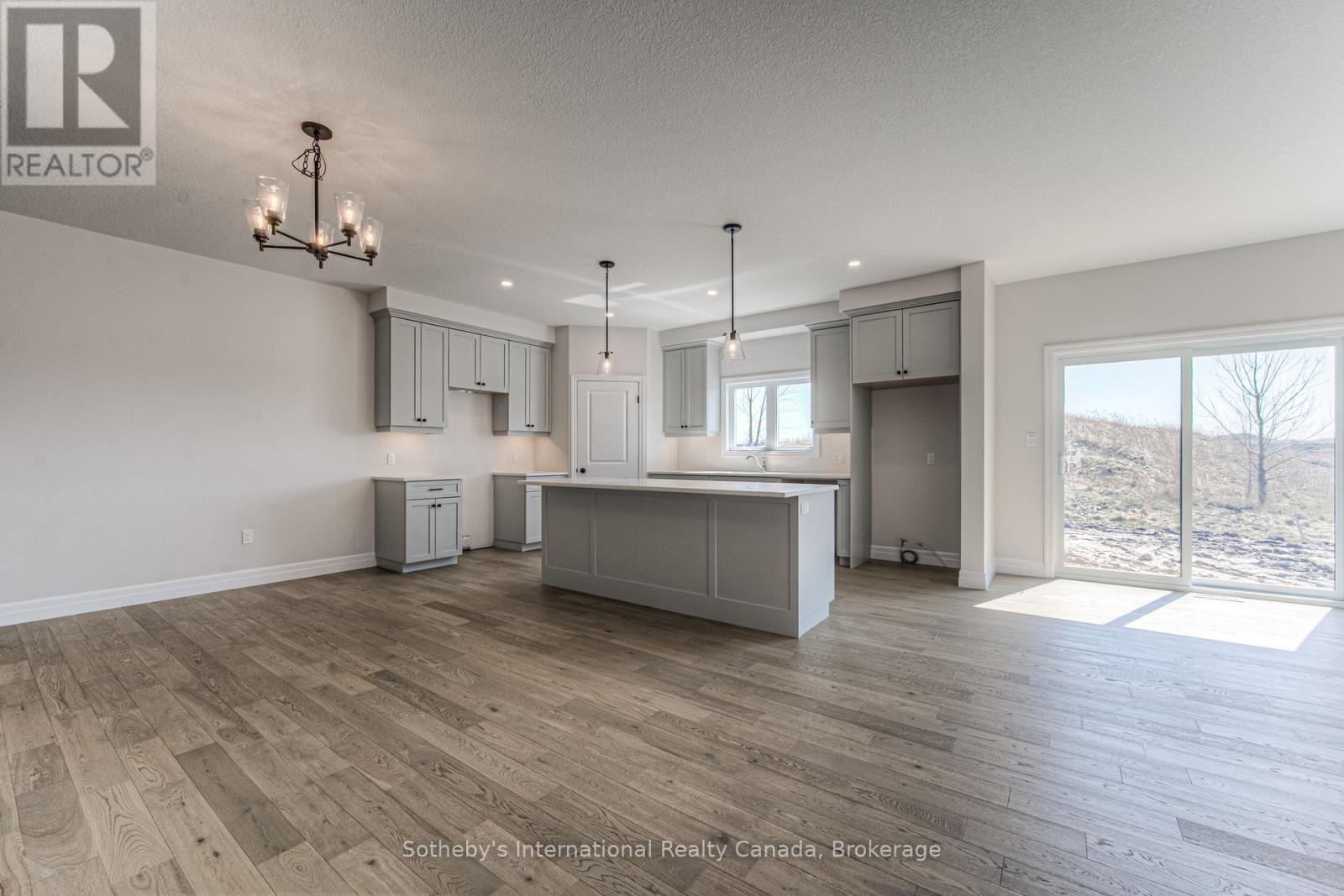 Nestled in Listowel, Ontario, West Woods Estates offers impeccably crafted townhomes designed for luxury, comfort, and everyday functionality, all within close proximity to shopping, restaurants, grocery stores, and excellent local amenities. This stunning 2,100 sq. ft. bungalow-loft townhome features 3 bedrooms and 2.5 bathrooms with a highly desirable layout, including a main-floor primary bedroom complete with a private ensuite, ideal for main-level living, while two generously sized bedrooms on the upper level share a full 4-piece bathroom, perfect for family or guests. Exceptional upgrades enhance both style and convenience, including upgraded asphalt driveway, walkway, and front entrance steps, a professionally graded and sodded lot, a fully drywalled and insulated garage with automatic opener, air conditioning and simplified HRV system, and elegant brick accents on the main-floor exterior elevations. The chef-inspired kitchen is finished with granite countertops, cabinetry extended to the ceiling, and a full pantry, while the interior boasts engineered hardwood and ceramic tile flooring on the main level, cozy carpeting on the stairs and upper floor, modern bathrooms, pot lights throughout key areas such as the great room and kitchen, and 9-foot ceilings on the main floor creating an open and inviting atmosphere. The lower level is future-ready with rough-ins for a basement bathroom, making this home an exceptional opportunity for refined, low-maintenance living in one of Listowel's most sought-after communities. (id:51300)