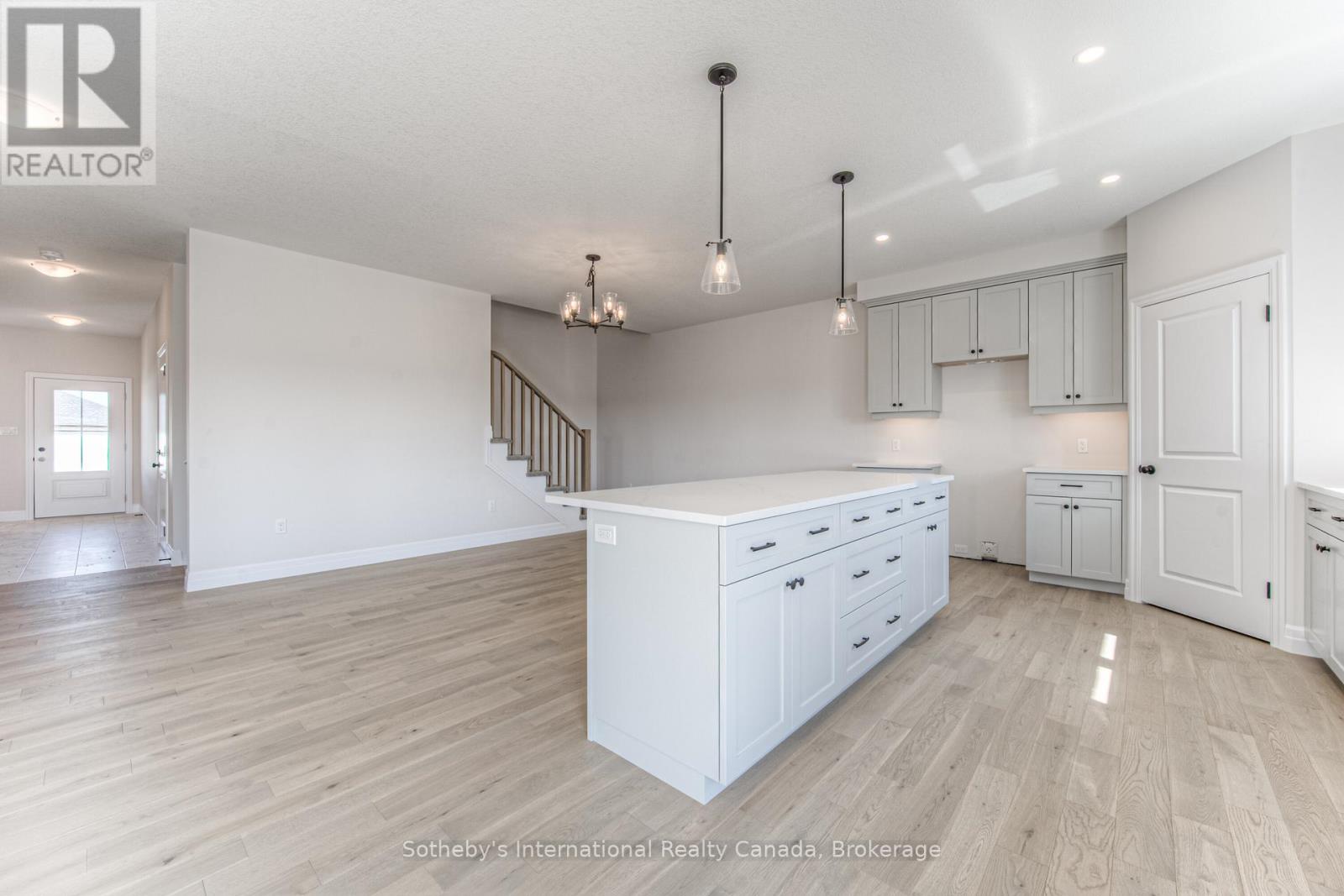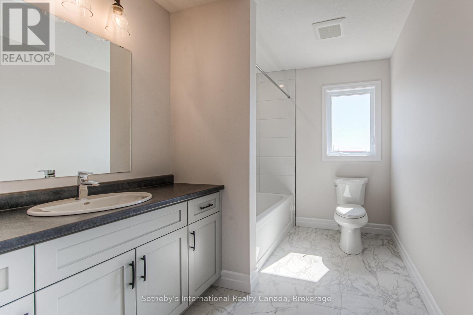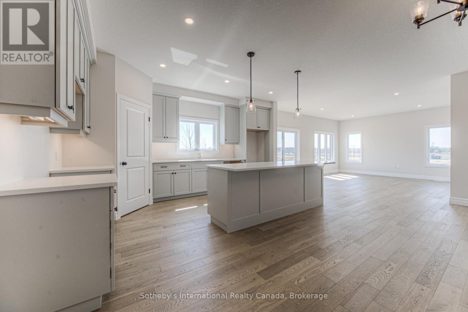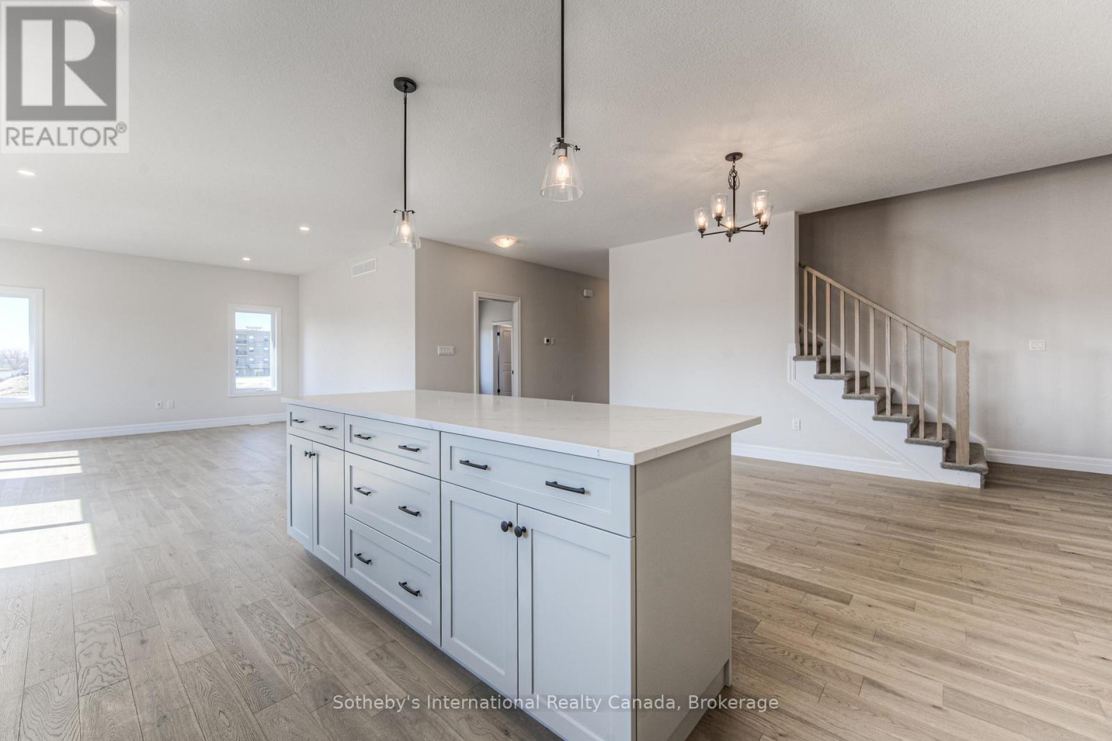 Nestled in Listowel, Ontario, West Woods Estates offers impeccably crafted townhomes designed for luxury, comfort, and everyday functionality, all within close proximity to shopping, restaurants, grocery stores, and excellent local amenities. This stunning 2,100 sq. ft. bungalow-loft townhome features 3 bedrooms and 2.5 bathrooms with a highly desirable layout, including a main-floor primary bedroom complete with a private ensuite, ideal for main-level living, while two generously sized bedrooms on the upper level share a full 4-piece bathroom, perfect for family or guests. Exceptional upgrades enhance both style and convenience, including upgraded asphalt driveway, walkway, and front entrance steps, a professionally graded and sodded lot, a fully drywalled and insulated garage with automatic opener, air conditioning and simplified HRV system, and elegant brick accents on the main-floor exterior elevations. The chef-inspired kitchen is finished with granite countertops, cabinetry extended to the ceiling, and a full pantry, while the interior boasts engineered hardwood and ceramic tile flooring on the main level, cozy carpeting on the stairs and upper floor, modern bathrooms, pot lights throughout key areas such as the great room and kitchen, and 9-foot ceilings on the main floor creating an open and inviting atmosphere. The lower level is future-ready with rough-ins for a basement bathroom, making this home an exceptional opportunity for refined, low-maintenance living in one of Listowel's most sought-after communities. (id:51300)