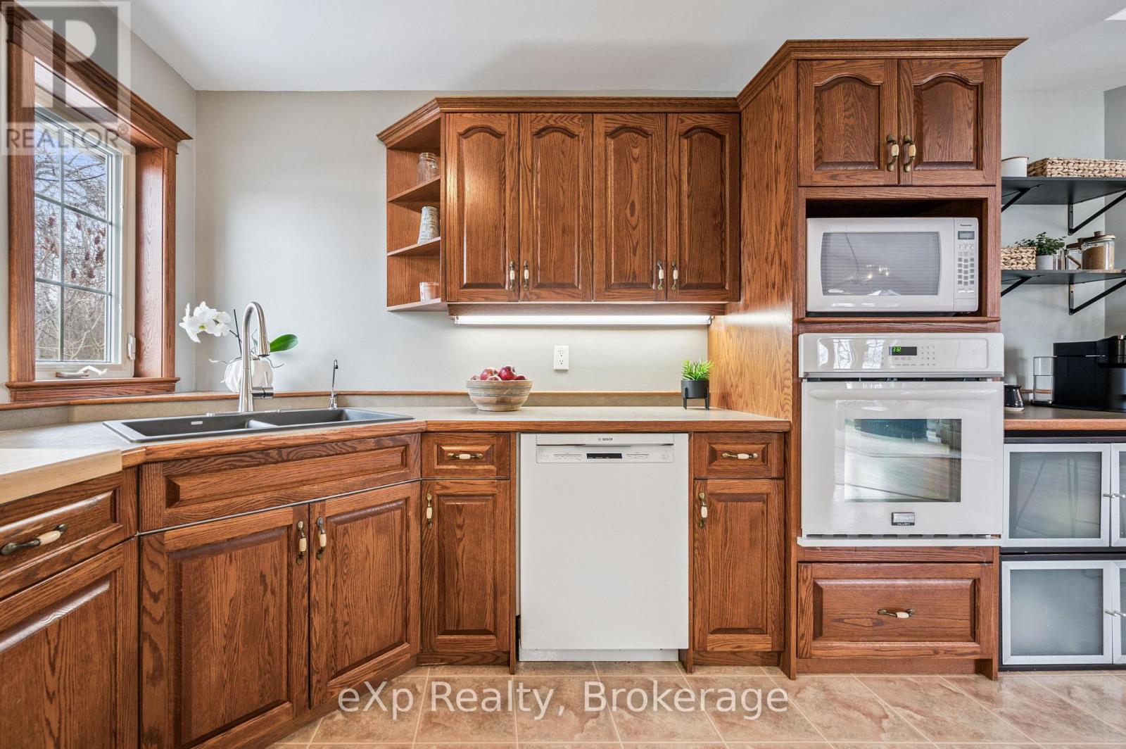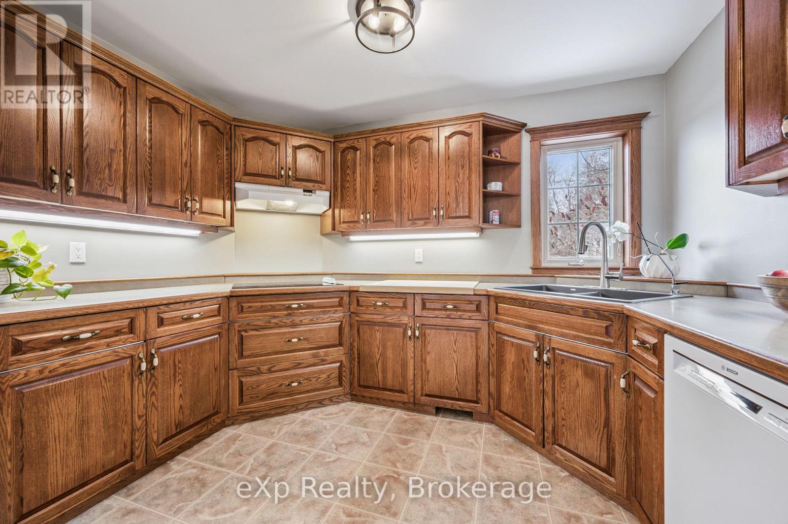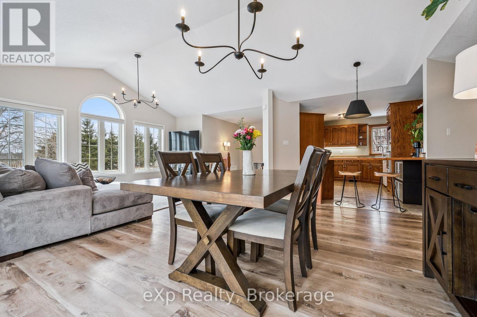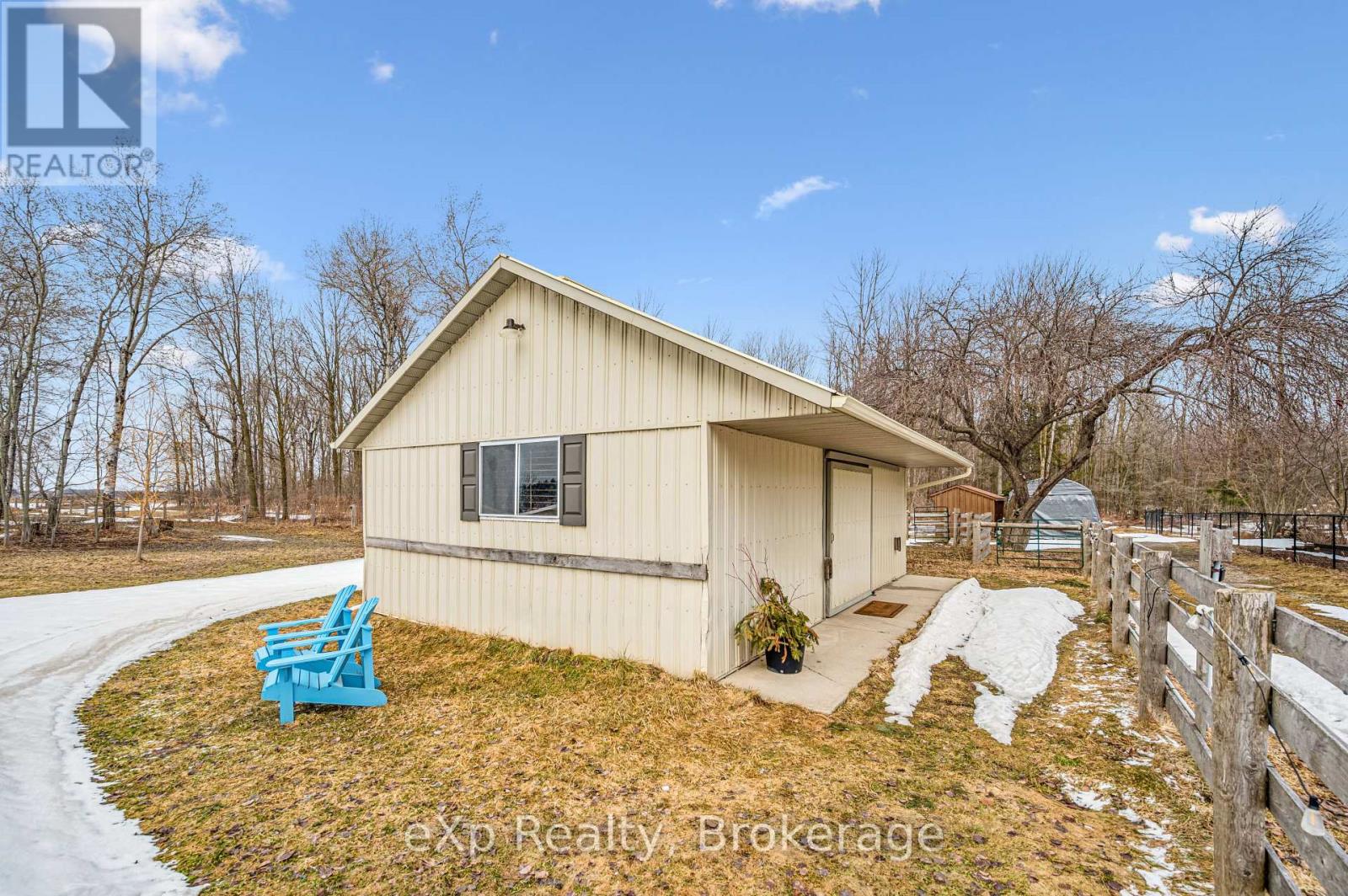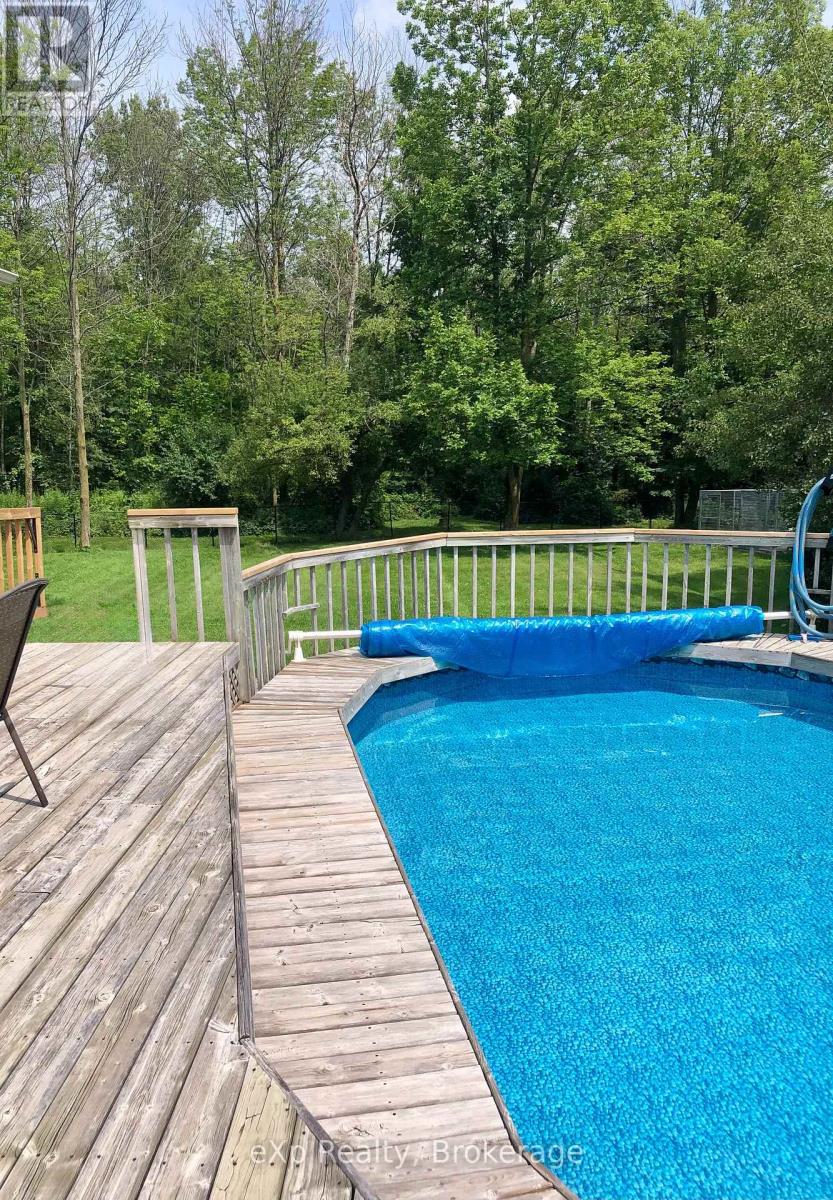 Set on a picturesque 15.28-acre parcel, 6737 Jones Baseline offers an exceptional opportunity to enjoy the best of rural living as a private retreat or hobby farm, all just 5 minutes to groceries and everyday amenities, and a short drive to downtown Fergus and Elora. Located on a quiet dead-end road, the setting is peaceful and private. This quality-built, meticulously maintained home offers over 2,400 sq ft of finished living space. Approx. 3 acres are cleared and manicured with three fully fenced and gated paddocks and a 30 x 20 ft barn with two stalls and storage/feeding room. The remaining ~12 acres offer a mature, scenic forest with groomed, flat trails ideal for walking or riding. The grounds include a garden shed, space for growing your own produce, apple and pear trees, and a mix of maples for beautiful fall colour. Inside, the home features a bright main floor with a vaulted great room with stunning sunset views, open-concept kitchen and dining, and large windows that fill the space with natural light. A walkout from the dining area leads to the deck, ideal for entertaining. The main level offers three bedrooms and a well-appointed bathroom with a generous linen closet. The fully finished basement with a separate entrance adds versatility with two additional bedrooms, a full bathroom, and a cozy fireplace, ideal for extended family or in-law potential. Outside, enjoy an above-ground pool heated by owned solar panels, plus a fully fenced backyard. Updates include bedroom carpets (2025), water filtration and RO systems (2023), central vac (2023), water softener (2023), interior/exterior lighting (2024), driveway resurfaced (2024), new well pump (2024), septic pumped (2025), filters replaced (2026), and UV light (2025). Bell TV and high-speed internet are available. A rare blend of lifestyle, privacy, and convenience. (id:51300)