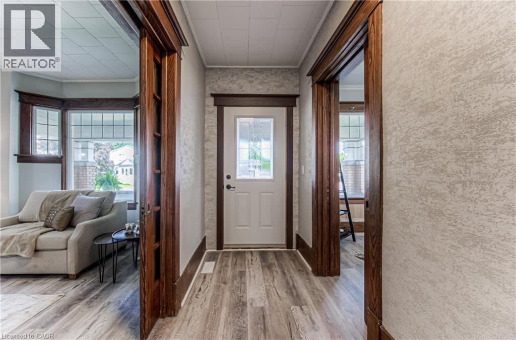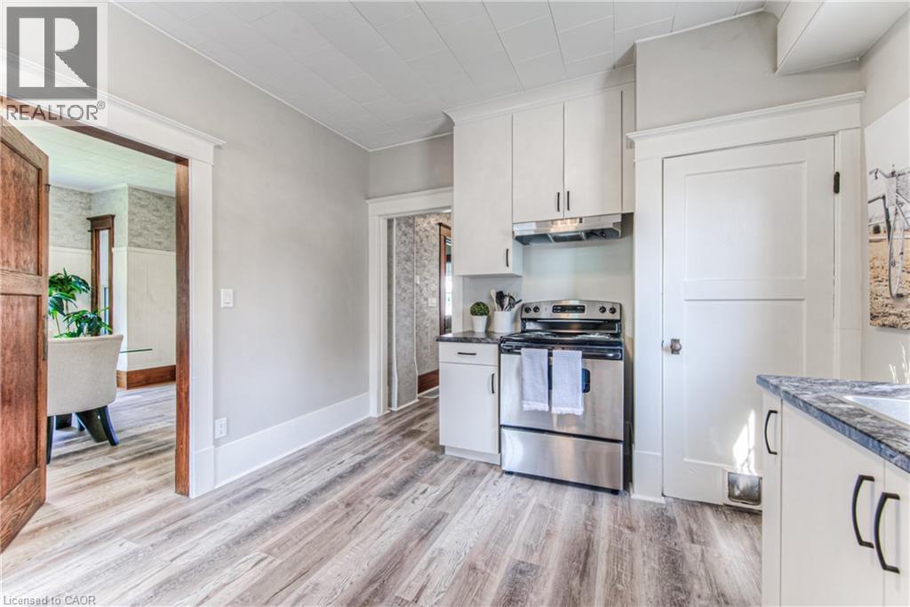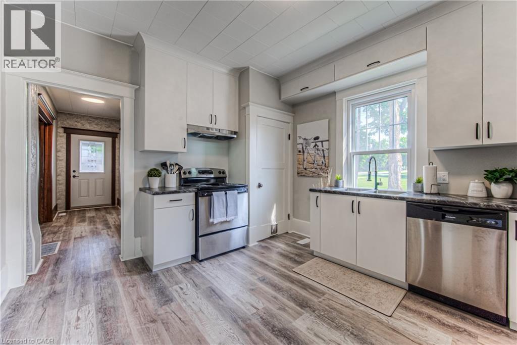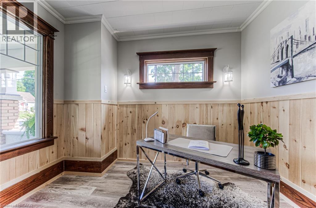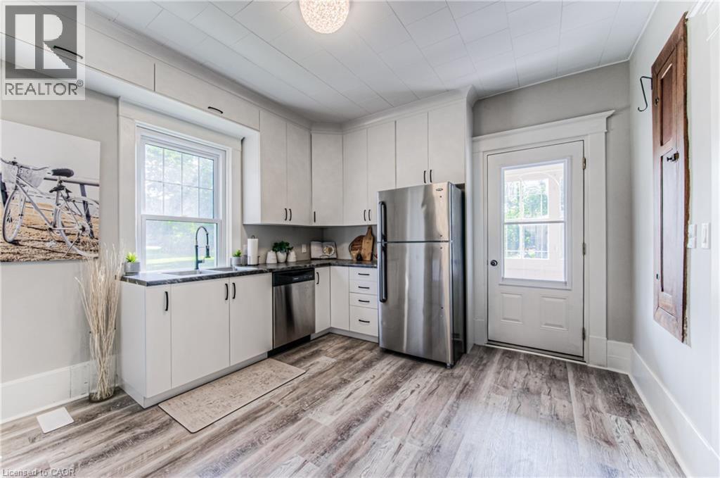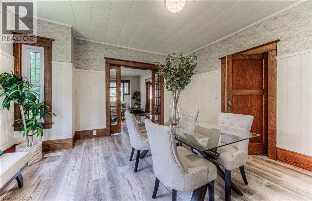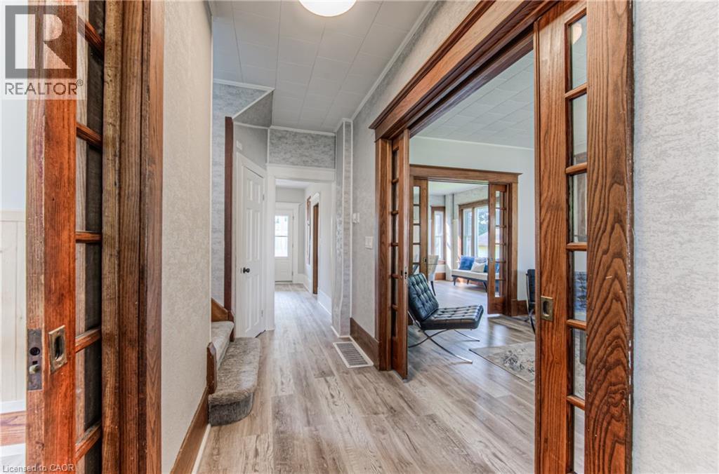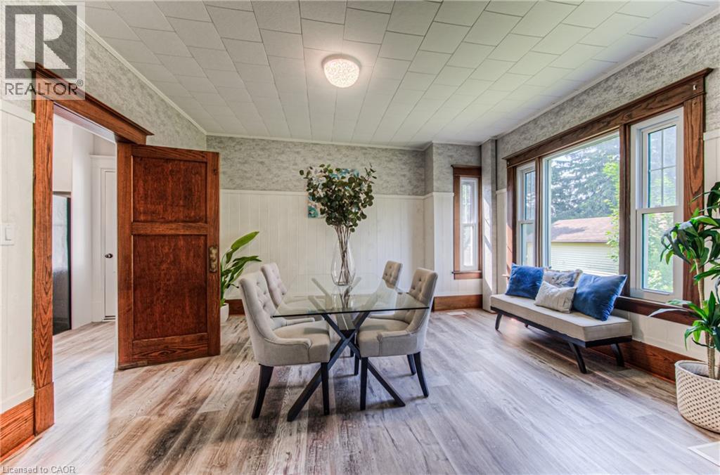 Step into timeless elegance in the charming town of Listowel with this extensively renovated century home. Blending historic character with modern updates, this stunning property offers generous living space, including three spacious bedrooms plus a versatile den, a main floor office, a separate dining and living room, and an expansive finished attic-perfect for an extra bedroom, family room, studio, or additional retreat. Step outside to the inviting covered front porch, ideal for sipping your morning coffee or unwinding with a cold drink on a warm summer evening. Recent upgrades ensure comfort and peace of mind, featuring new laminate plank flooring throughout, a new roof (2022), updated electrical (2022), new washer and dryer, and a beautifully redesigned kitchen complete with new stainless steel appliances. While thoughtfully modernized, the home's original charm shines through with preserved trim details and elegant glass pocket doors, creating a warm and inviting modern rustic feel. The large, unspoiled backyard offers endless possibilities for your personal touch, with ample space for creating your dream outdoor living area. Don't miss your chance to own one of Listowel's most distinctive and character-filled homes. (id:51300)