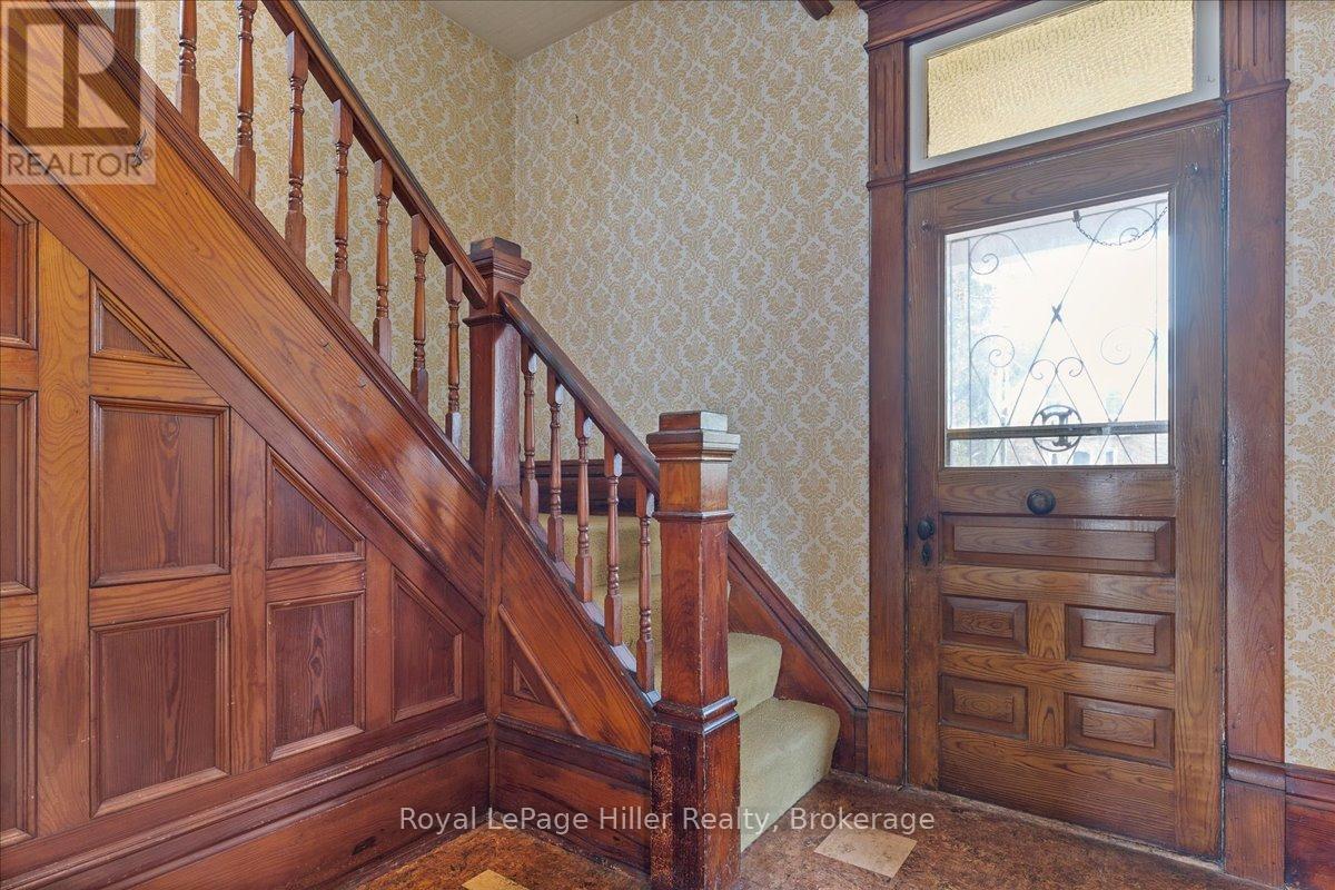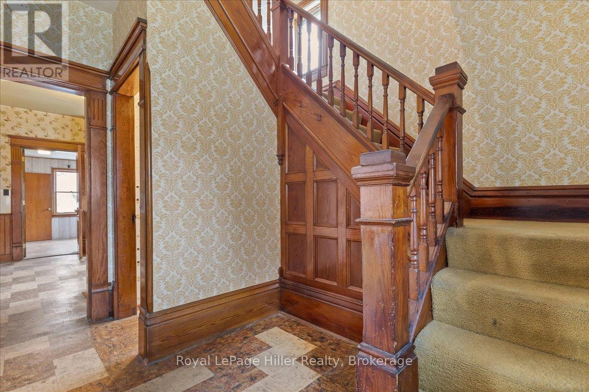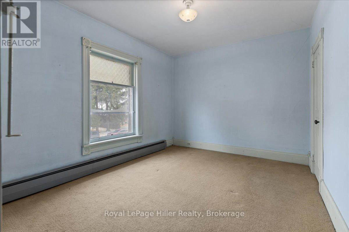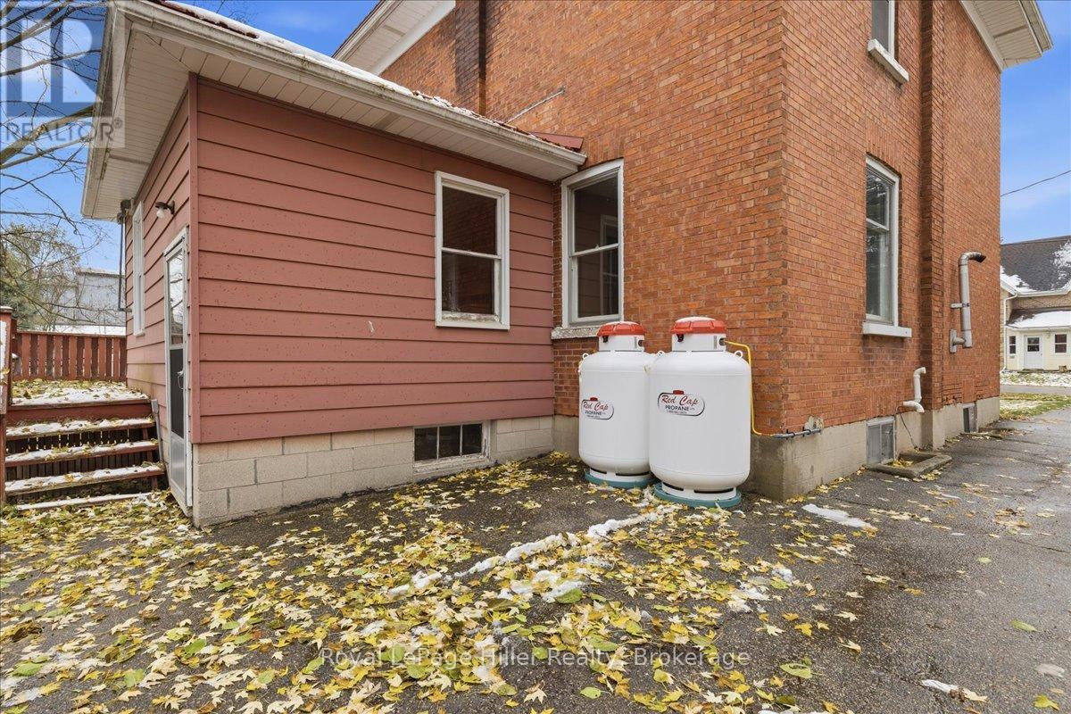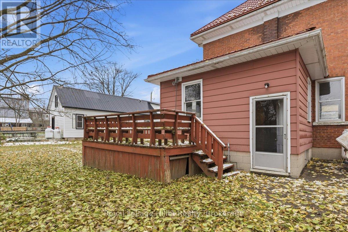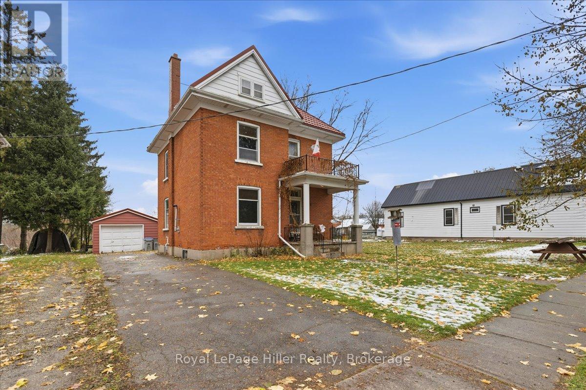 This red brick 2-storey home offers timeless curb appeal, a newer steel roof, large side yard, long private driveway, and a detached garage with a poured concrete floor. With its classic woodwork and solid structure, this property presents an incredible opportunity for buyers looking to personalize and update a home with lasting value. Inside, the main floor showcases living and dining areas rich in original charm. Woodwork, trim, and pocket doors add warmth and character, creating an inviting and welcoming atmosphere. The rear addition offers extra space, ideal for a large mudroom, craft room or the future placement of main-floor laundry. A convenient 2-piece bathroom and a functional kitchen with solid cabinetry complete the main level. Upstairs, you'll find three comfortable bedrooms, each with its own closet, along with a large hallway linen closet featuring built-in storage. A full bathroom serves the upper level, and a secondary staircase provides access to the unfinished attic, offering an excellent opportunity for additional living space or extra storage.The home is built on a concrete foundation, with a rear addition set on a cinderblock foundation. The addition spans the back of the home, with a small section of cinderblocks that would benefit from restoration. The main basement has full ceiling height, it's ideal for storage, a workshop, or future finished space, and includes both a well and cistern. A new on-demand propane tankless water heater, installed in August 2025, efficiently provides radiant heat throughout the home. Combining solid construction, original charm, and room for personalization, this property offers a wonderful opportunity for buyers ready to invest in a home with great bones and endless potential. (id:51300)