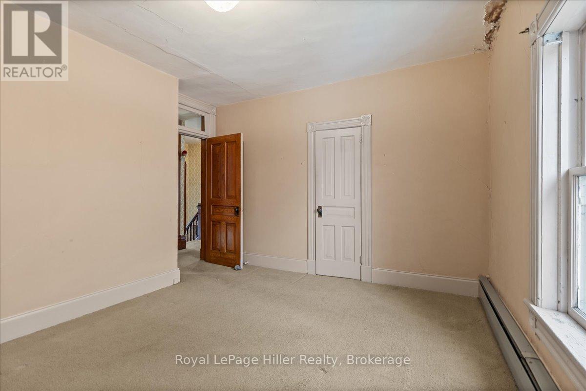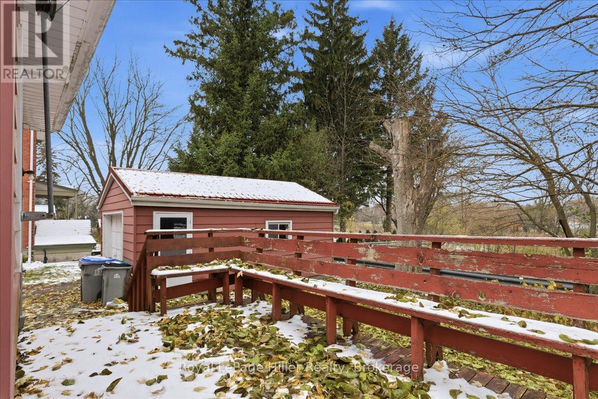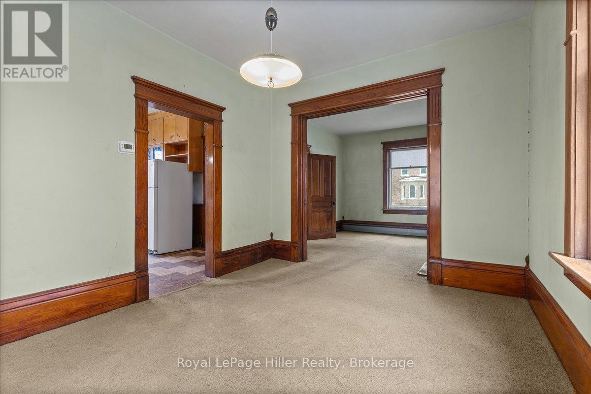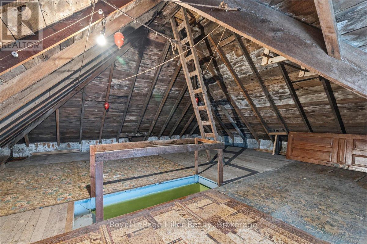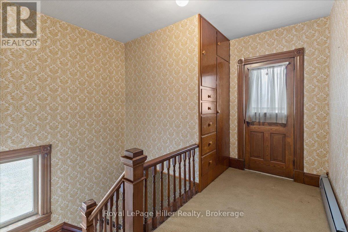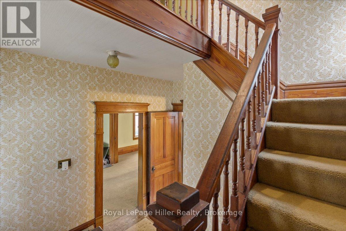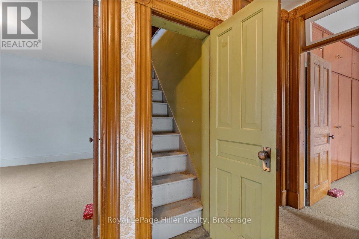 This red brick 2-storey home offers timeless curb appeal, a newer steel roof, large side yard, long private driveway, and a detached garage with a poured concrete floor. With its classic woodwork and solid structure, this property presents an incredible opportunity for buyers looking to personalize and update a home with lasting value. Inside, the main floor showcases living and dining areas rich in original charm. Woodwork, trim, and pocket doors add warmth and character, creating an inviting and welcoming atmosphere. The rear addition offers extra space, ideal for a large mudroom, craft room or the future placement of main-floor laundry. A convenient 2-piece bathroom and a functional kitchen with solid cabinetry complete the main level. Upstairs, you'll find three comfortable bedrooms, each with its own closet, along with a large hallway linen closet featuring built-in storage. A full bathroom serves the upper level, and a secondary staircase provides access to the unfinished attic, offering an excellent opportunity for additional living space or extra storage.The home is built on a concrete foundation, with a rear addition set on a cinderblock foundation. The addition spans the back of the home, with a small section of cinderblocks that would benefit from restoration. The main basement has full ceiling height, it's ideal for storage, a workshop, or future finished space, and includes both a well and cistern. A new on-demand propane tankless water heater, installed in August 2025, efficiently provides radiant heat throughout the home. Combining solid construction, original charm, and room for personalization, this property offers a wonderful opportunity for buyers ready to invest in a home with great bones and endless potential. (id:51300)