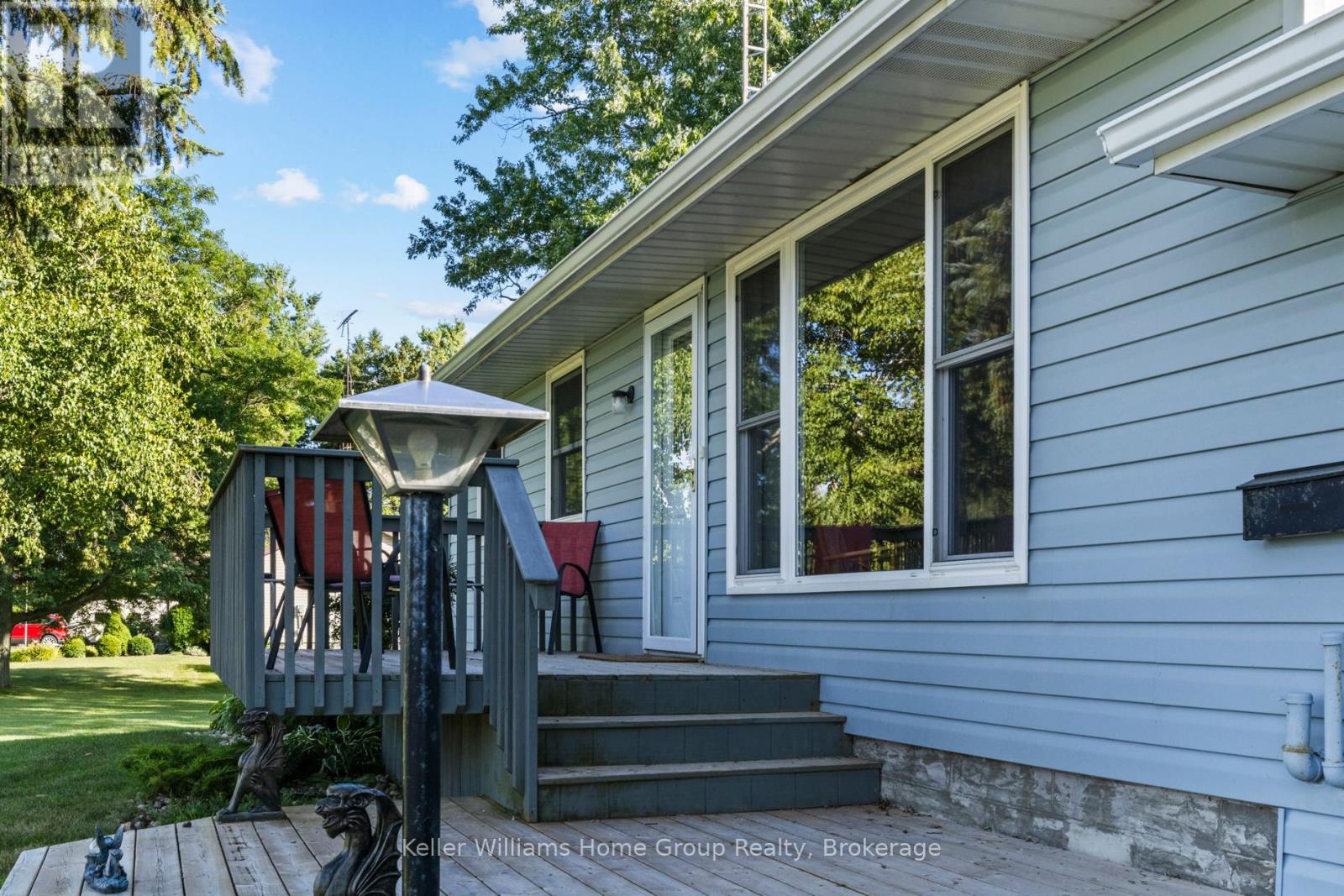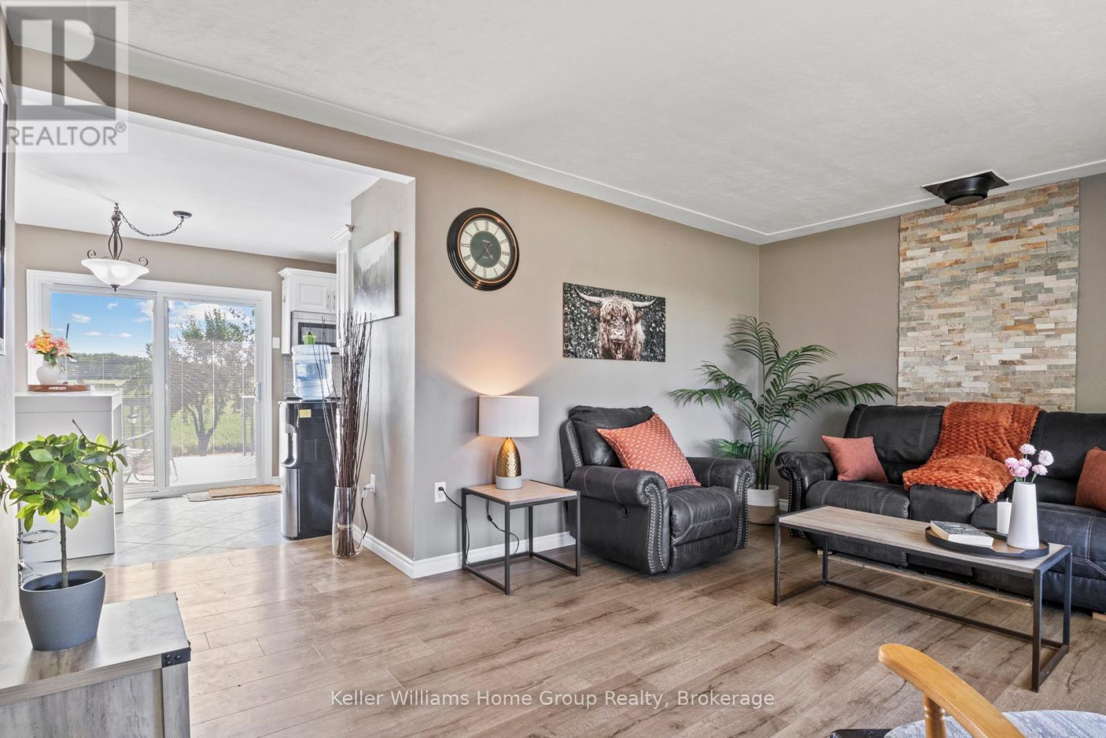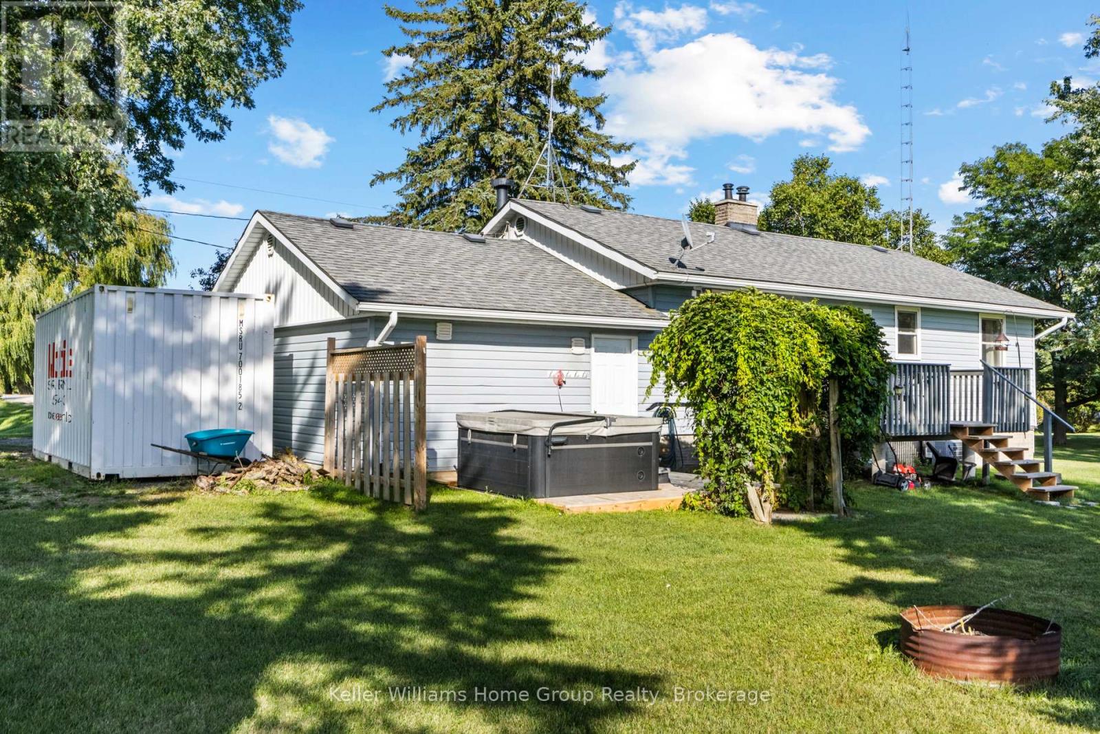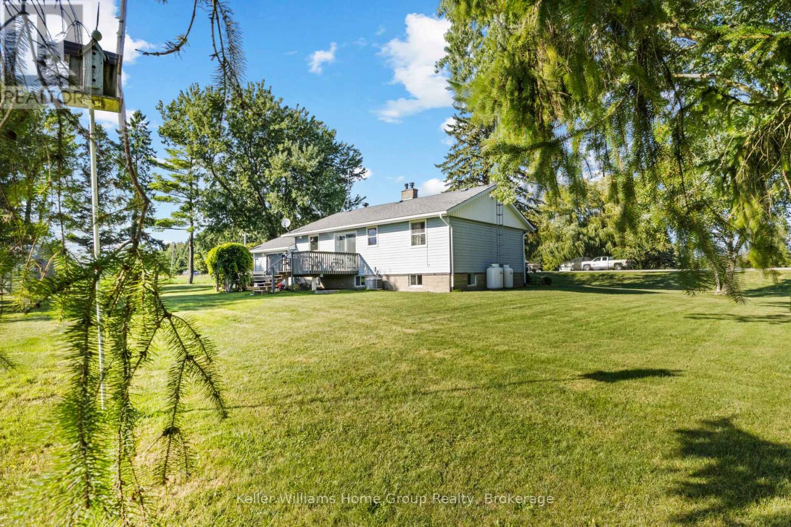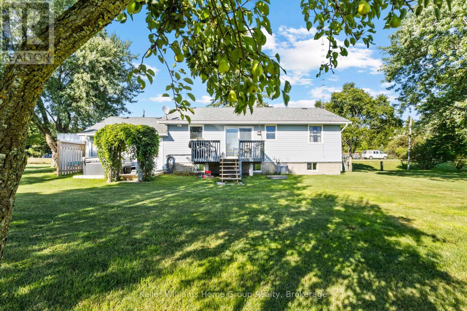 Charming Country Bungalow Minutes from Fergus. Discover this inviting 3 bedroom, 1.5 bath bungalow, perfectly set on a large country lot with sweeping views over open fields. With approximately 1,300 sq ft of finished living space, this home offers a comfortable layout in a peaceful rural setting - just minutes from the convenience of Fergus. The bright main floor features three well proportioned bedrooms and a welcoming living area. Downstairs, the finished basement extends your living peace with a cozy rec room complete with woodstove, laundry facilities, and ample storage. Recent upgrades include a new propane furnace for peace of mind. An attached garage adds everyday convenience and additional utility space. Step outside and enjoy the expansive yard, where a deck and hot tub create the perfect spot for relaxing or entertaining while taking in the countryside views. This property truly offers the best of both worlds: serene country living with quick access to town amenities. (id:51300)