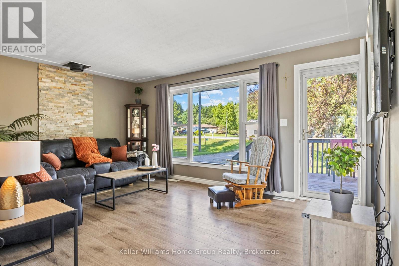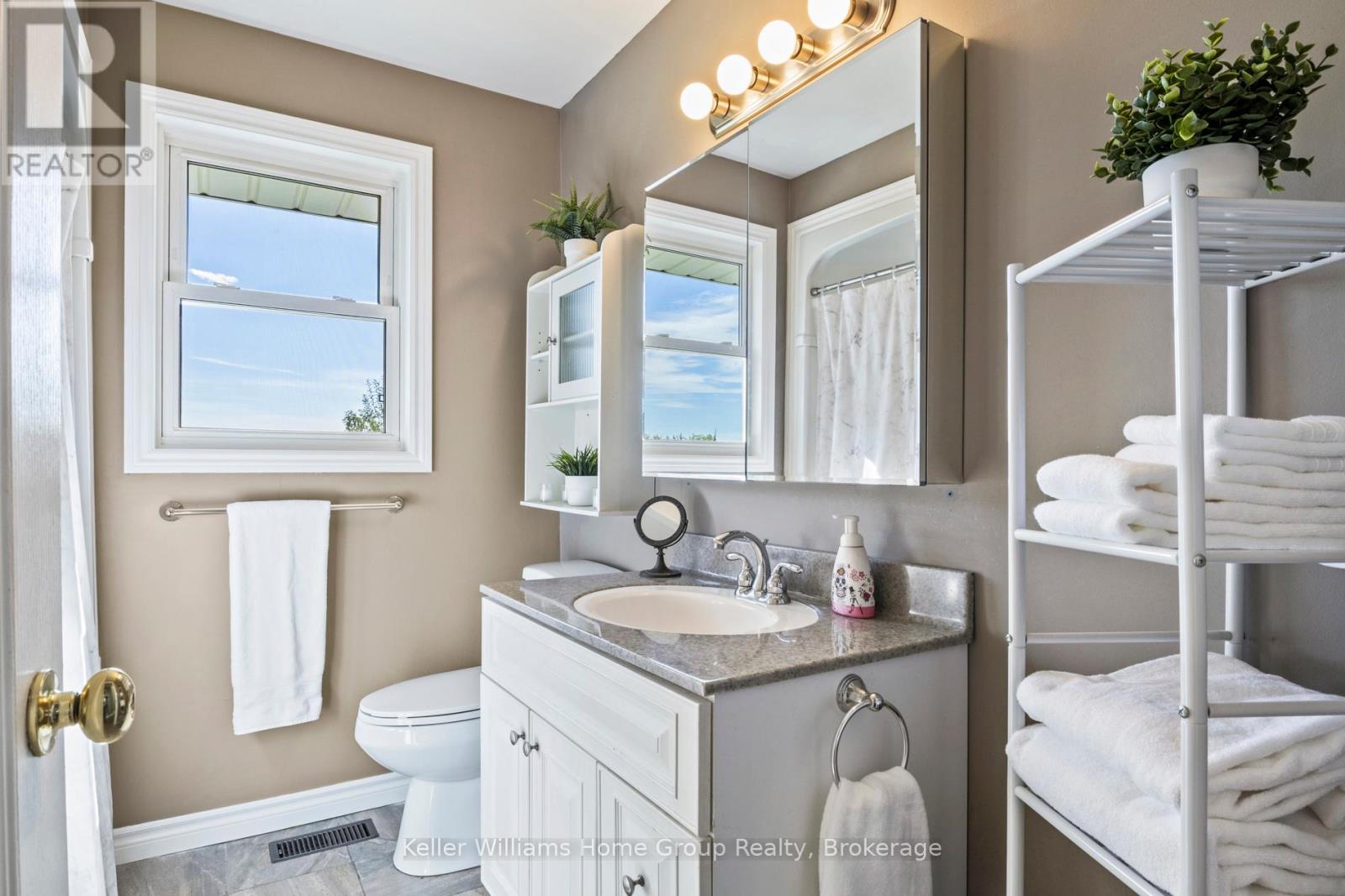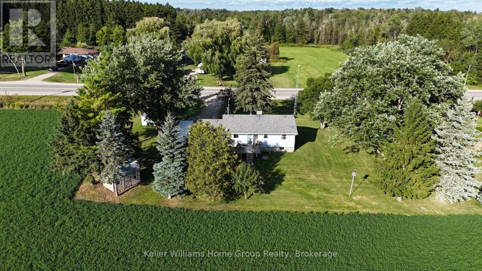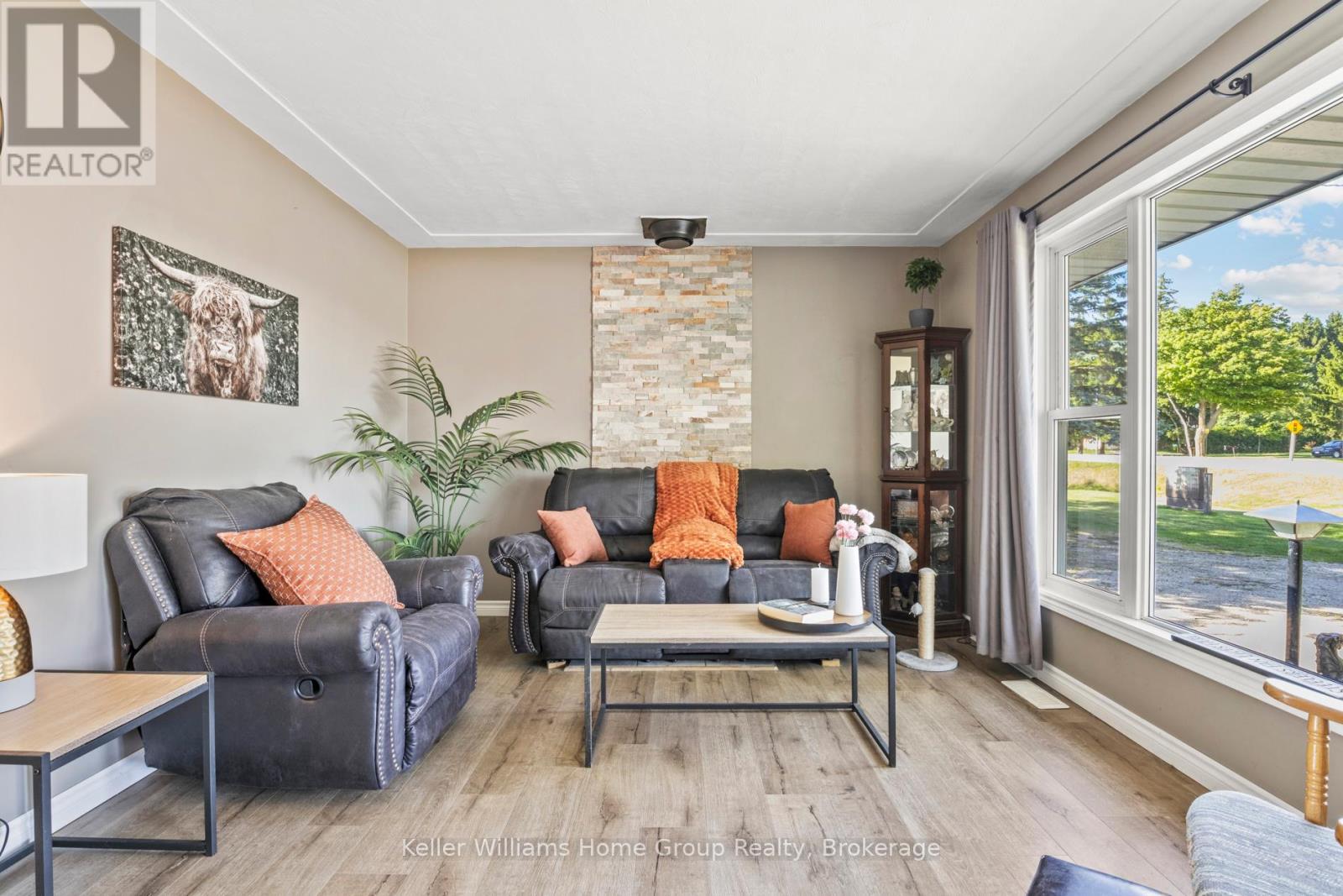 Charming Country Bungalow Minutes from Fergus. Discover this inviting 3 bedroom, 1.5 bath bungalow, perfectly set on a large country lot with sweeping views over open fields. With approximately 1,300 sq ft of finished living space, this home offers a comfortable layout in a peaceful rural setting - just minutes from the convenience of Fergus. The bright main floor features three well proportioned bedrooms and a welcoming living area. Downstairs, the finished basement extends your living peace with a cozy rec room complete with woodstove, laundry facilities, and ample storage. Recent upgrades include a new propane furnace for peace of mind. An attached garage adds everyday convenience and additional utility space. Step outside and enjoy the expansive yard, where a deck and hot tub create the perfect spot for relaxing or entertaining while taking in the countryside views. This property truly offers the best of both worlds: serene country living with quick access to town amenities. (id:51300)