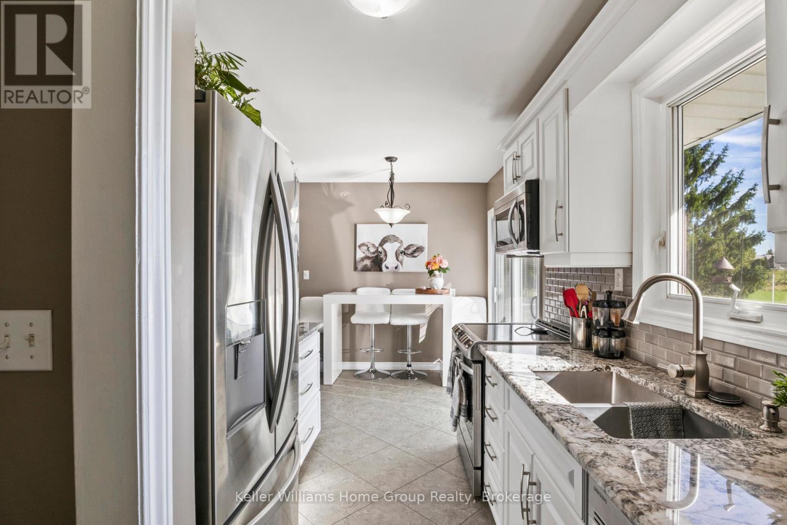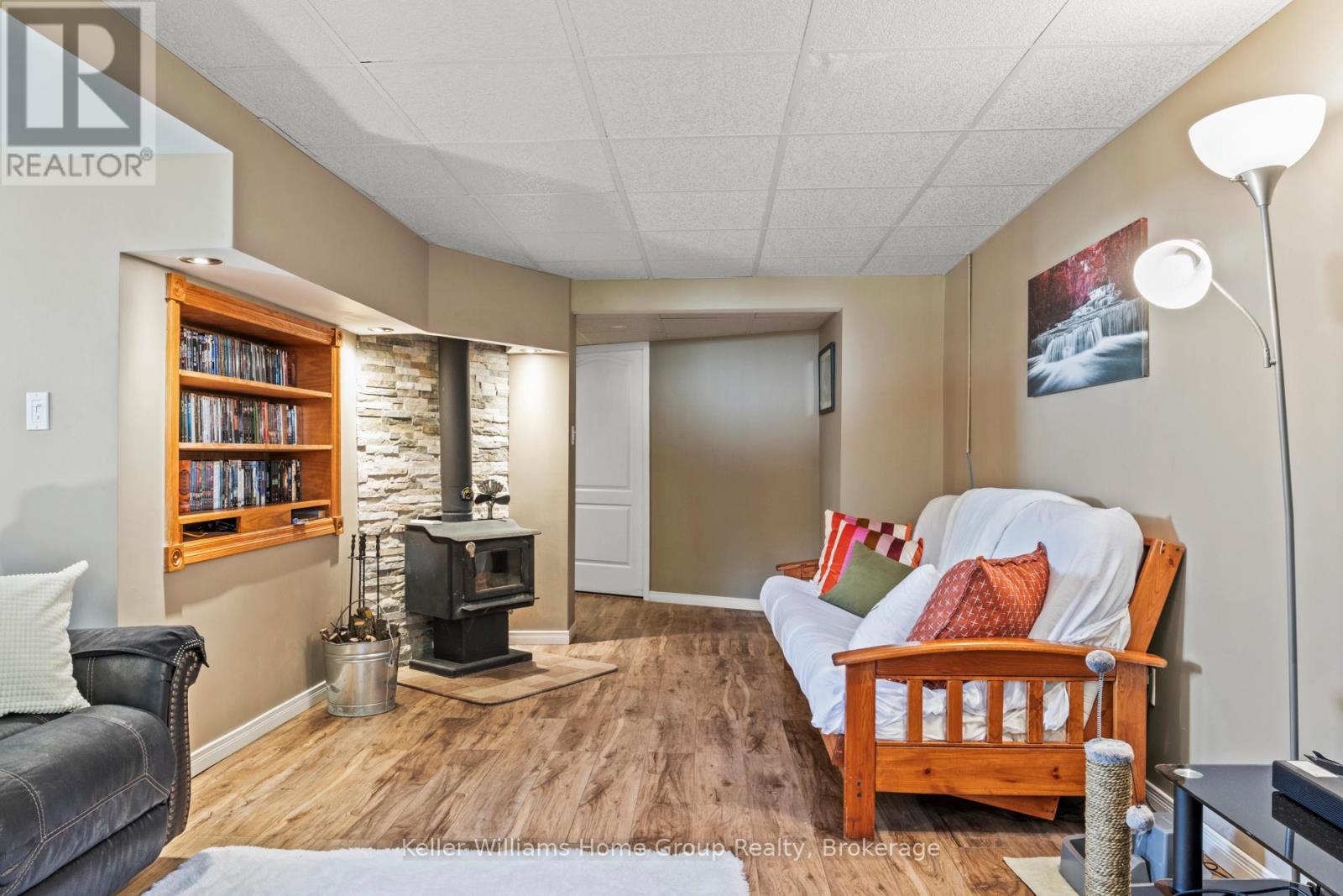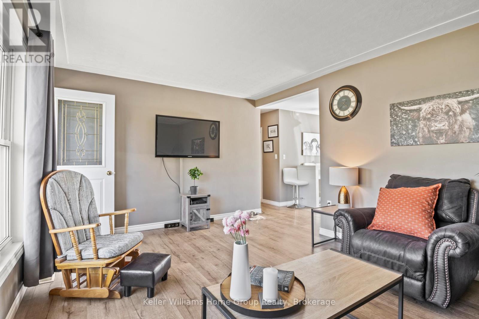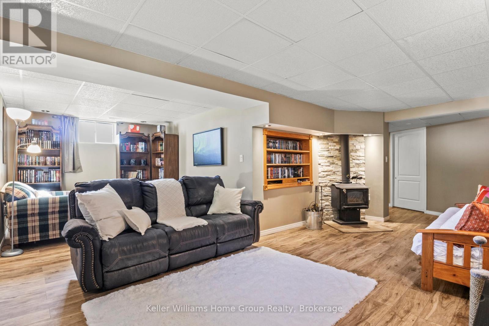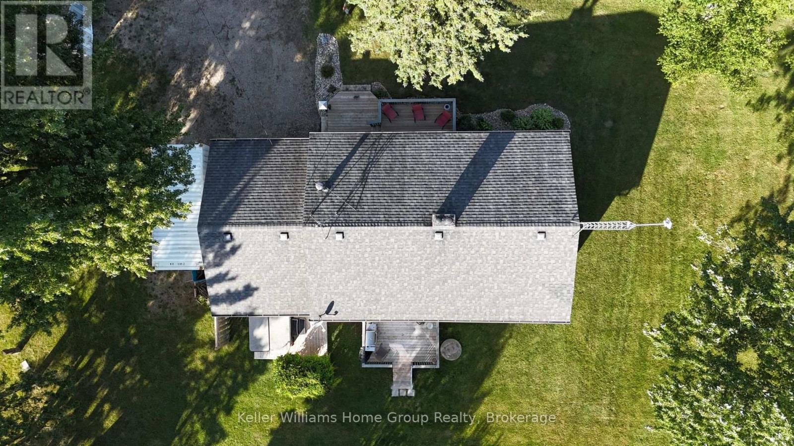 Charming Country Bungalow Minutes from Fergus. Discover this inviting 3 bedroom, 1.5 bath bungalow, perfectly set on a large country lot with sweeping views over open fields. With approximately 1,300 sq ft of finished living space, this home offers a comfortable layout in a peaceful rural setting - just minutes from the convenience of Fergus. The bright main floor features three well proportioned bedrooms and a welcoming living area. Downstairs, the finished basement extends your living peace with a cozy rec room complete with woodstove, laundry facilities, and ample storage. Recent upgrades include a new propane furnace for peace of mind. An attached garage adds everyday convenience and additional utility space. Step outside and enjoy the expansive yard, where a deck and hot tub create the perfect spot for relaxing or entertaining while taking in the countryside views. This property truly offers the best of both worlds: serene country living with quick access to town amenities. (id:51300)