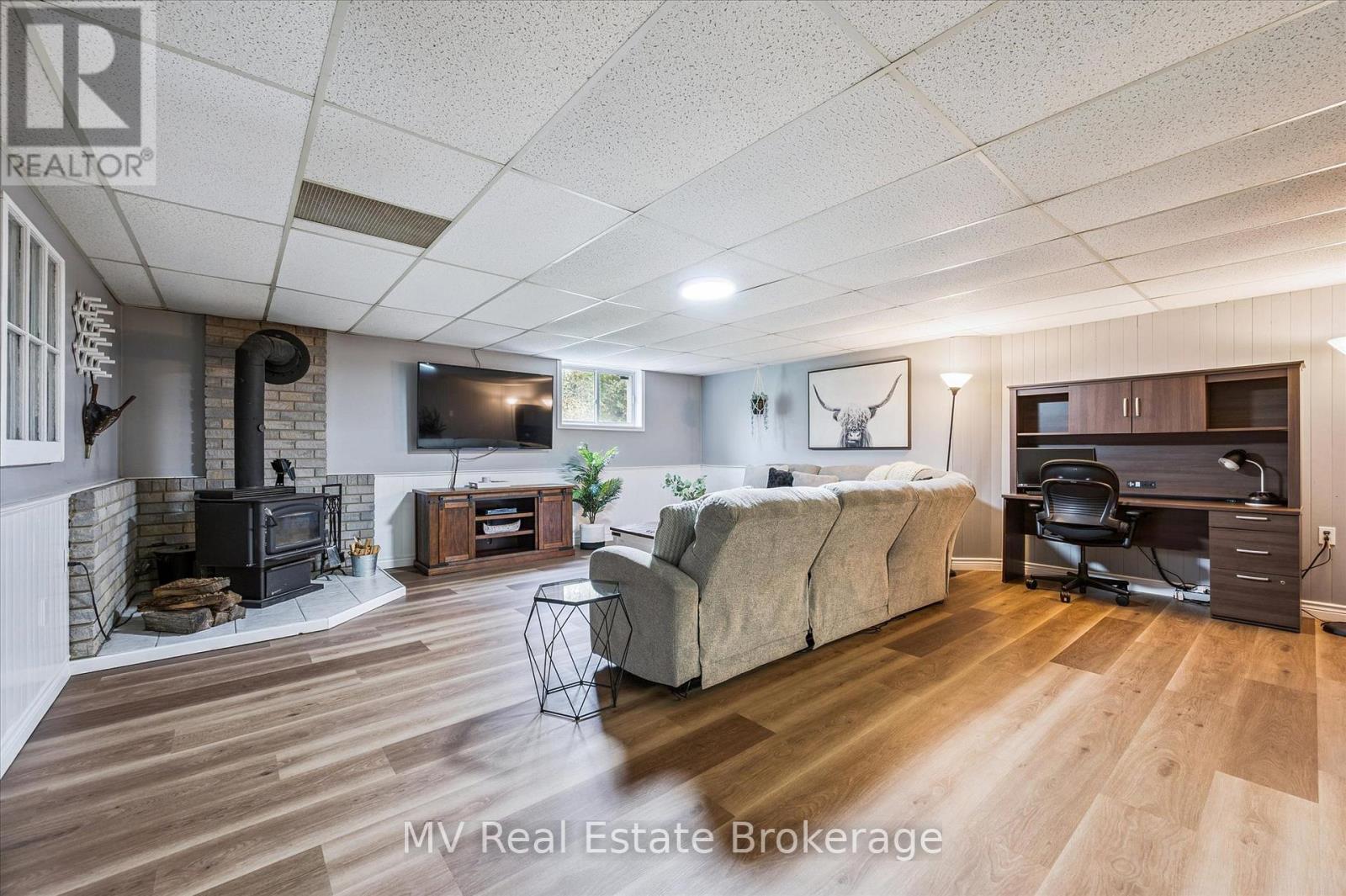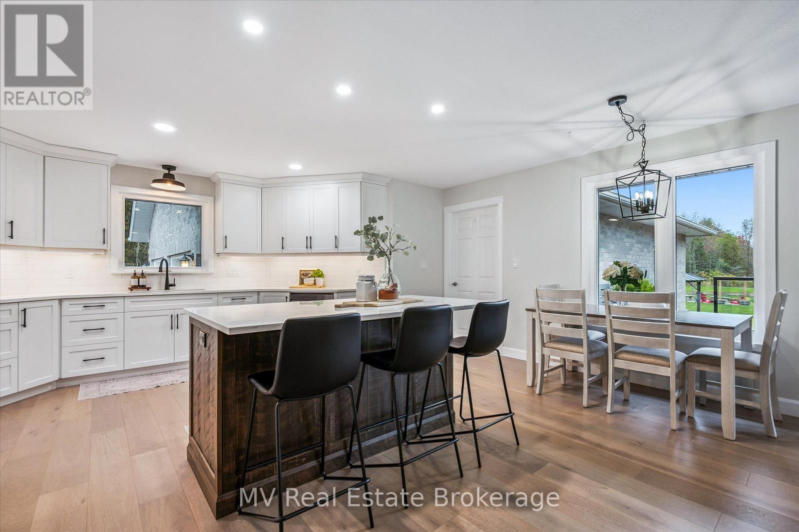 A few minutes from Fergus and Elora, this fully updated bungalow offers the kind of country calm people dream about. Set on 3.35 acres of mature trees, walking trails, and a spring-fed pond, it's a place where mornings start with birdsong and evenings settle in around the fire. Inside, the home has been thoughtfully modernized-custom Mennonite kitchen, wide-plank flooring, updated windows and doors, refreshed baths-creating a bright, easygoing main level with room for family and guests. Four bedrooms and 3.5 baths keep life comfortable, while the lower level adds a cozy woodstove, games area, custom bar, and a whole separate living space with its own entrance for multi-generational living or weekend visitors. Step outside to a multi-layered deck, a flagstone firepit, and your own private dock overlooking the pond. The oversized 3+ car garage with workshop and direct basement access is ideal for hobbyists or anyone needing extra space. With fibre internet available, major mechanical updates complete, and an accessory apartment offering flexibility, this property blends nature, privacy, and modern comfort. (id:51300)