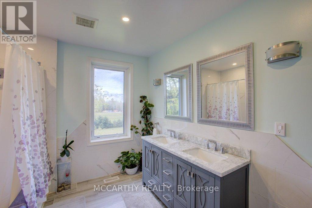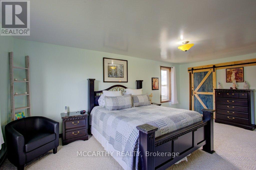 133 acre Farm with beautiful Brick well Maintained 2.5 storey House, Good Bank Barn and large Driving Shed with workshop. Barn is 52 x 60ft, with 30x 36ft add on, Driving Shed 40 x 44 ft with gravel floor and 30 x 40 ft Workshop with concrete floor and insulated and heated. 80 Acres in hay and pasture. Fenced for cattle. Bank barn is set up for Cattle, feeding trough down the middle of the barn. Enter the home off a large wrap around deck. Plenty of room to entertain. Walk into the Family room with tile floor, large windows and cozy wood stove. Has hook up for laundry if desire to have main floor laundry. Relax in the large Living room with Stone hearth with wood mantel over a wood fire place. Plenty of room for your oversized couch and chairs. Formal Dining room, has high ceilings and room for table for 14. Tall windows bring in the natural Light. Kitchen has updated countertops, farmhouse sink with window overlooking the expansive deck. Plenty of room for Family dinners and entertaining. Pretty 2.5 story House has Large Primary Bedroom on second Floor, with 9ft high ceilings, broadloom, His and Hers closets with pretty barn door style doors. Second Bedroom is large with lots of natural light from 2 large windows. Windows are updated. 3rd floor is a finished attic, with stairs for easy access, has three skylights for natural lighting . Wood floors and is heated. Use for 3rd extra bedroom, rec room , play room, office, craft, quilt room, Man cave or storage. This farm is waiting for its next family to enjoy the peaceful location. Pond and beautiful gardens. Pretty lawns for running and playing. Property is conveniently located beside an unopened road allowance and goes all the way back to have a frontage on another municipal road. So many opportunities for a Farmer, Hobby Farm, country Homestead. Farming or recreation this is a pretty Farm with easy commute to Ski hills Come and see this beautiful property It is a must see! (id:51300)