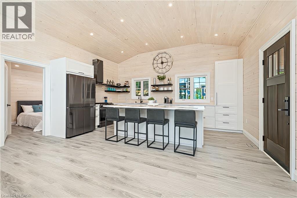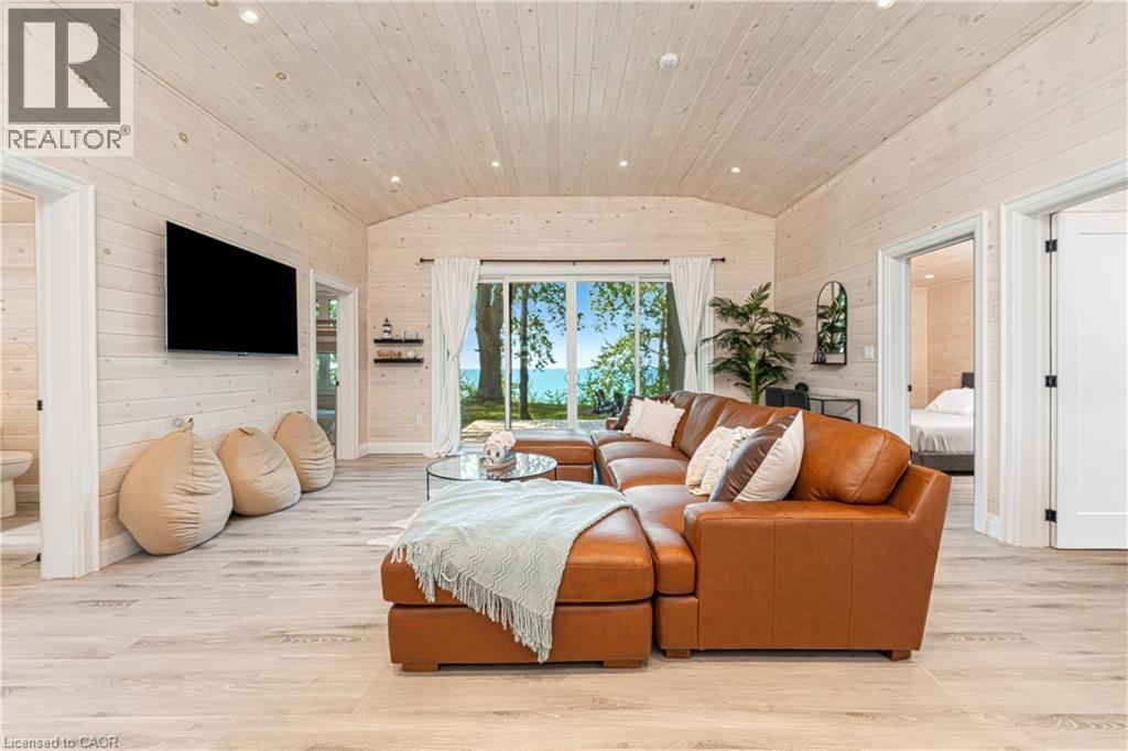 STUNNING LAKEFRONT COTTAGE COMPLETELY REBUILT IN 2023, CONVENIENTLY NESTLED BETWEEN GRAND BEND AND BAYFIELD, TURN-KEY PARADISE AWAITS! Backing directly onto Lake Huron between Grand Bend and Bayfield, this breathtaking 4 season cottage is the epitome of luxury and easy living. Vacation time is made simple here where everything in the cottage is brand new. Designed for the ultimate experience combined with low-maintenance ownership, this 3-bedroom retreat features jaw-dropping sunsets and endless activities. There’s even a 12x10 foot fully insulated Bunkie (also built in 2023) perfect for the kids or weekend visitors along with a tree house play area and custom climbing centre. Back inside there’s 2 bathrooms, laundry and a luxurious kitchen featuring Cambria countertops, black stainless steel appliances, breakfast counter and beautiful white cabinetry with pot drawers and built in organization. The entire interior of this home is cladded in beautiful white-washed tongue and groove pine and every inch of the space exudes elegance and comfort. The stunning cathedral ceilings lead your eyes to mind-blowing lake-views. Outside, you’ll enjoy a large deck, fire pit, outdoor shower and steps down to your private beach with new double seawall, there’s lookout areas for endless relaxation and the best beach & water recreation you could imagine. Furniture is negotiable, making this a true turn-key opportunity. Seize the chance to own your slice of paradise today! Cottage originally built in 1954 but rebuilt in 2023. (id:51300)
