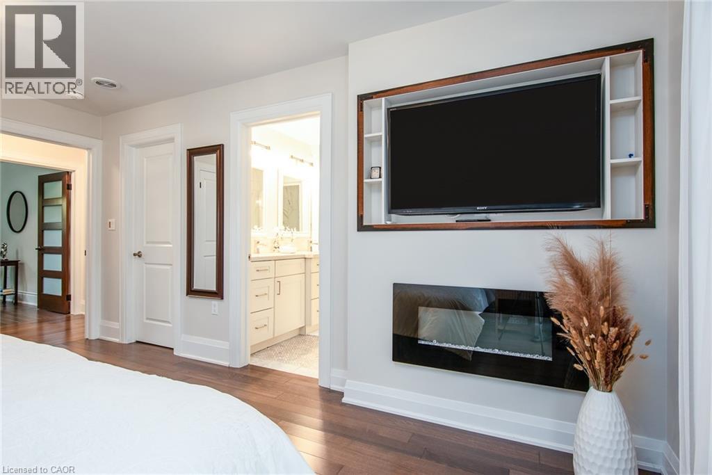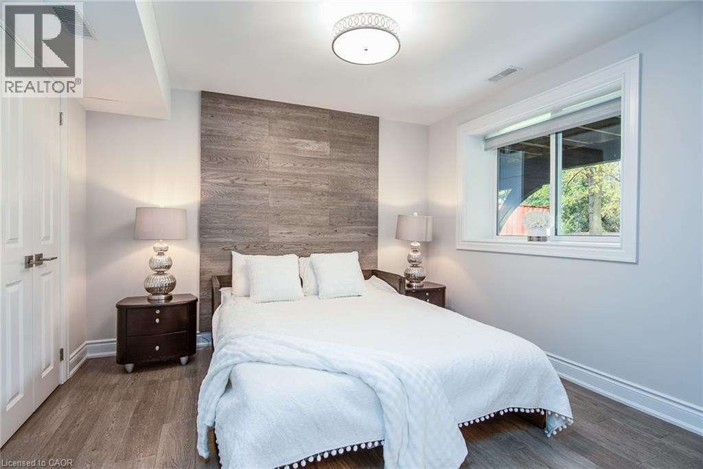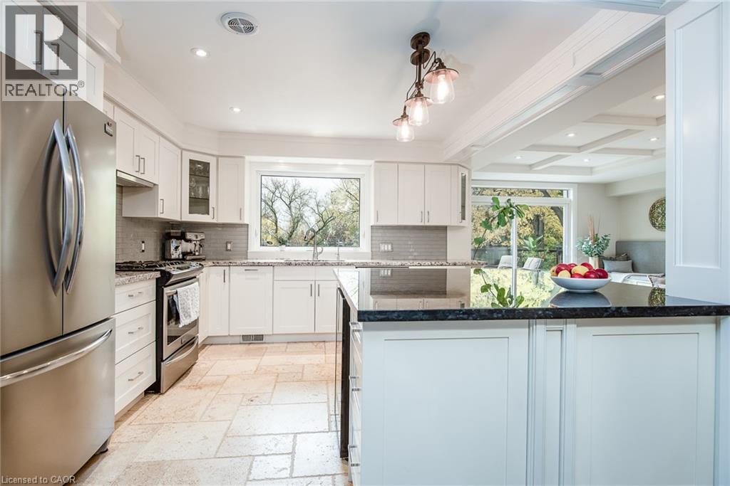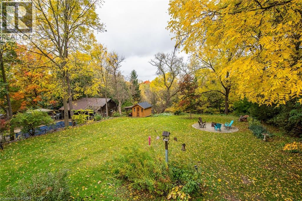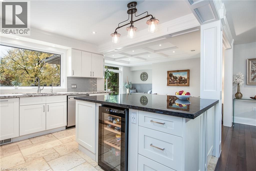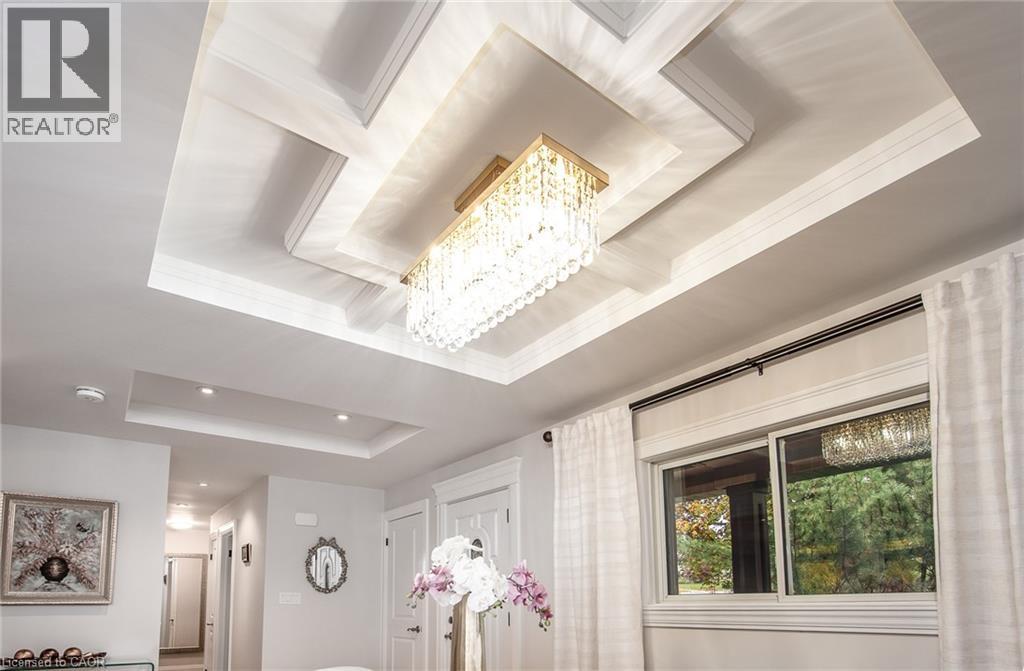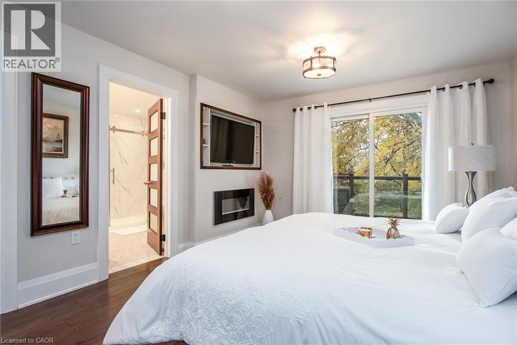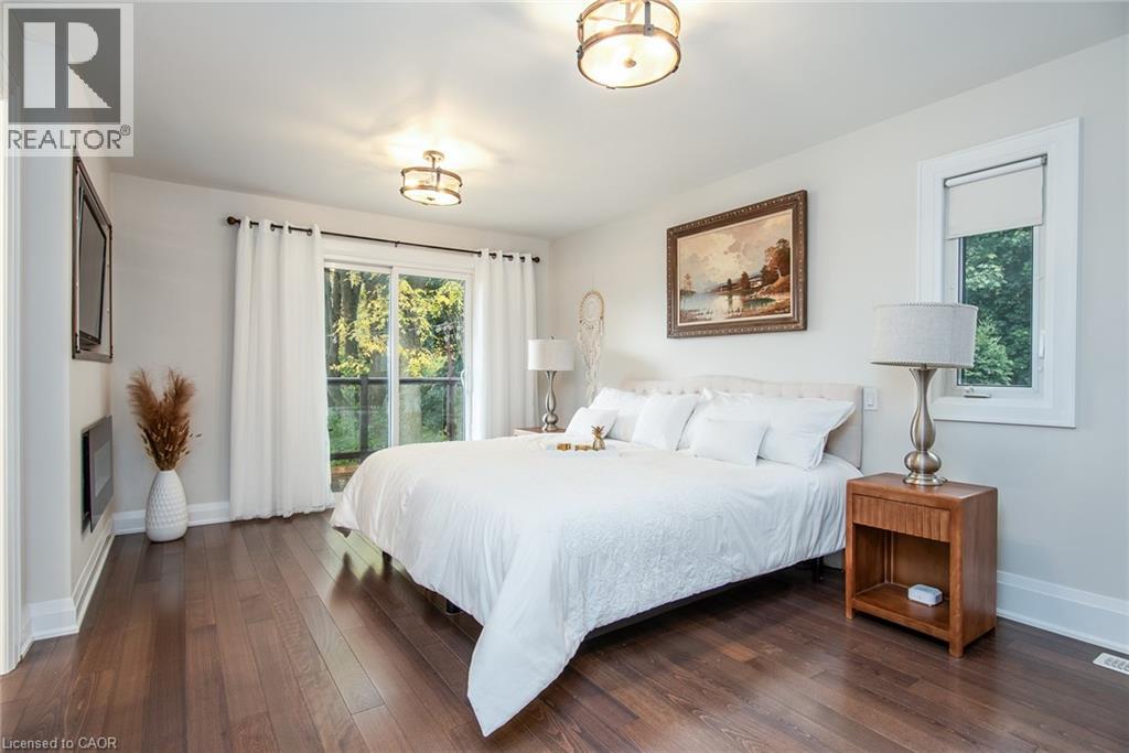 Custom-built dream home with a stunning view and a truly unique layout! Wake up to the peaceful beauty of a tree canopy on a pool-sized lot backing onto a mature forest. Whether you love to entertain or simply enjoy the serenity of nature, this home offers the best of both worlds. Boasting 4 spacious bedrooms and 5 bathrooms (3 with heated floors), this expansive walk-out bungalow provides flexible living with two living areas and an optional separate office space. Cozy up by one of two fireplaces, located in the recreation room and primary bedroom. The welcoming entrance leads to an open-concept main floor featuring beautifully detailed ceilings, hardwood floors throughout, and large glass doors that open to the balcony, offering unobstructed views of your private backyard oasis. The stylish kitchen/dining area showcases a large island, abundant cabinetry, and granite countertops. The dreamy primary bedroom features a spacious walk-in closet and additional closet, a luxurious 5-piece ensuite with a freestanding tub, and glass doors leading to a private balcony. The fully finished basement is perfect for multigenerational living or guest accommodations, complete with a large living room, 3-piece bathroom, powder room, laundry, kitchenette, bedroom, and spacious dining area with walk-out to the patio. Enjoy morning coffee on the front porch or host summer BBQs with ease. The oversized garage is insulated, drywalled, and painted, with a driveway for up to 7 vehicles. Metal roof installed in 2023 with lifetime guarantee. Located in a desirable neighbourhood within walking distance to schools, parks, trails, and playgrounds. With three separate entrances, this home featuring an in-law area is ideal for generational living or a home-based business. Nestled in the charming village of Ayr, just a short drive to Kitchener/Waterloo and minutes to Hwy 401, this character-filled property sits on just over half an acre — a rare find that blends space, style, and lifestyle. (id:51300)