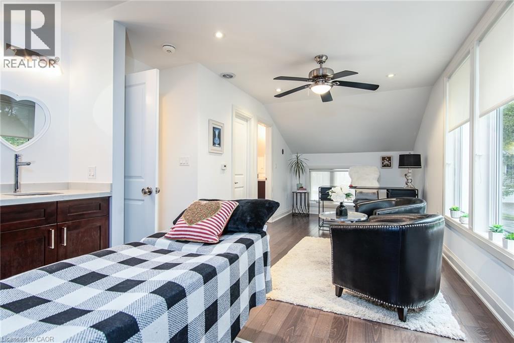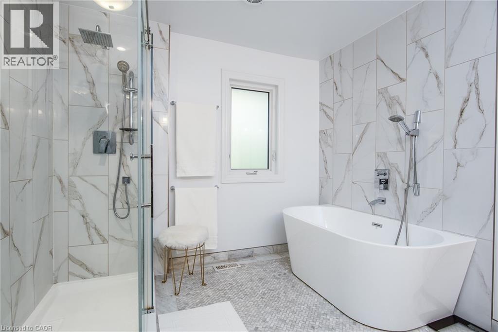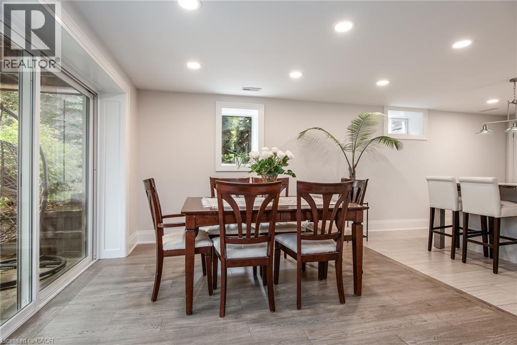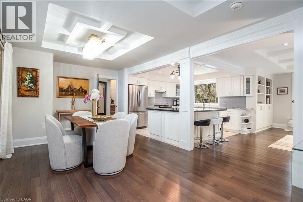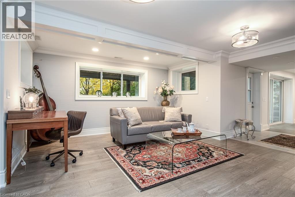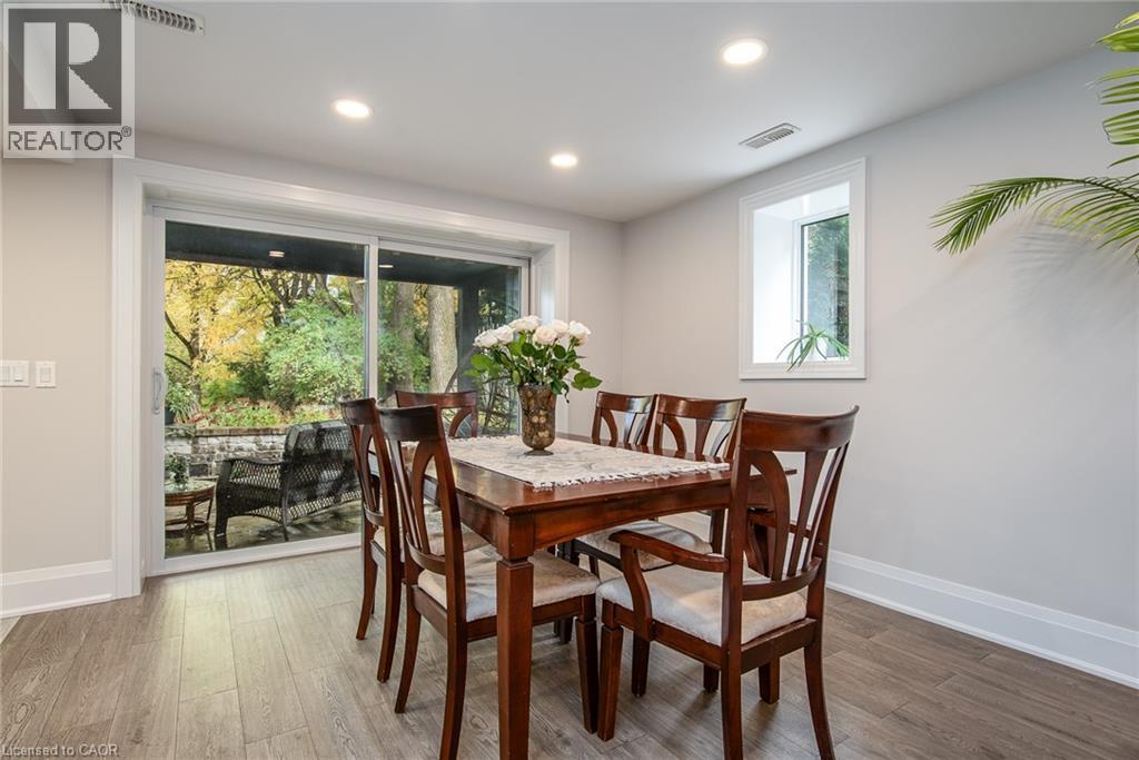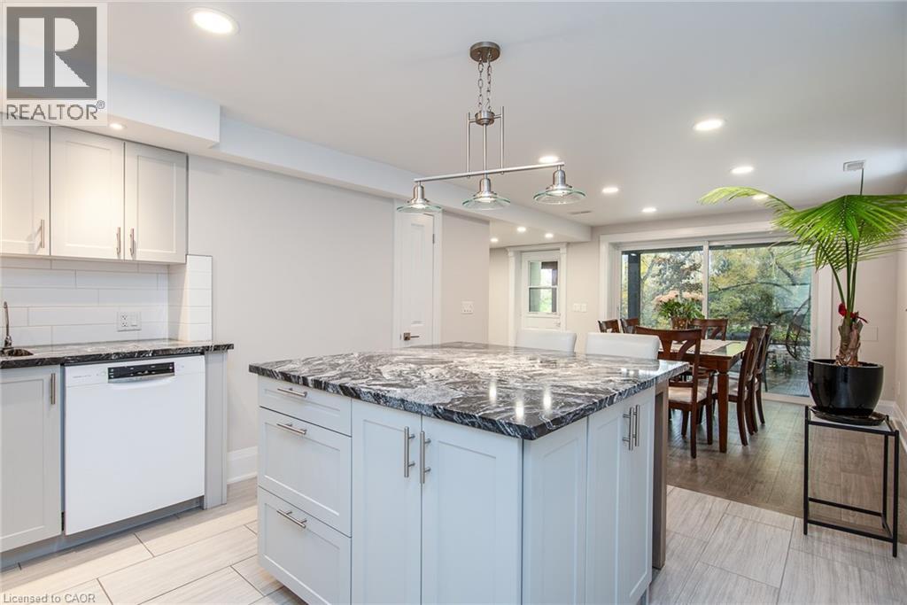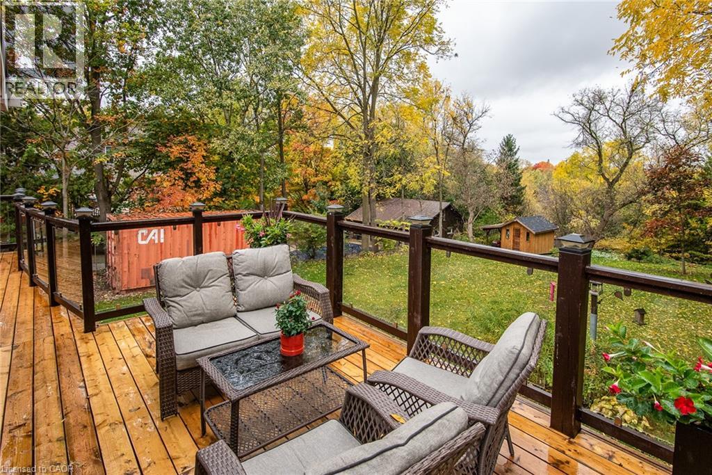 Custom-built dream home with a stunning view and a truly unique layout! Wake up to the peaceful beauty of a tree canopy on a pool-sized lot backing onto a mature forest. Whether you love to entertain or simply enjoy the serenity of nature, this home offers the best of both worlds. Boasting 4 spacious bedrooms and 5 bathrooms (3 with heated floors), this expansive walk-out bungalow provides flexible living with two living areas and an optional separate office space. Cozy up by one of two fireplaces, located in the recreation room and primary bedroom. The welcoming entrance leads to an open-concept main floor featuring beautifully detailed ceilings, hardwood floors throughout, and large glass doors that open to the balcony, offering unobstructed views of your private backyard oasis. The stylish kitchen/dining area showcases a large island, abundant cabinetry, and granite countertops. The dreamy primary bedroom features a spacious walk-in closet and additional closet, a luxurious 5-piece ensuite with a freestanding tub, and glass doors leading to a private balcony. The fully finished basement is perfect for multigenerational living or guest accommodations, complete with a large living room, 3-piece bathroom, powder room, laundry, kitchenette, bedroom, and spacious dining area with walk-out to the patio. Enjoy morning coffee on the front porch or host summer BBQs with ease. The oversized garage is insulated, drywalled, and painted, with a driveway for up to 7 vehicles. Metal roof installed in 2023 with lifetime guarantee. Located in a desirable neighbourhood within walking distance to schools, parks, trails, and playgrounds. With three separate entrances, this home featuring an in-law area is ideal for generational living or a home-based business. Nestled in the charming village of Ayr, just a short drive to Kitchener/Waterloo and minutes to Hwy 401, this character-filled property sits on just over half an acre — a rare find that blends space, style, and lifestyle. (id:51300)