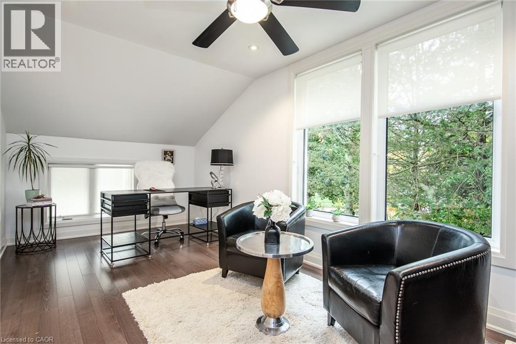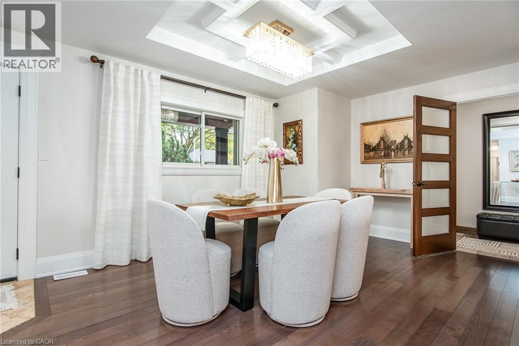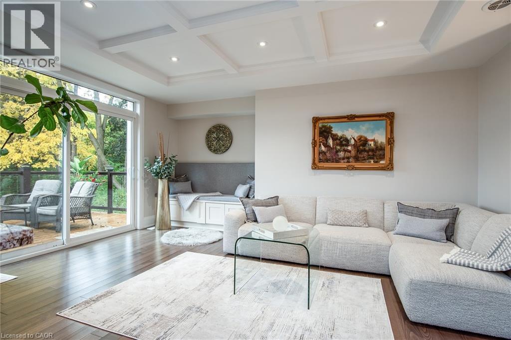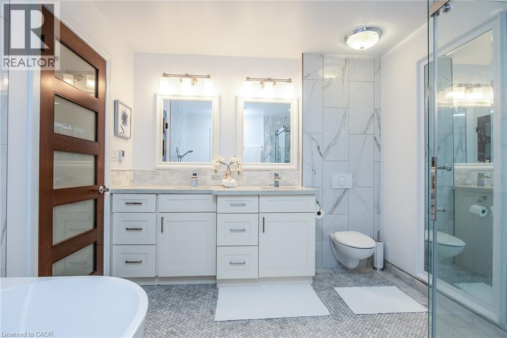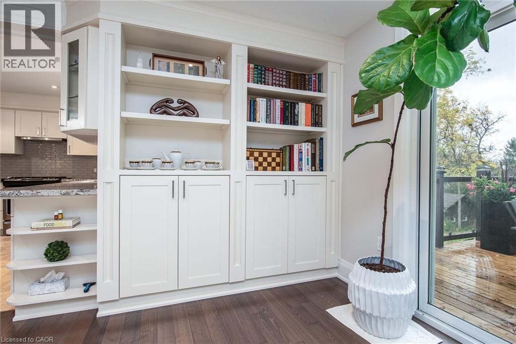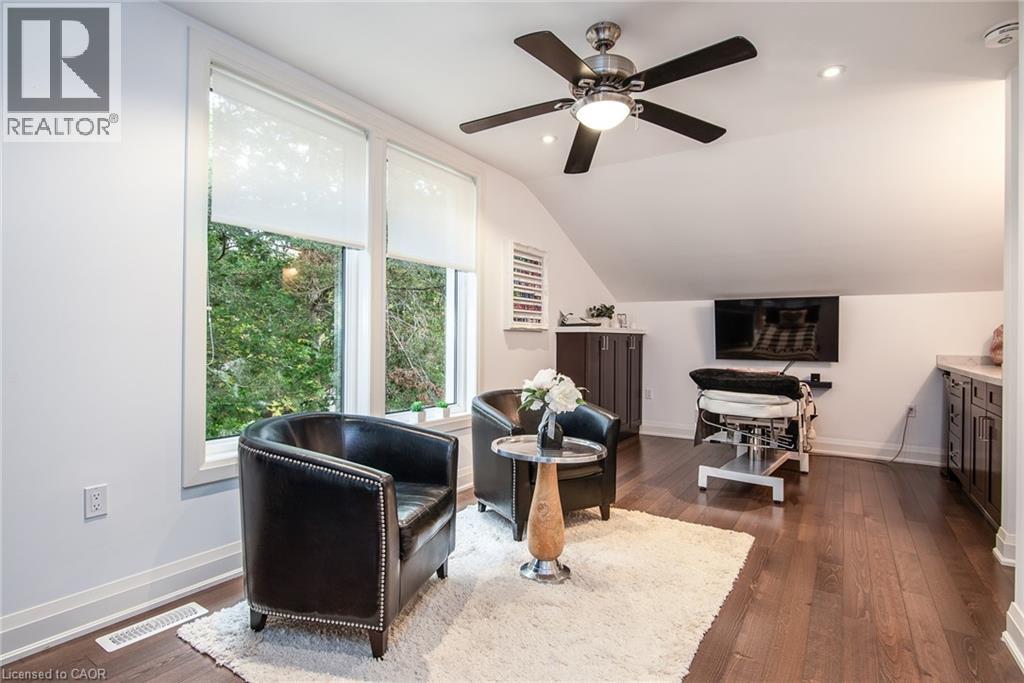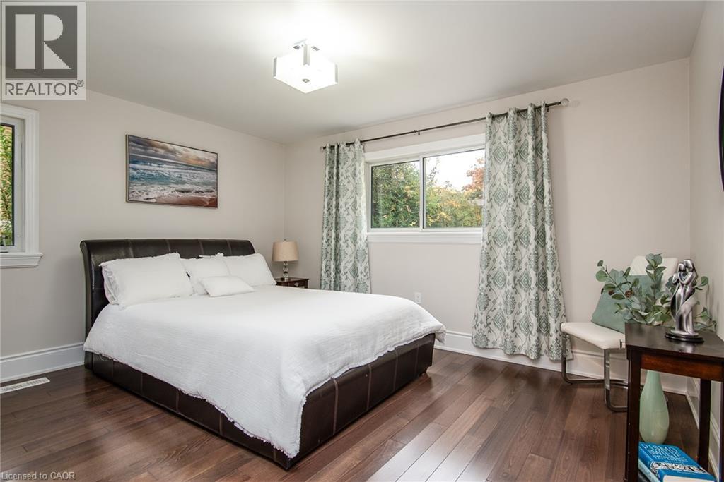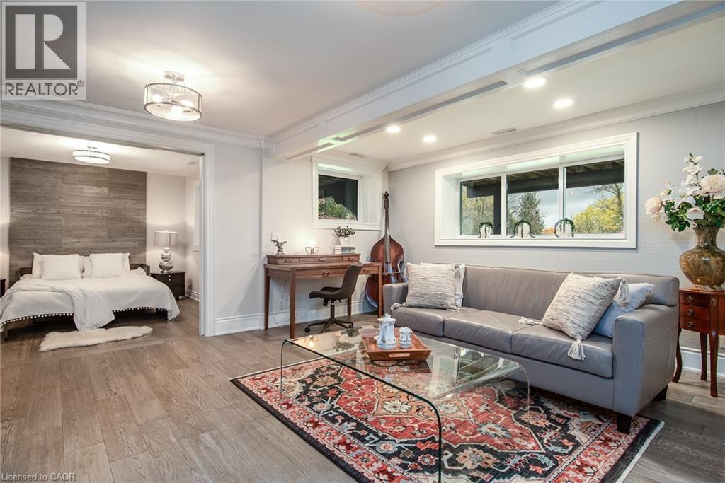 Custom-built dream home with a stunning view and a truly unique layout! Wake up to the peaceful beauty of a tree canopy on a pool-sized lot backing onto a mature forest. Whether you love to entertain or simply enjoy the serenity of nature, this home offers the best of both worlds. Boasting 4 spacious bedrooms and 5 bathrooms (3 with heated floors), this expansive walk-out bungalow provides flexible living with two living areas and an optional separate office space. Cozy up by one of two fireplaces, located in the recreation room and primary bedroom. The welcoming entrance leads to an open-concept main floor featuring beautifully detailed ceilings, hardwood floors throughout, and large glass doors that open to the balcony, offering unobstructed views of your private backyard oasis. The stylish kitchen/dining area showcases a large island, abundant cabinetry, and granite countertops. The dreamy primary bedroom features a spacious walk-in closet and additional closet, a luxurious 5-piece ensuite with a freestanding tub, and glass doors leading to a private balcony. The fully finished basement is perfect for multigenerational living or guest accommodations, complete with a large living room, 3-piece bathroom, powder room, laundry, kitchenette, bedroom, and spacious dining area with walk-out to the patio. Enjoy morning coffee on the front porch or host summer BBQs with ease. The oversized garage is insulated, drywalled, and painted, with a driveway for up to 7 vehicles. Metal roof installed in 2023 with lifetime guarantee. Located in a desirable neighbourhood within walking distance to schools, parks, trails, and playgrounds. With three separate entrances, this home featuring an in-law area is ideal for generational living or a home-based business. Nestled in the charming village of Ayr, just a short drive to Kitchener/Waterloo and minutes to Hwy 401, this character-filled property sits on just over half an acre — a rare find that blends space, style, and lifestyle. (id:51300)