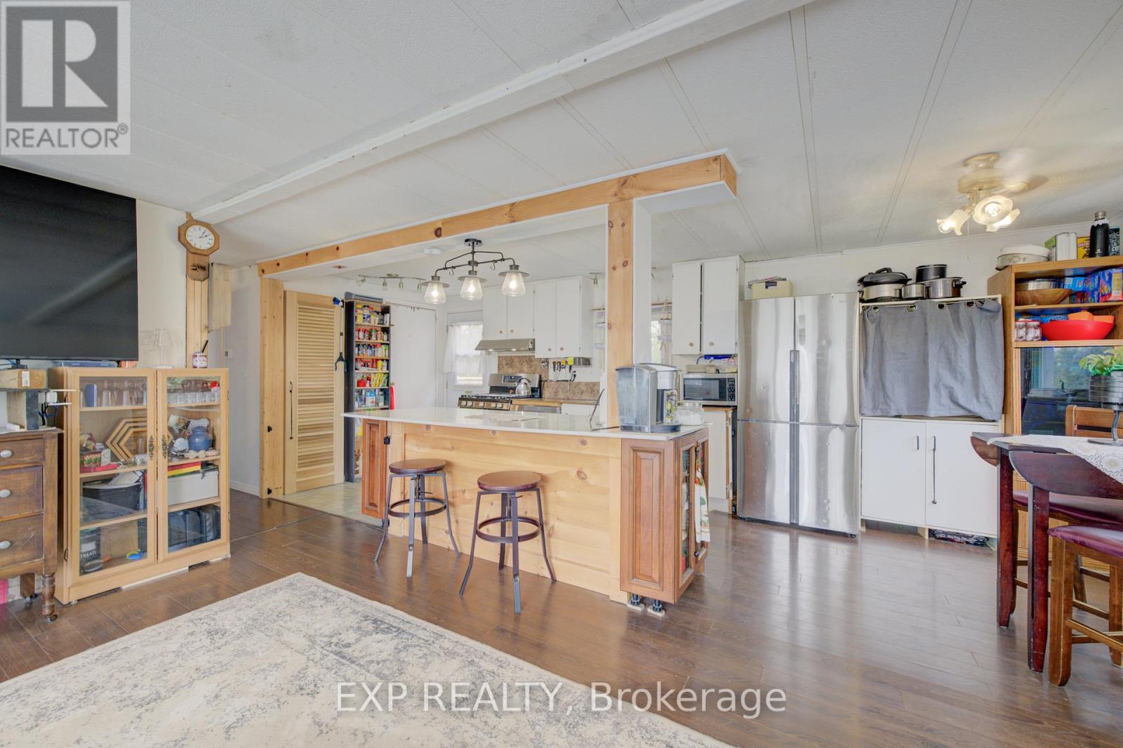 Affordable Country Living with In-Law Suite Welcome to 7442 Wellington Road 109, a charming country property just outside of Arthur with easy access to both Arthur and Palmerston. Set on nearly half an acre, this bungalow offers the perfect balance of comfort, space, and functionality. The main floor features three bedrooms and two bathrooms, including a primary ensuite. A bright eat-in kitchen, formal dining room, and spacious living room provide plenty of room for everyday living and entertaining. Practical touches like a pantry and main floor laundry make this home suitable for every stage of life. Step outside to enjoy a large backyard with endless possibilities space for gardening, play, or simply relaxing in the fresh country air. Whether you are hosting summer barbecues on the upper deck, hanging laundry on the line, or storing your toys and tools in the generous outbuildings, there is something here for everyone. The fully finished lower level offers a self-contained in-law suite with its own entrance. Complete with a full kitchen, bedroom, bathroom, and laundry, it is ideal for multigenerational living. A cozy fireplace, walkout to a private patio, and additional storage make this space comfortable and inviting for anyone. And for that extra peace of mind a back up generator will keep the lights on and water flowing all the time. With more than 2,600 square feet of finished living space, natural gas heating, central air, and a drilled well, this property represents excellent value for those looking to enter the country market. Come and discover why this home is the ideal blend of rural living, family space, and lifestyle flexibility. (id:51300)