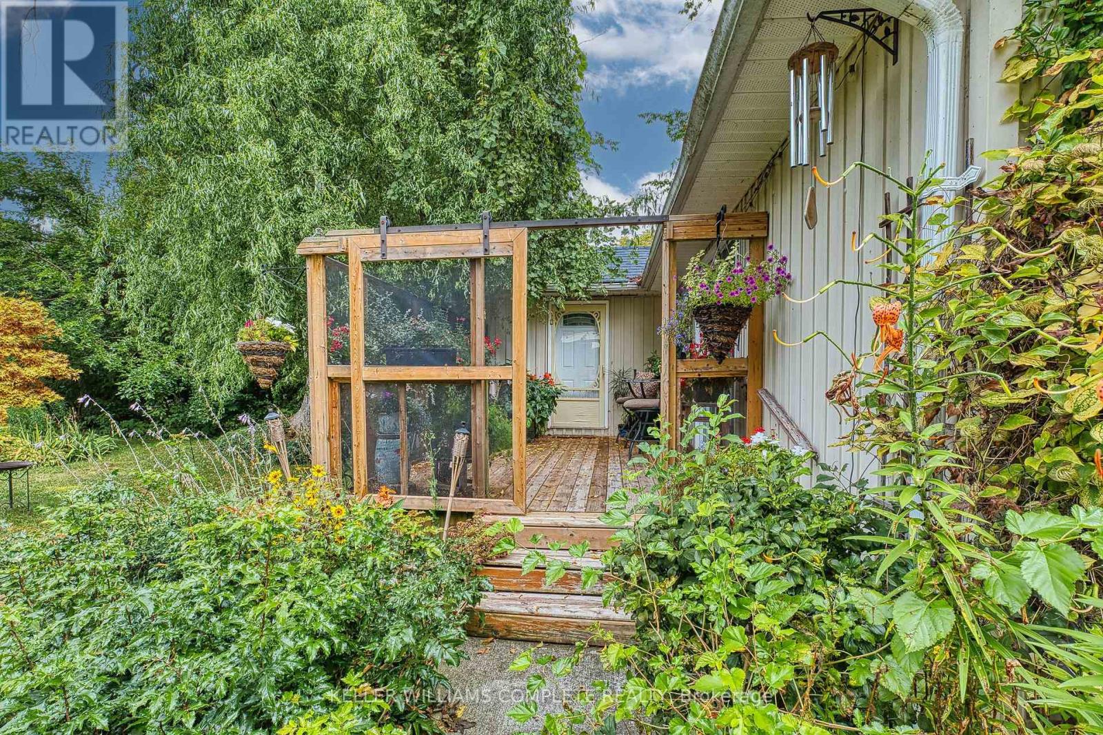 Welcome to this beautiful year-round 3-bed, 2-bath, 1,326 sqft home or cottage, perfectly situated in a peaceful lakeside subdivision just outside of Bayfield. Featuring an ideal blend of comfort, charm & functionality, this property is designed for both relaxing getaways & full-time living. Step inside to discover a warm & inviting layout featuring soaring cathedral ceilings & stylish updated flooring. The living room features a cozy gas fireplace & sliding doors provide plenty of natural light. The open concept dining area is perfect for entertaining, while the updated kitchen features modern open shelving. The sunroom is the perfect place for morning coffee or a good book. The main floor primary bedroom includes a private 2-pc ensuite, while a convenient laundry closet completes this level. Upstairs, you'll find a good-sized second bedroom w/ access to a Juliette balcony, a versatile den space that can easily serve as a third bedroom, home office or hobby area & a 4-pc bath. Additional highlights include updated windows, a built-in wall air conditioning unit, a detached insulated garage w/ heat pump & hydro (2 cars can be parked tandem) which could potentially be converted to a bunkie, plus a concrete 3-car driveway. Enjoy peaceful outdoor living w/ decks at both the front & back of the property (brand new expanded deck installed at the back), English gardens, gazebo, outdoor shower, plus a hot tub for year-round relaxation. The landscaped yard features mature trees & peaceful views of the surrounding countryside, all while being just a short stroll to the beach w/ deeded access to Lake Huron. With municipal water, municipal road access & high-speed/fibre optic internet, this property features modern conveniences in a serene setting. Currently enjoyed as a full-time residence, this home is turn-key & ready to be yours! Note: All items on the property negotiable including furniture, etc. Main heat source: Gas fireplace w/ supplemental electric baseboard heating. (id:51300)