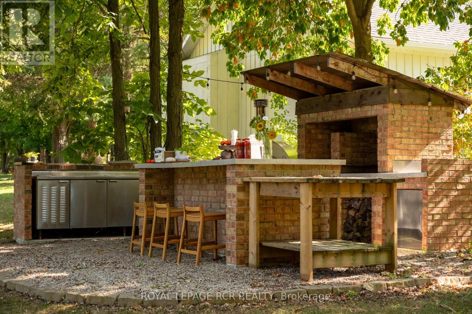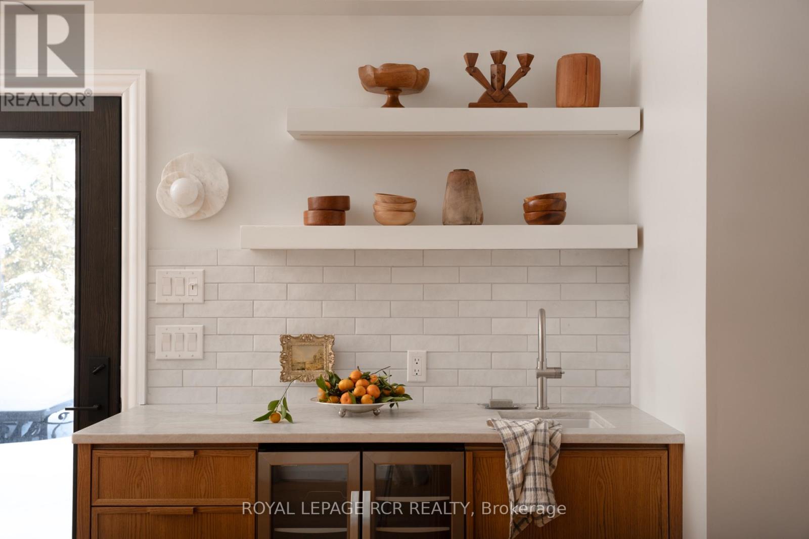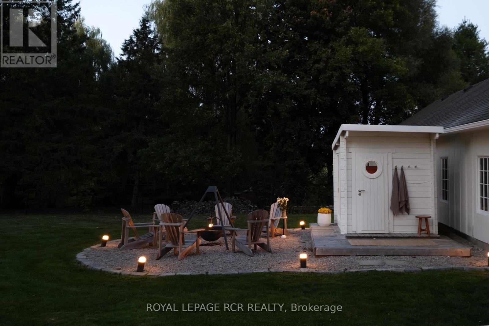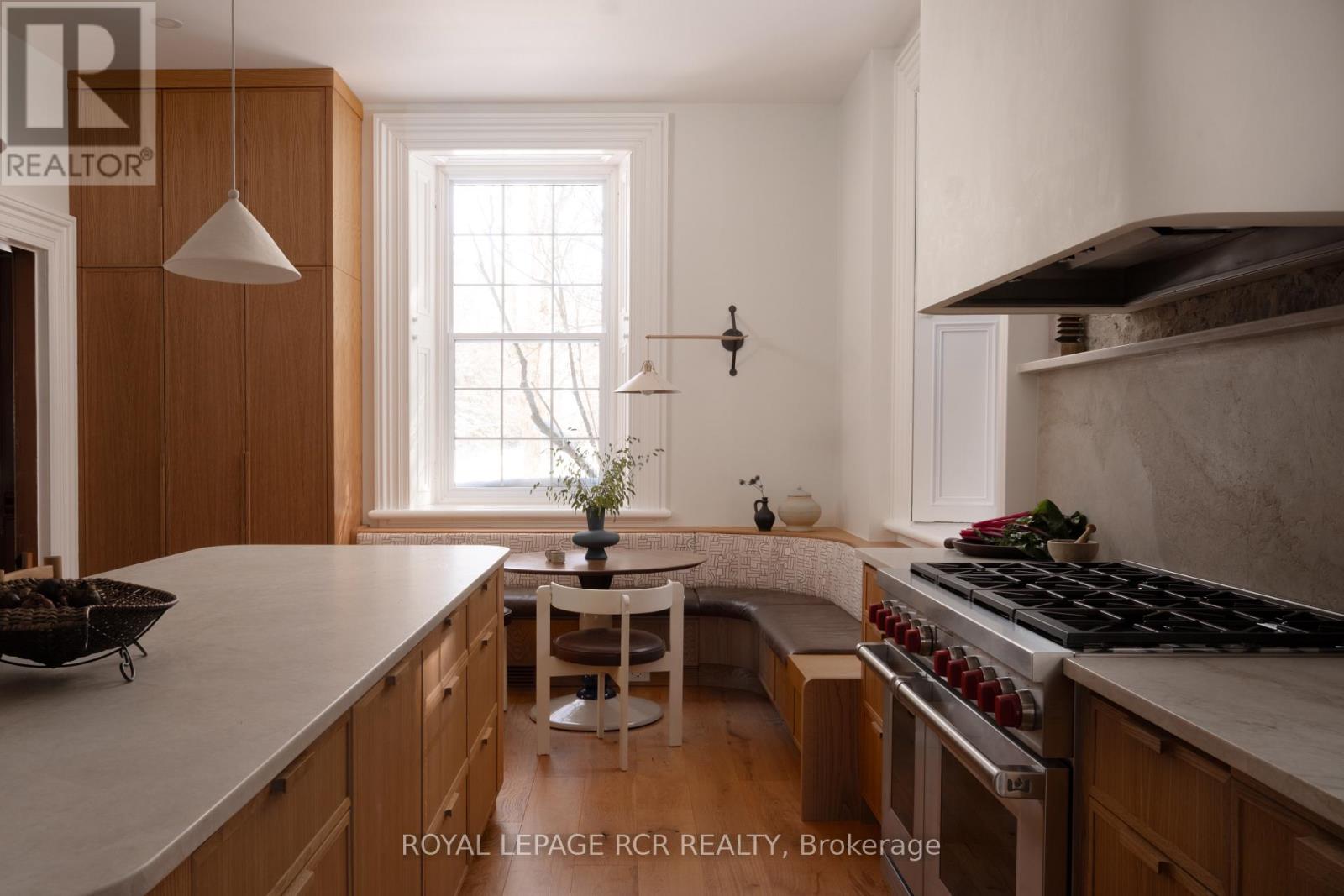 Historic soul meets a high-design heartbeat. Welcome to Stonecrop, an iconic 1857 stone manor reimagined as a warm, soulful sanctuary. Just outside of Elora, set on nearly 10 private acres at the end of a dramatic tree-lined driveway, this is a rare dialogue between historic provenance and refined organic luxury. Inside, soaring 12-foot ceilings, original plaster medallions, and dramatic stone walls create an inviting, layered atmosphere. At the heart of the home, a show-stopping kitchen, recently featured in Architectural Digest (!!!), anchors daily life and entertaining. Rooted in timeless design, it blends heritage architecture with modern precision through custom wood cabinetry, integrated top-tier appliances, and natural materials in balance. The living and dining areas continue the story, where a stone fireplace is set beneath vaulted ceilings, and skylights that flood the space with light. The main level also offers a family room, dreamy private office, and magazine worthy powder room. Upstairs, 5 spacious bedrooms span 2 levels, each defined by natural light and quiet luxury. The second floor features wide-plank wood flooring, 3 large bedrooms, and a beautifully appointed 4-piece bath. The third floor is fully finished with vaulted ceilings, exposed beams, 2 additional bedrooms, a sitting area, and a 3-piece bath. The partially finished basement offers in-law suite potential with a large bedroom, kitchenette rough-in, 4-piece bath, and separate entrance. Geothermal heating supports the home with modern efficiency. Outdoors, a heated above-ground pool, outdoor sauna, fire pit lounge, and outdoor pizza kitchen set the tone for unforgettable summers. An orchard, gardens, and private trails wind through nearly 10 acres of countryside. The impressive 58-foot detached garage includes a dedicated home gym and ample space for cars, toys, and equipment, completing this private country compound. AD-worthy interiors. Expansive acreage. Stonecrop is iconic. (id:51300)