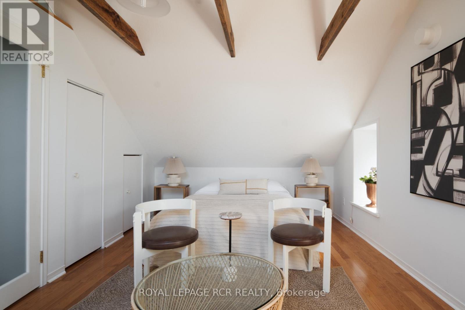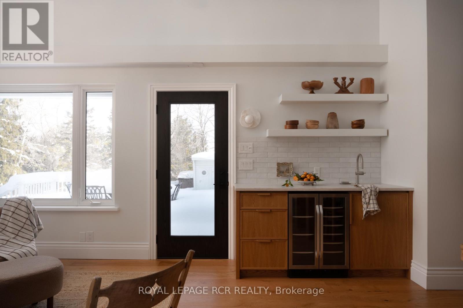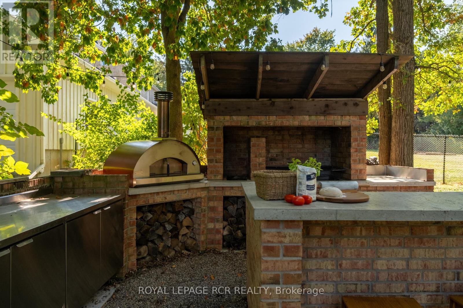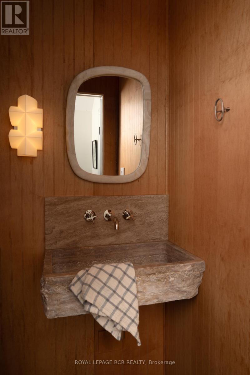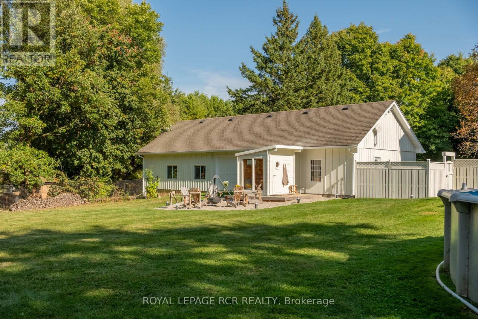 Historic soul meets a high-design heartbeat. Welcome to Stonecrop, an iconic 1857 stone manor reimagined as a warm, soulful sanctuary. Just outside of Elora, set on nearly 10 private acres at the end of a dramatic tree-lined driveway, this is a rare dialogue between historic provenance and refined organic luxury. Inside, soaring 12-foot ceilings, original plaster medallions, and dramatic stone walls create an inviting, layered atmosphere. At the heart of the home, a show-stopping kitchen, recently featured in Architectural Digest (!!!), anchors daily life and entertaining. Rooted in timeless design, it blends heritage architecture with modern precision through custom wood cabinetry, integrated top-tier appliances, and natural materials in balance. The living and dining areas continue the story, where a stone fireplace is set beneath vaulted ceilings, and skylights that flood the space with light. The main level also offers a family room, dreamy private office, and magazine worthy powder room. Upstairs, 5 spacious bedrooms span 2 levels, each defined by natural light and quiet luxury. The second floor features wide-plank wood flooring, 3 large bedrooms, and a beautifully appointed 4-piece bath. The third floor is fully finished with vaulted ceilings, exposed beams, 2 additional bedrooms, a sitting area, and a 3-piece bath. The partially finished basement offers in-law suite potential with a large bedroom, kitchenette rough-in, 4-piece bath, and separate entrance. Geothermal heating supports the home with modern efficiency. Outdoors, a heated above-ground pool, outdoor sauna, fire pit lounge, and outdoor pizza kitchen set the tone for unforgettable summers. An orchard, gardens, and private trails wind through nearly 10 acres of countryside. The impressive 58-foot detached garage includes a dedicated home gym and ample space for cars, toys, and equipment, completing this private country compound. AD-worthy interiors. Expansive acreage. Stonecrop is iconic. (id:51300)