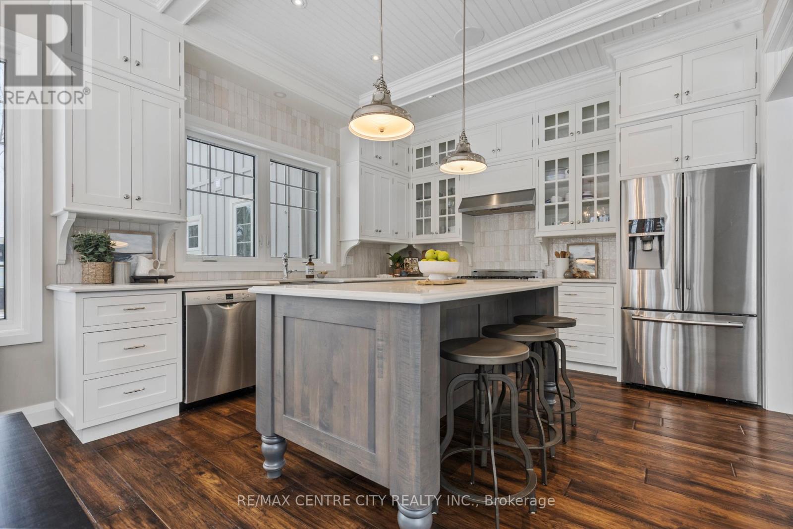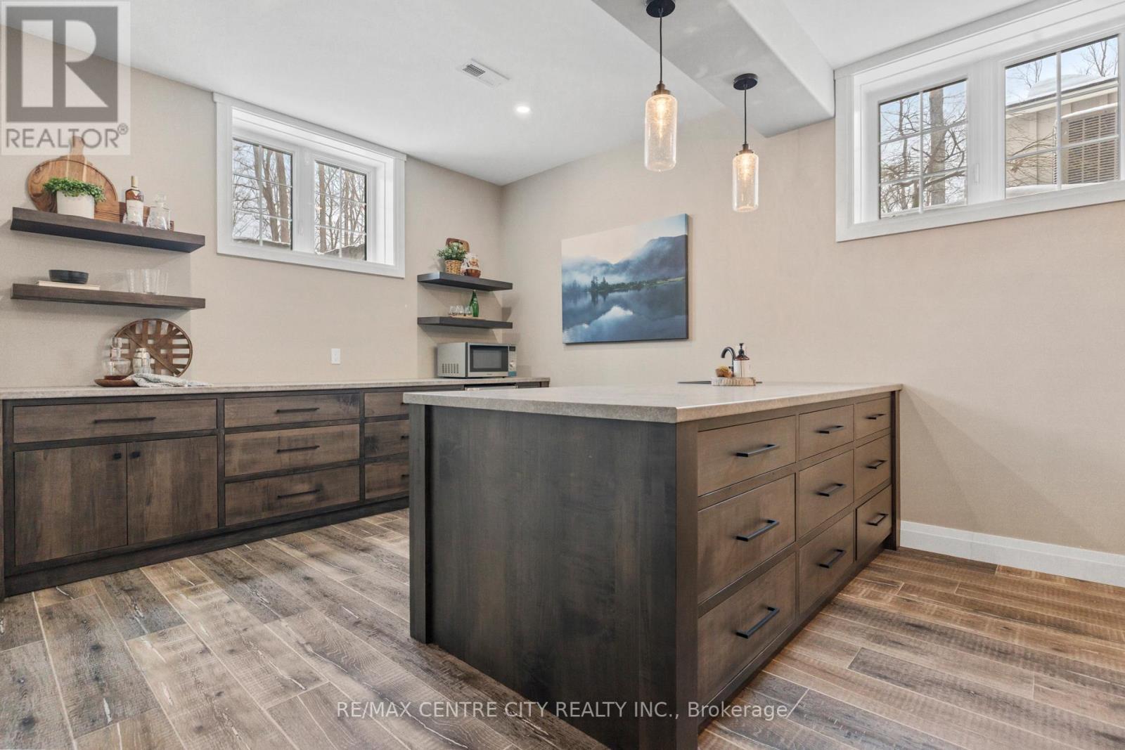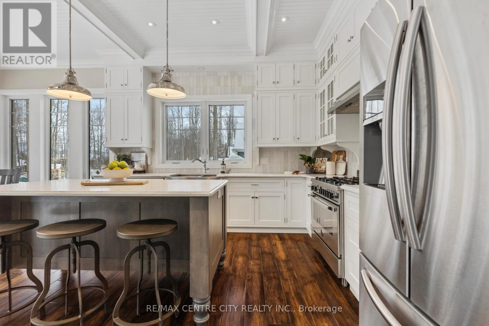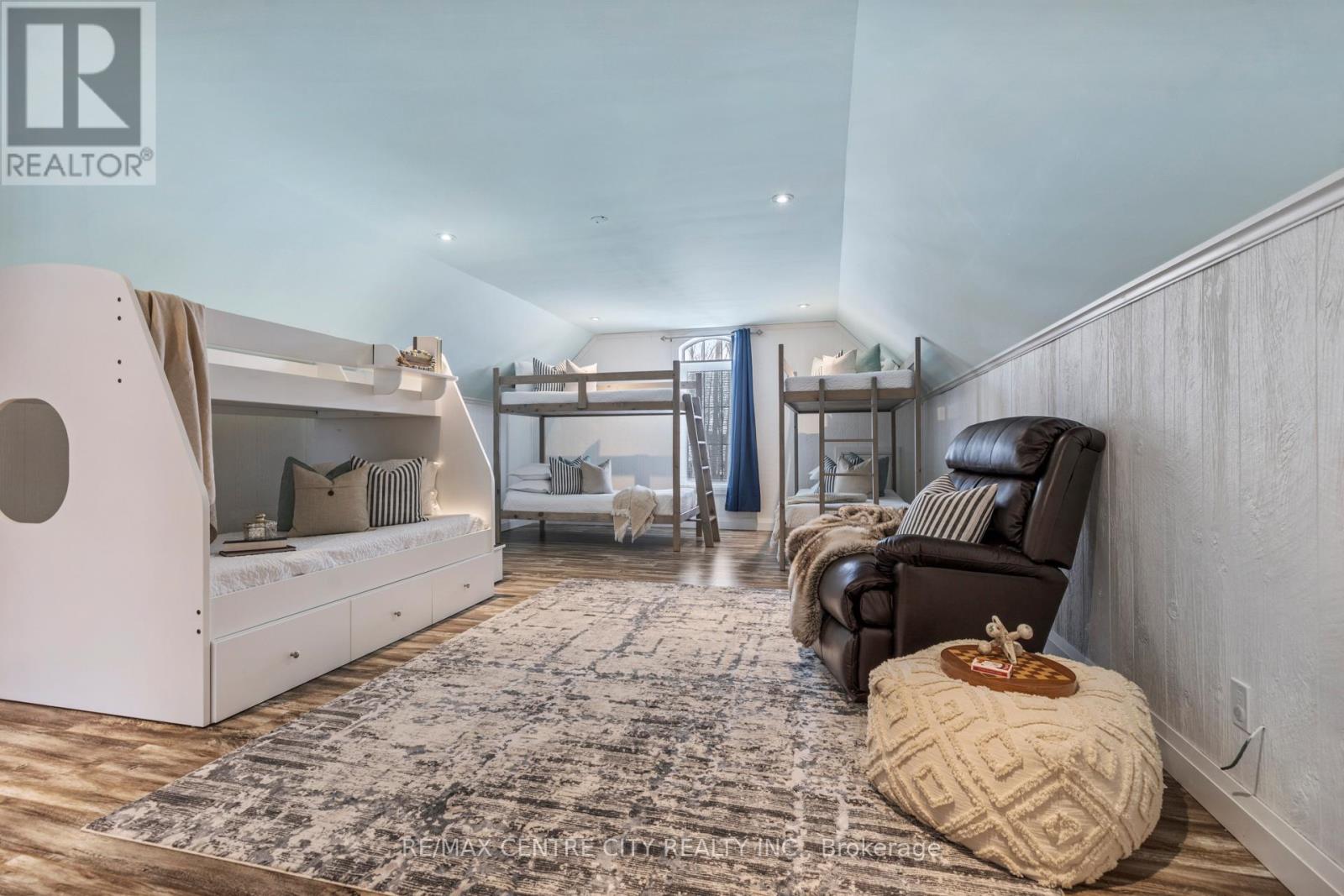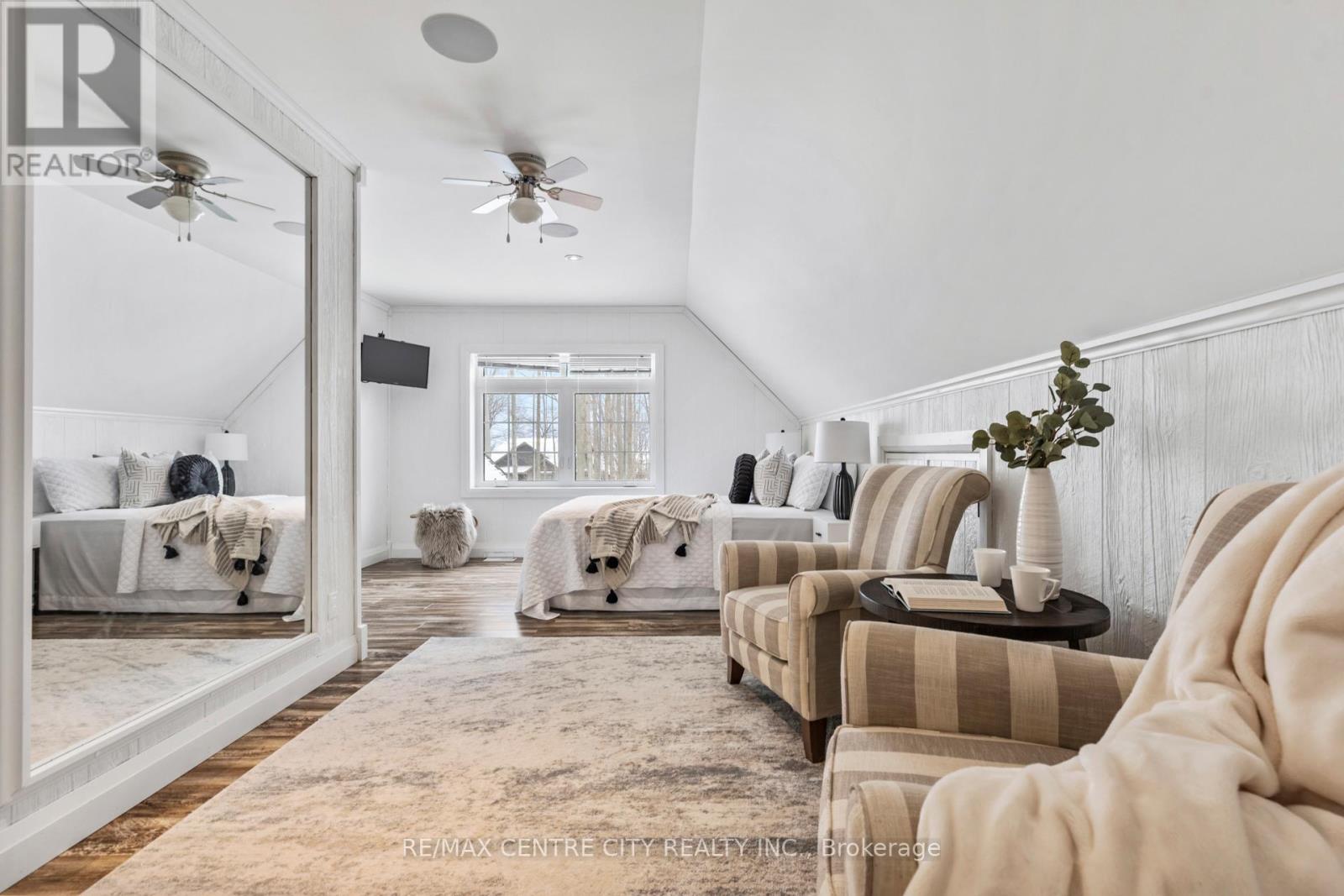 Captivating Beach Home!75335 Maxobel Rd is sure to impress with its striking design, quality construction & detail second to none set amongst a mature .64 acre backdrop of tall trees,lush landscaping while only steps to the sandy shores of Lake Huron! This property is perfect for entertaining guests and family with 6 bedrooms & 2.5 bathrooms & a large concrete driveway for guest vehicles.A spacious entry invites you to an open concept living space with 16 ft ceilings in the light-filled great room featuring a wall of windows & stone fireplace.Bright elegant kitchen with quartz countertops,stainless steel appliances,gas stove & spacious eating area surrounded by large windows.Main floor master bedroom retreat features a luxurious ensuite washroom with heated floors,large soaker tub & a double-headed glass shower.Also on the main floor,a guest bedroom,2 pc bathroom & laundry.Two access points from inside the home to the double car garage with upgrade hydro for electric vehicles/heavy equipment,handy separate storage room with garage door side yard for tools/lawnmower.Upstairs offers two over-sized bedrooms with plenty of natural light & space to utilize.Open concept fully finished lower level has 9ft ceilings,heated floors,large living room,wet bar with bar fridge,two spacious bedrooms & a luxurious 4pc washroom with double vanity & glass shower.Plenty of storage in this home.This home is equipped with a generator,a security system,is on municipal services for water and sewers is fueled by natural gas.It also has 8 zones wired for sound system inside & outside.Relax on the expansive composite rear deck while taking in the tranquil setting surrounded by the tall majestic trees.The rear yard also features an outdoor shower for washing off from the sandy beach visits (deeded access mere steps away),a custom tree house with zip line. Located minutes south of the beautiful town & marina of Bayfield, ON.Don't miss your opportunity to own this stunning piece of real estate! (id:51300)
