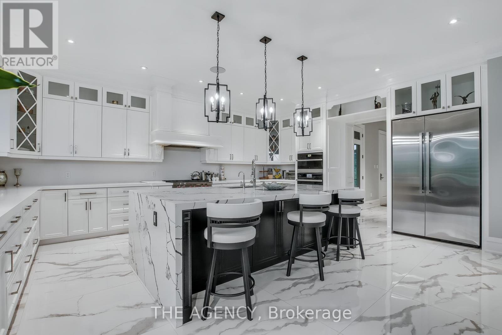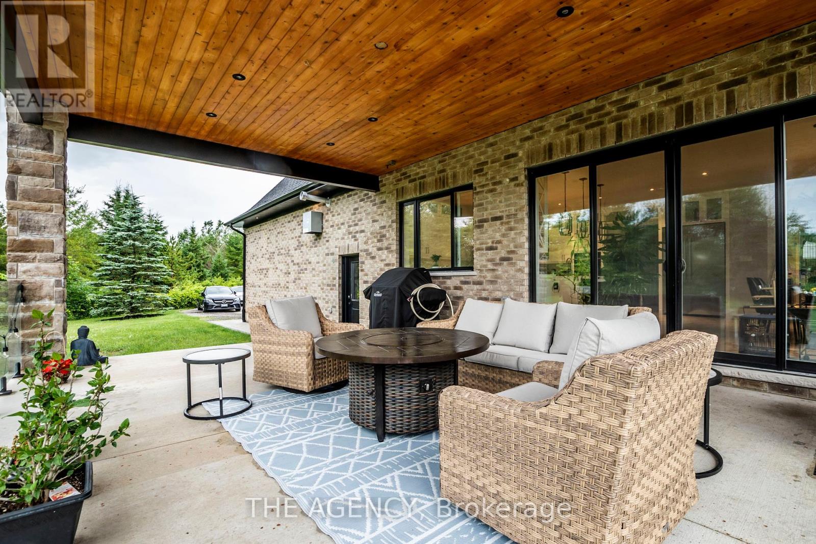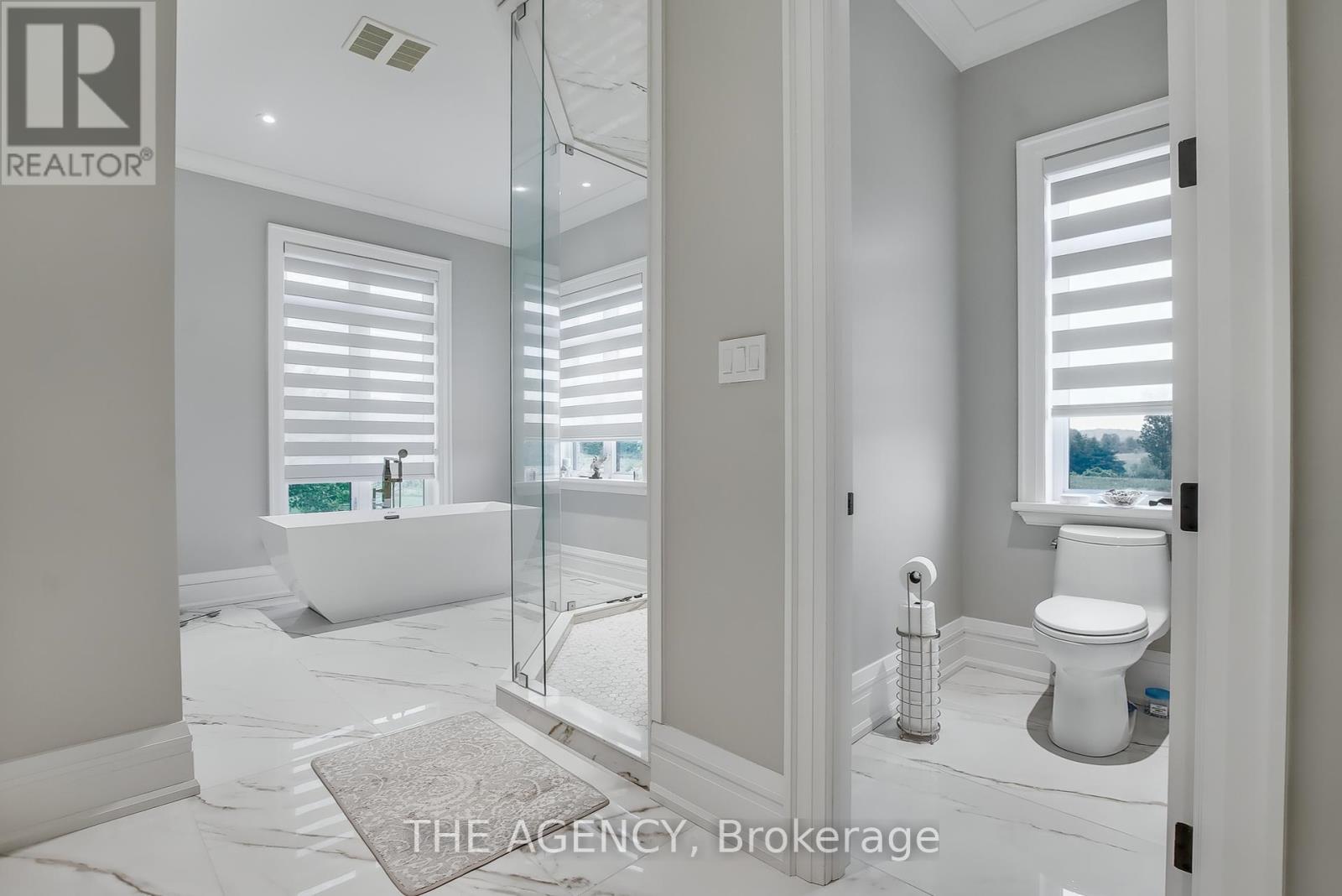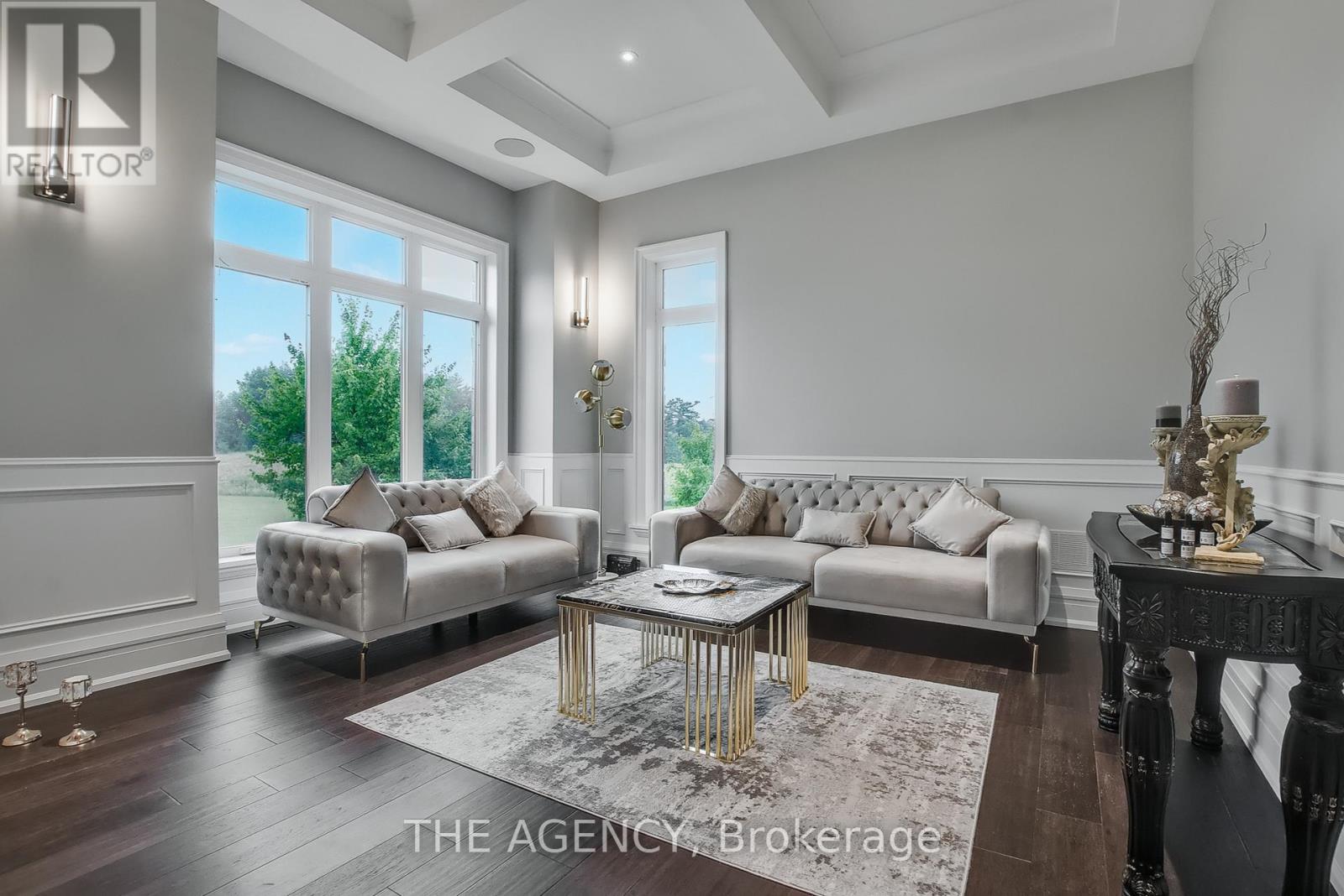 Custom Luxury Estate at 7645 Maltby Rd E! This extraordinary custom-built residence offers the perfectly blend of luxury and convenience on a private 2+ acre lot in one of Puslinch's most prestigious communities. Ideally situated on the Guelph-Puslinch border, this home is steps from Victoria Park Valley Golf Course and just minutes to Pergola Commons, grocery stores, and countless amenities, it provides a tranquil country setting with easy city access. Inside, the home is thoughtfully designed for modern living. The main floor primary suite serves as a private retreat, showcasing serene garden views, dual walk-in closets, a spa-inspired ensuite with in-floor heating, and refined finishes throughout. The chef's kitchen is both elegant and functional, featuring top tier appliances, a striking waterfall island, and a hidden walk-in pantry Room. Separate living and dining areas, along with a dedicated office, offer flexible spaces for work and entertaining. With four spacious bedrooms across the home, each complete with a walk-in closet and ensuite bath, comfort and style are guaranteed for the entire family. Outdoors, the estate transforms into a private oasis, combining space, tranquility, and privacy. The exclusive driveway easily accommodates 11+ vehicles, making hosting effortless. This rare offering combines the best of luxury living with convenient city access. Every detail has been thoughtfully designed to elevate your lifestyle. (id:51300)
