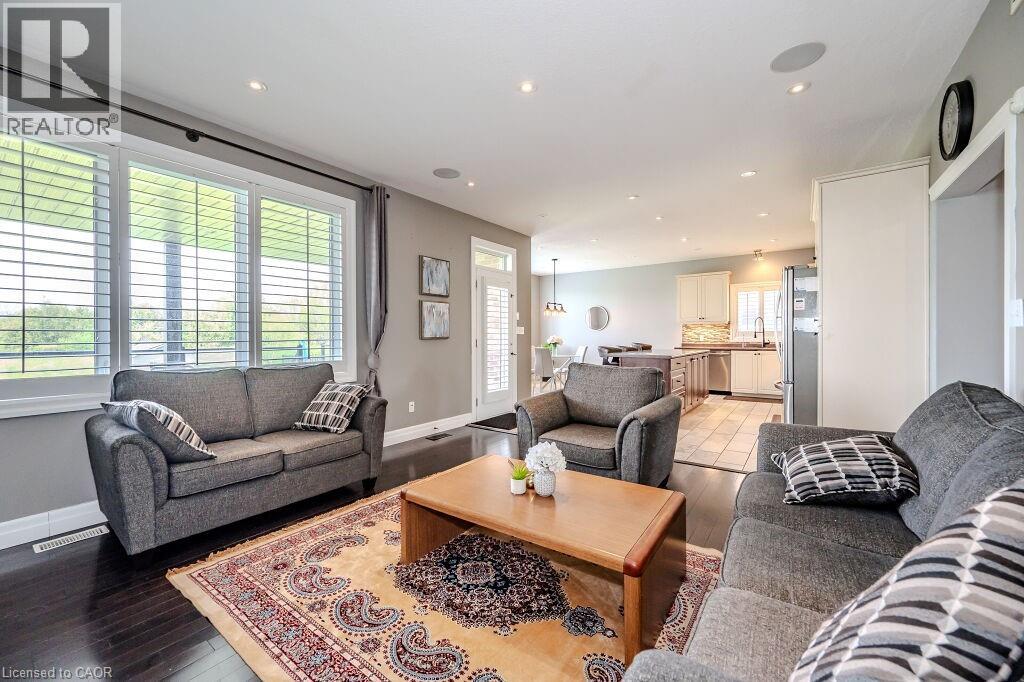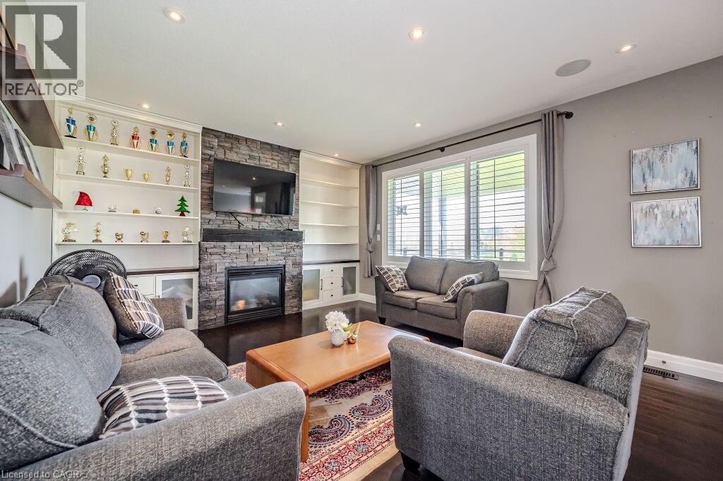 Stunning 5-Bedroom Retreat on Rare 267' Deep Lot! Discover your perfect sanctuary in this breathtaking 5-bedroom, 4-bathroom home, nestled on a premium 267-foot deep, fully fenced lot backing onto a serene conservation area for ultimate privacy. This residence radiates curb appeal with its striking exterior and pristine landscaping. Step inside to find luxurious finishes, including a warm gas fireplace, elegant stone walls, soaring ceilings, pot lights, rustic barn wood accents, and a surround sound system in the fully finished basement. The chef’s kitchen dazzles with abundant cabinetry and counter space, seamlessly flowing into the open-concept dining and living areas. A custom mudroom offers stylish storage solutions. The bright lookout basement, illuminated by large windows, is perfect for relaxation or entertaining. Outdoors, a full-width covered deck with a hot tub creates an ideal setting for year-round enjoyment. Located steps from Breslau P.S., Hwy 7, the expressway, and Hwy 401, this home blends tranquility, luxury, and convenience. Don’t miss your chance to own this extraordinary forever home! (id:51300)