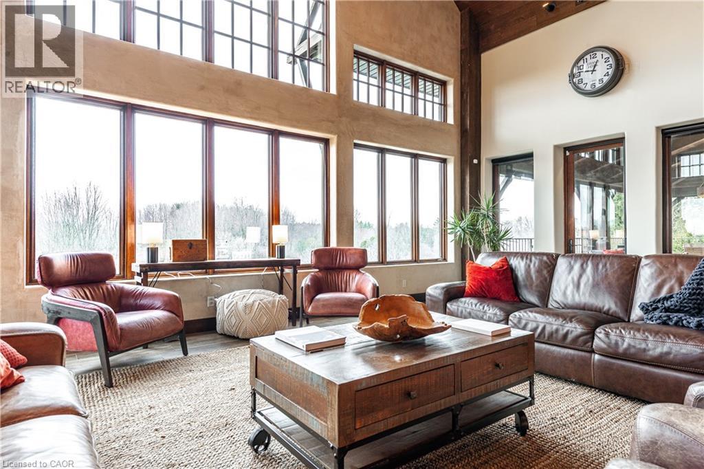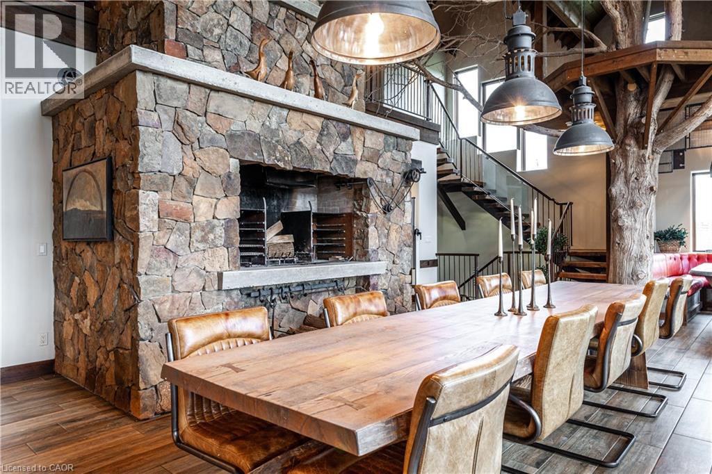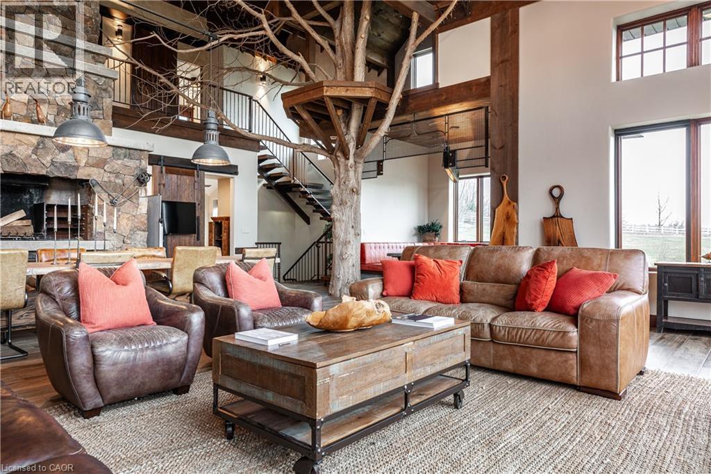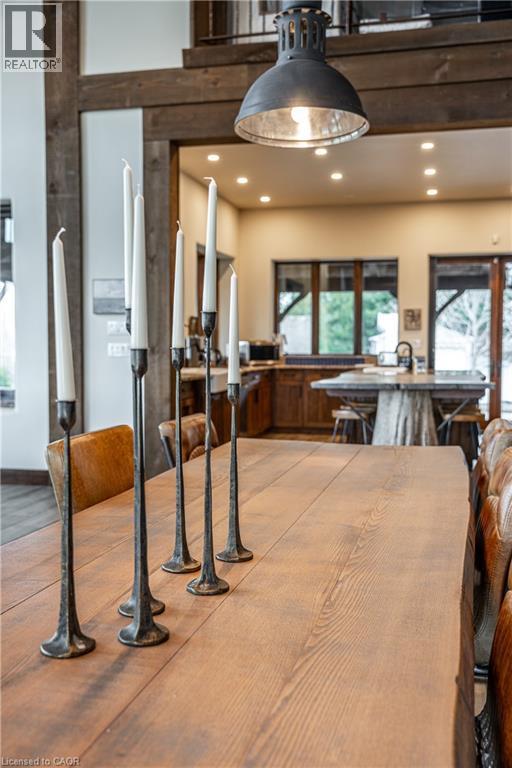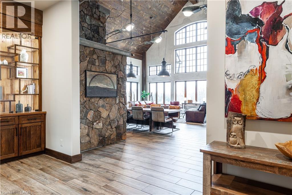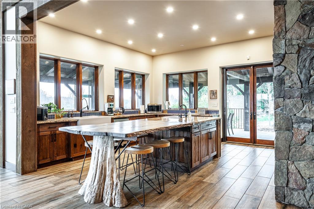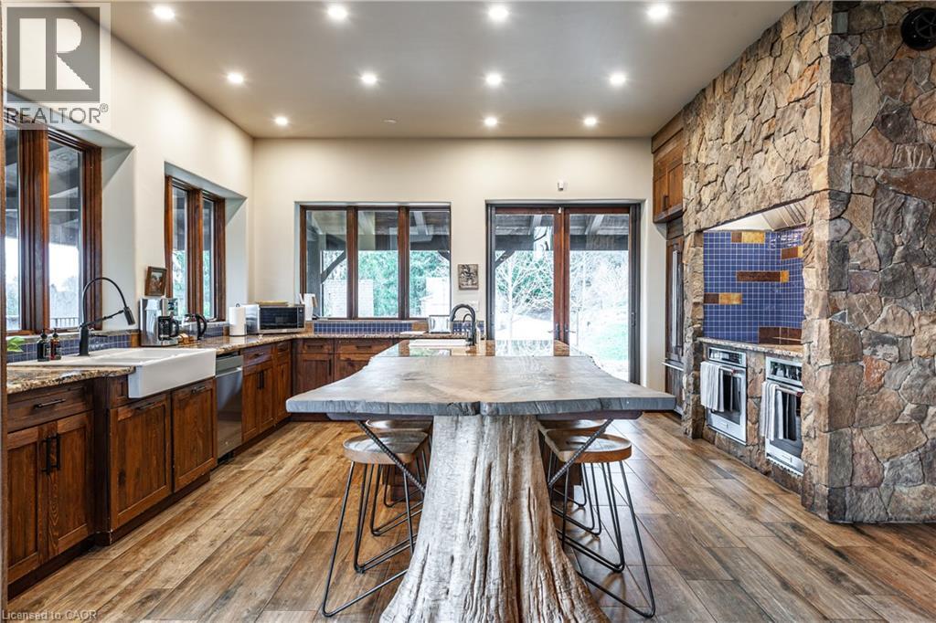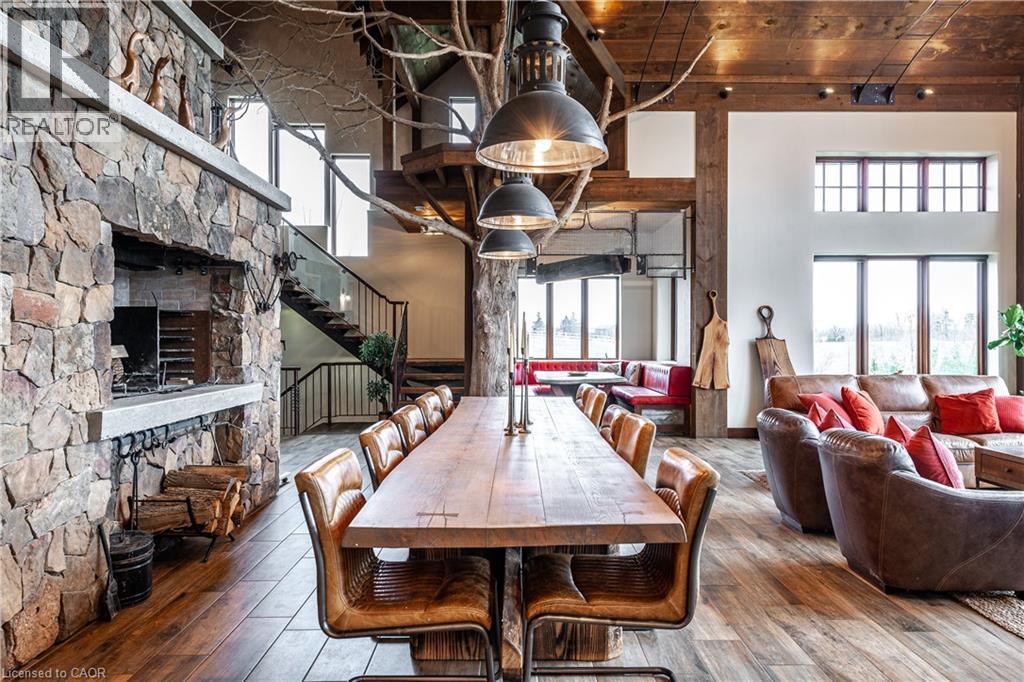 Short-term or long-term rental - available daily, weekly, monthly. Welcome to Elmwood Estate, an upscale 8-bedroom timber-frame sanctuary where rustic craftsmanship meets refined modern design. Set between Guelph and Hamilton and surrounded by quiet forest, this one-of-a-kind lodge is the perfect backdrop for unforgettable experiences of every kind. Inside, soaring cathedral ceilings, rich wood beams, and a dramatic 20-ft stone hearth anchor the great room — a breathtaking space for groups to gather, celebrate, and reconnect. Expansive windows frame calming woodland views, filling the home with natural light and inviting nature into every corner. The chef’s kitchen offers professional-grade appliances, generous prep space, and room for multiple cooks, ideal for shared meals, retreats, and special occasions. Elmwood is designed for relaxation, creativity, and wellness. Guests can enjoy a private sauna, fully outfitted gym, and a whimsical indoor treehouse loft perfect for reading, meditation, or quiet reflection. With 8 inviting bedrooms, the property provides flexible accommodations for families, corporate teams, and group getaways. Outdoors, forest trails, wide-open skies, and peaceful surroundings create a landscape that feels worlds away while remaining easily accessible. Just minutes from Dundas Peak, Elmwood offers convenience without sacrificing serenity. From wellness retreats to small weddings, bachelor getaways, corporate sessions, Christmas parties, and countless celebrations, Elmwood Estate offers a truly special setting that inspires, rejuvenates, and brings people together. Available for short term rentals - daily, weekly, monthly. Click on the sales brochure for booking/showing instructions. (id:51300)