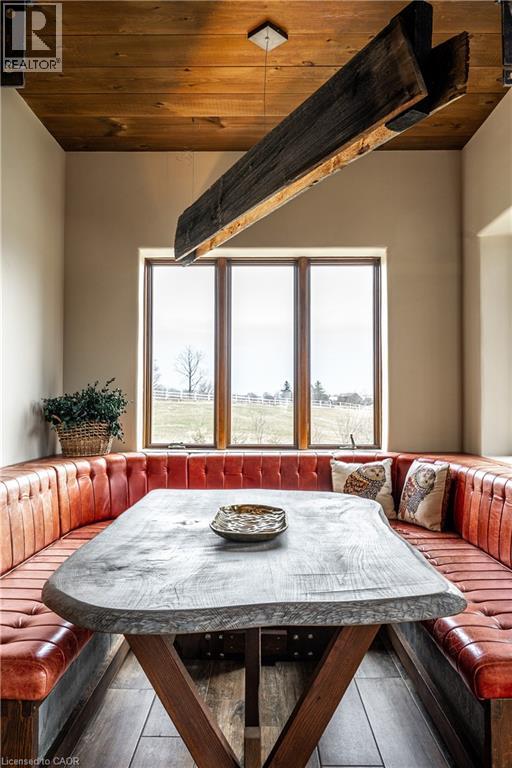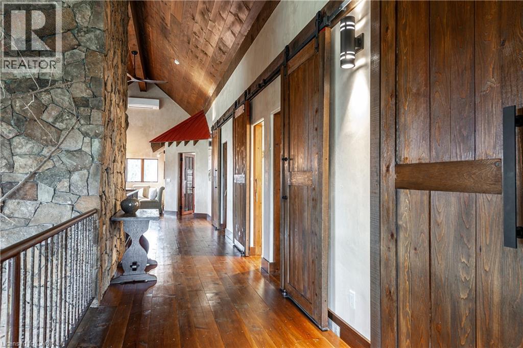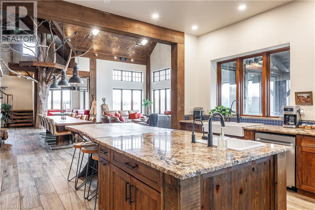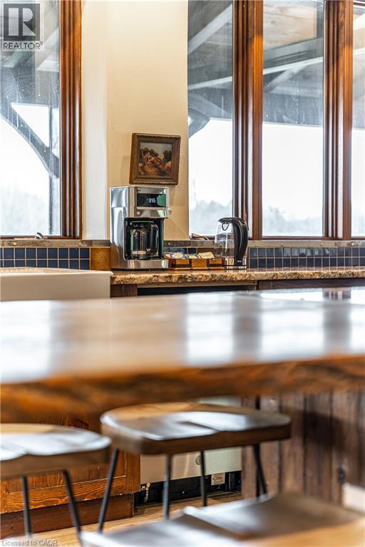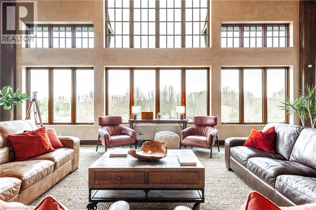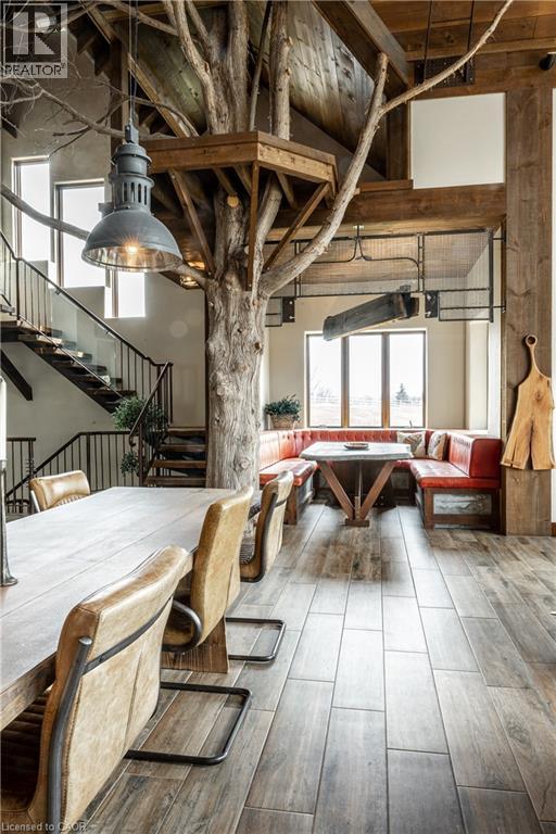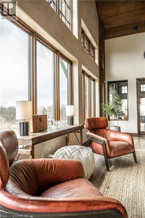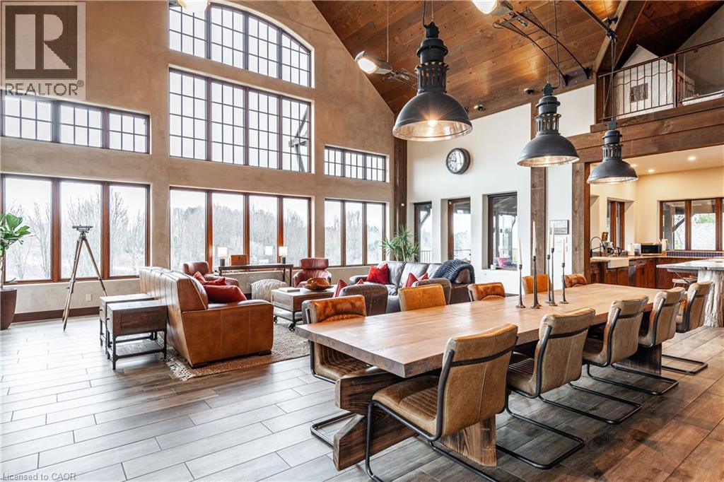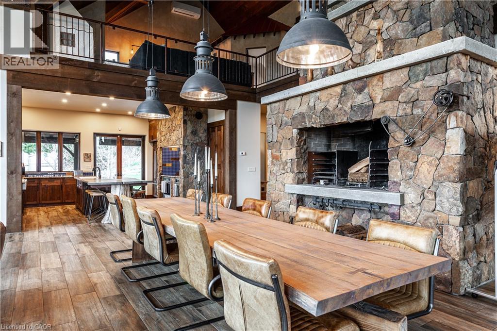 Short-term or long-term rental - available daily, weekly, monthly. Welcome to Elmwood Estate, an upscale 8-bedroom timber-frame sanctuary where rustic craftsmanship meets refined modern design. Set between Guelph and Hamilton and surrounded by quiet forest, this one-of-a-kind lodge is the perfect backdrop for unforgettable experiences of every kind. Inside, soaring cathedral ceilings, rich wood beams, and a dramatic 20-ft stone hearth anchor the great room — a breathtaking space for groups to gather, celebrate, and reconnect. Expansive windows frame calming woodland views, filling the home with natural light and inviting nature into every corner. The chef’s kitchen offers professional-grade appliances, generous prep space, and room for multiple cooks, ideal for shared meals, retreats, and special occasions. Elmwood is designed for relaxation, creativity, and wellness. Guests can enjoy a private sauna, fully outfitted gym, and a whimsical indoor treehouse loft perfect for reading, meditation, or quiet reflection. With 8 inviting bedrooms, the property provides flexible accommodations for families, corporate teams, and group getaways. Outdoors, forest trails, wide-open skies, and peaceful surroundings create a landscape that feels worlds away while remaining easily accessible. Just minutes from Dundas Peak, Elmwood offers convenience without sacrificing serenity. From wellness retreats to small weddings, bachelor getaways, corporate sessions, Christmas parties, and countless celebrations, Elmwood Estate offers a truly special setting that inspires, rejuvenates, and brings people together. Available for short term rentals - daily, weekly, monthly. Click on the sales brochure for booking/showing instructions. (id:51300)