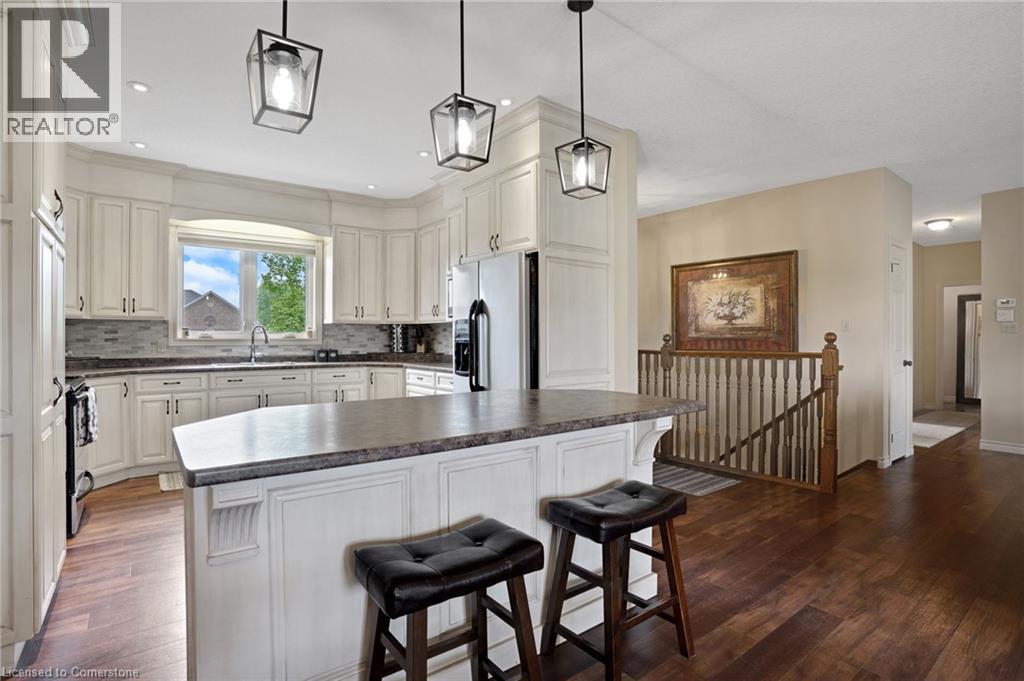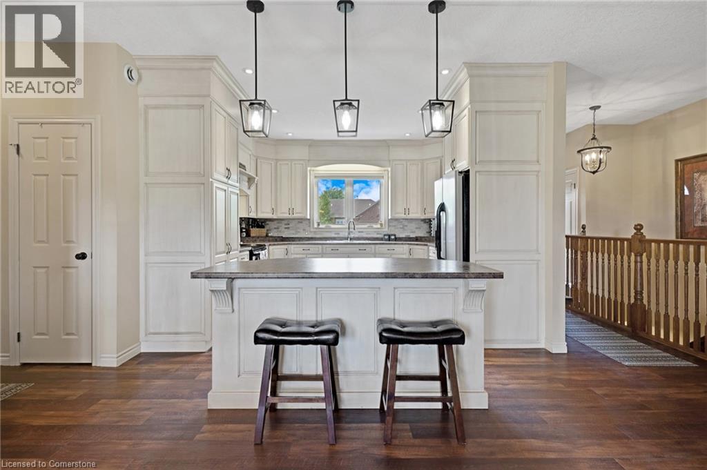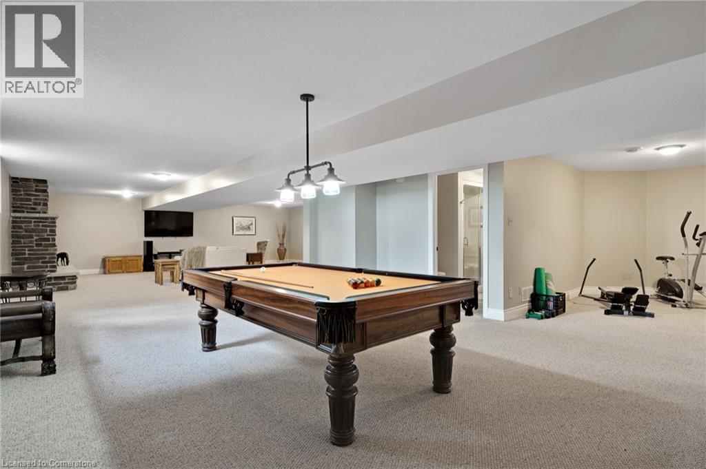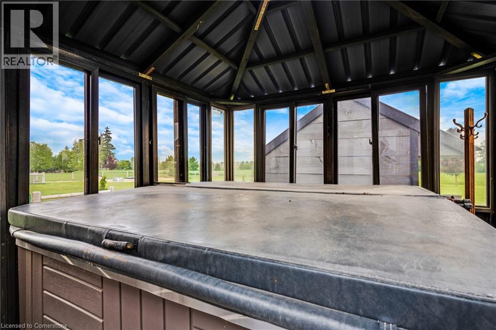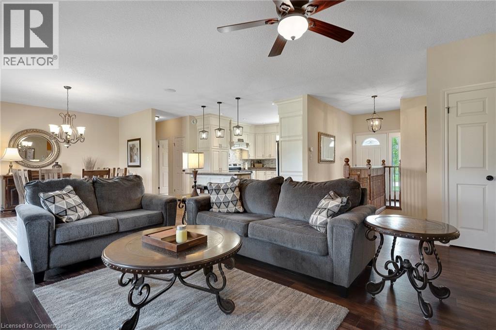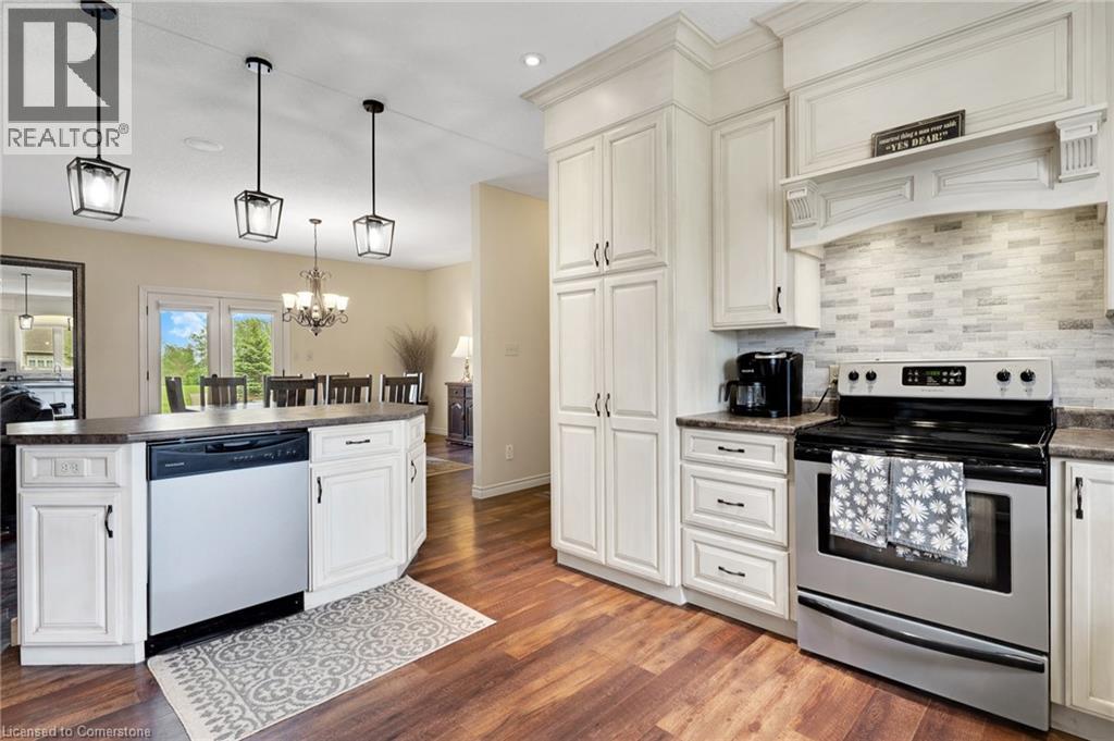Welcome to 7829 Colonial Drive - a beautifully crafted, custom-built executive bungalow offering over 3000 sqft of finished living space nestled on a sprawling half-acre lot with tranquil farmland views right from your backyard. Step inside to a bright, open-concept main floor where natural light pours through large windows and elegant, carpet-free living creates a clean and modern feel. The kitchen is thoughtfully designed with upgraded cabinetry, stainless steel appliances, and a central island complete with a breakfast bar - ideal for everyday living or entertaining. The spacious dining area easily accommodates large family gatherings, while the inviting living room with a cozy fireplace sets the perfect atmosphere for relaxing evenings. The primary suite offers a peaceful retreat, complete with a walk-in closet and private ensuite bathroom. Downstairs, the fully finished lower level provides exceptional versatility - featuring a sprawling rec room, games area, pool table (included), fitness space, a full bathroom, and a fourth bedroom, perfect for guests or extended family. Enjoy your morning coffee and evening night cap on the oversized 16’ x 45’ composite deck, or unwind in the fully enclosed glass gazebo with a hot tub, offering year-round relaxation. The integrated 20 kW generator seamlessly powers the house in case of a power outage. The attached two car garage offers plenty of parking, storage and workspace. This home blends the calm of country life with unbeatable convenience, just a short drive to Kitchener-Waterloo, Stratford, and Listowel. If you're looking for space, privacy, and high-quality living in a serene rural setting, this exceptional home checks every box. (id:51300)