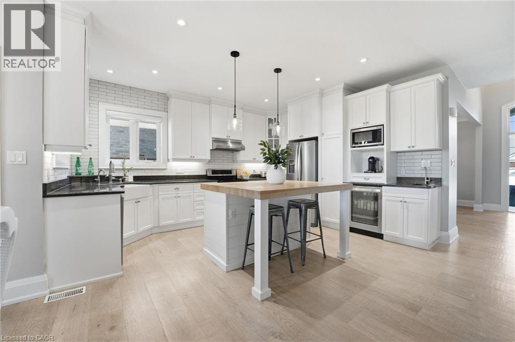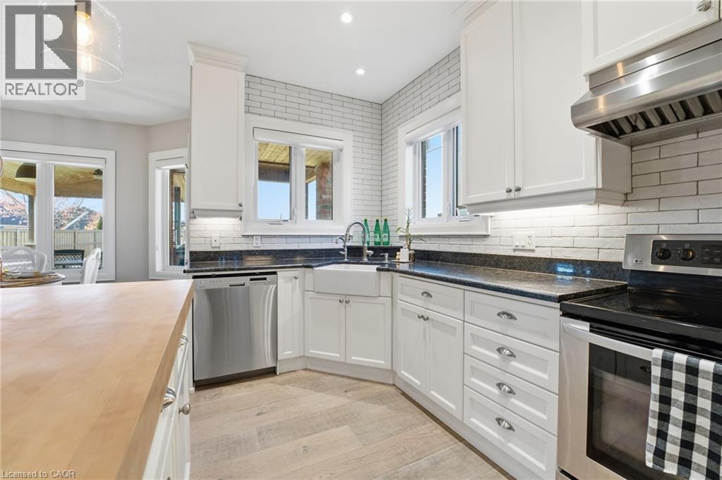 Welcome to 795 Wood Drive! Located in a sought-after neighborhood, this beautifully updated home blends modern touches with everyday functionality. The main level was fully renovated in 2021, featuring new stairs, upgraded flooring, built-in shelving by the cozy fireplace in the living room, updated light fixtures, and sleek new blinds. Enjoy hosting in the formal dining room or cooking in the standout kitchen, complete with a butcher block island and a beverage station. The bright, open living room features expansive windows overlooking the oversized backyard, filling the space with natural light and offering views of your private outdoor retreat. A dedicated main-level den/office is perfect for remote work, while the mudroom includes a live-edge wood bench with storage and convenient access to the backyard. The fully fenced backyard (2024)includes a covered deck, a covered stone patio, a hot tub, and a cooking area. Upstairs, you'll find four spacious bedrooms and the laundry closet. The primary ensuite features a tiled shower, soaking tub, and double vanity. A second full bathroom also offers a double sink and a shower/tub combo, perfect for family living. Curb appeal shines at 795 Wood Drive, with beautifully maintained landscaping, a welcoming front porch, and a double car garage completing the picture. Don’t miss your opportunity to own this exceptional property! (id:51300)