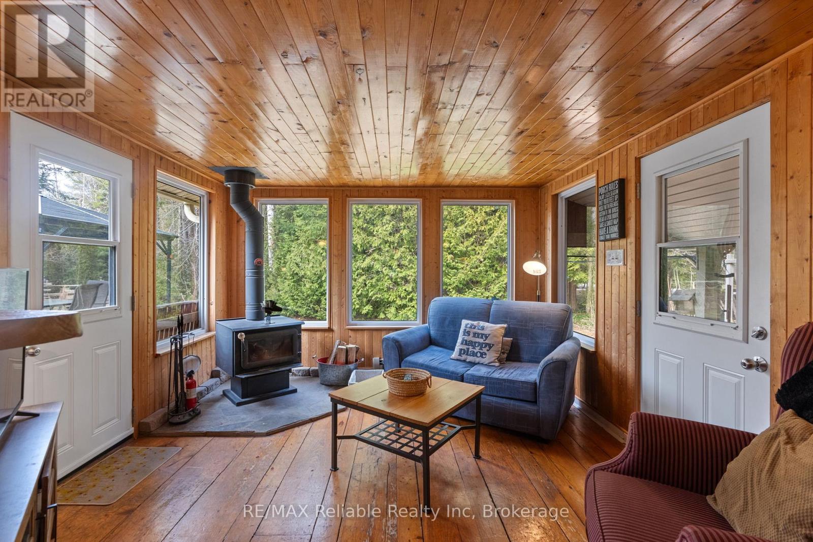 Tucked among the trees in a peaceful, private setting, this charming log cabin is looking for its new owners. It's the kind of place where mornings begin with coffee on the porch and end beside a crackling fire under quiet, star-filled skies. Set on a generous 0.682 acre lot, this log cabin and large detached garage could be used as a year round home, cottage or income property. The layout is both functional and full of original character. There is plenty of sleeping quarters with 2 spacious main floor bedrooms and an additional loft bedroom, that is accessed by a wrought iron spiral staircase. The main living room showcases a cathedral ceiling, skylight and a natural gas fireplace (2024) that is framed by a beautiful stone hearth and wood mantel. The back addition boasts a roomy kitchen and dining nook that offer a place to gather while visiting with family and friends. Off the kitchen, the 4 pc bathroom includes laundry and a bathtub surround that was updated in 2023. There is a cozy wood stove in the sunroom, that has access to the deck. The backyard is complete with a gazebo, a natural gas BBQ hookup and garden shed. A large detached garage offers incredible versatility - ideal for storage, a workshop or the ultimate hangout space with its bar & loft area. There is a circular driveway and ample parking. Additional features include a durable metal roof, drilled well and an Ecoflo septic system. Heat pumps that were recently installed in both the cabin and the detached garage provide additional, efficient heating and cooling. This property has been very well maintained and updated over the years. Move-in ready and including all appliances and most furnishings. Located just minutes south of Goderich and a short drive to Bayfield, you will enjoy easy access to shopping, dining and a short distance (walk or drive) to Lake Huron's stunning shoreline & sunsets. This one-of-a-kind property delivers comfort and convenience in a truly serene setting. Call today! (id:51300)