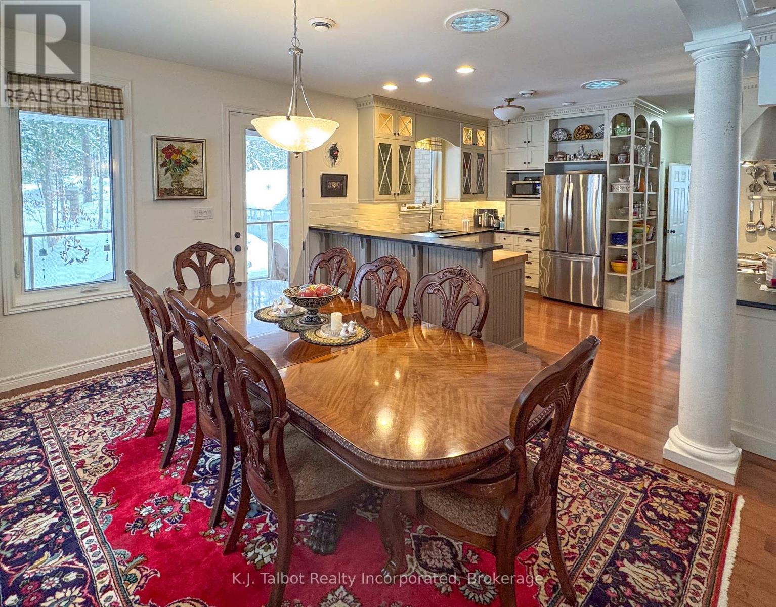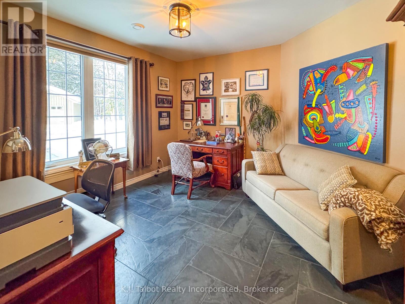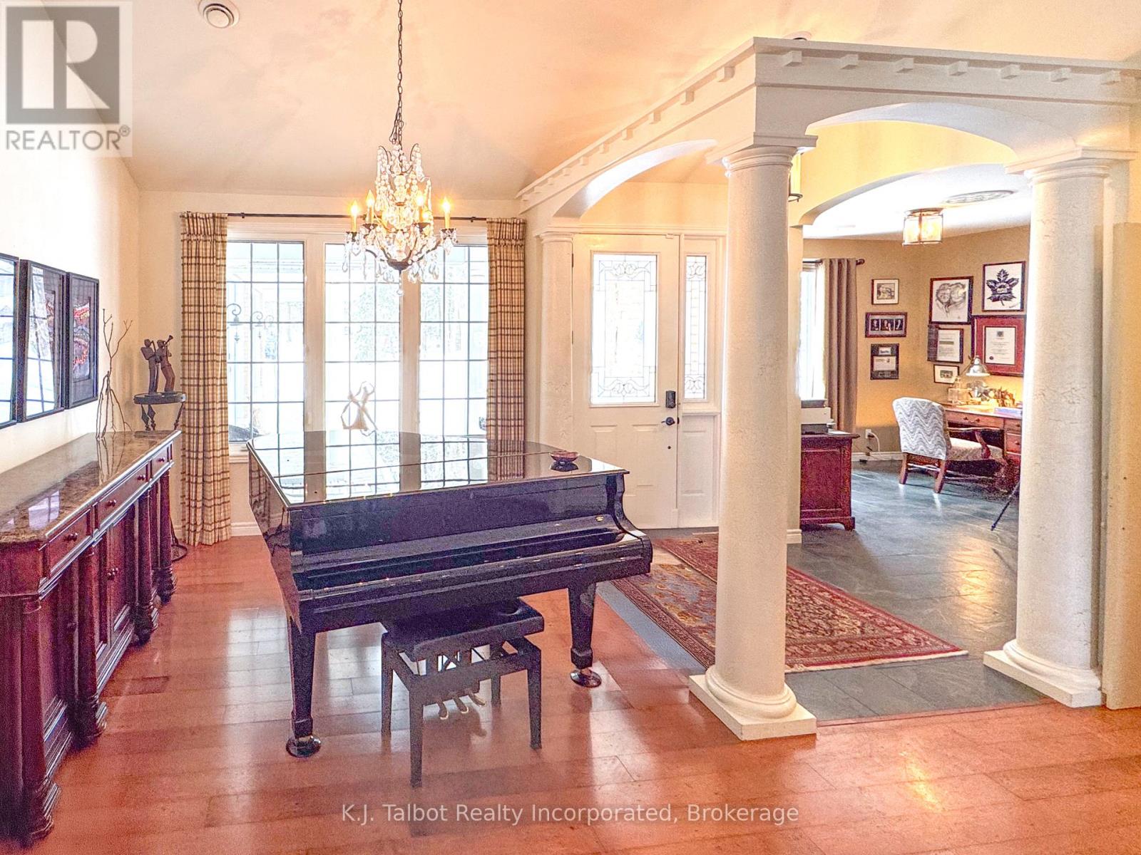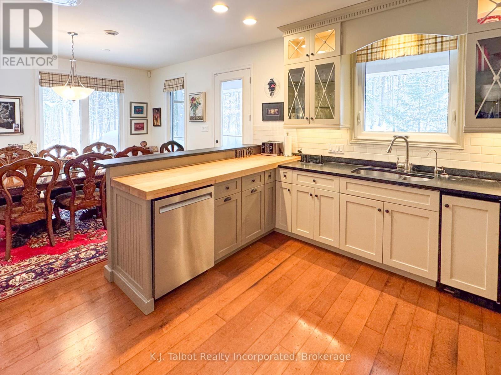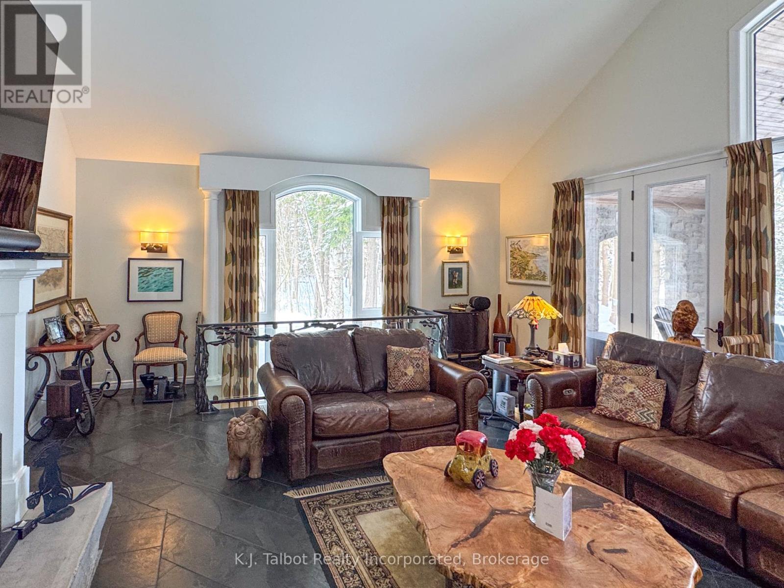 EXECUTIVE RIVERFRONT LIVING. Exceptional custom-built residence privately positioned on 4.98 wooded acres along the Maitland River, offering 230 feet of pristine river frontage just minutes from Goderich and Lake Huron. This remarkable home delivers refined main-floor living with in-floor heat and impeccable craftsmanship throughout. Elegant formal living and dining rooms are complemented by a private den/office and a gourmet kitchen designed for both everyday comfort and entertaining. The showpiece great room features soaring cathedral ceilings, expansive wall-to-wall windows capturing breathtaking river views, and a stunning double-sided cultured-stone fireplace. A main level spacious family room and lower-level rec room provide additional flexibility for family living or hosting guests. The primary suite offers a spa-inspired 5-piece ensuite complete with jacuzzi tub and steam shower - a private retreat within your own home. Outdoors, enjoy the covered rear patio framed by stone pillars overlooking the river - an extraordinary setting for year-round enjoyment. Side screened in room area offers a additional outdoor area to relax and enjoy the peaceful setting. A detached two-car garage with upper studio and an additional single-car garage provide exceptional space for vehicles, hobbies, or creative use. A propane generator backup system ensures peace of mind. A rare offering combining privacy, natural beauty, and executive-level craftsmanship - a truly one-of-a-kind Maitland River estate. (id:51300)